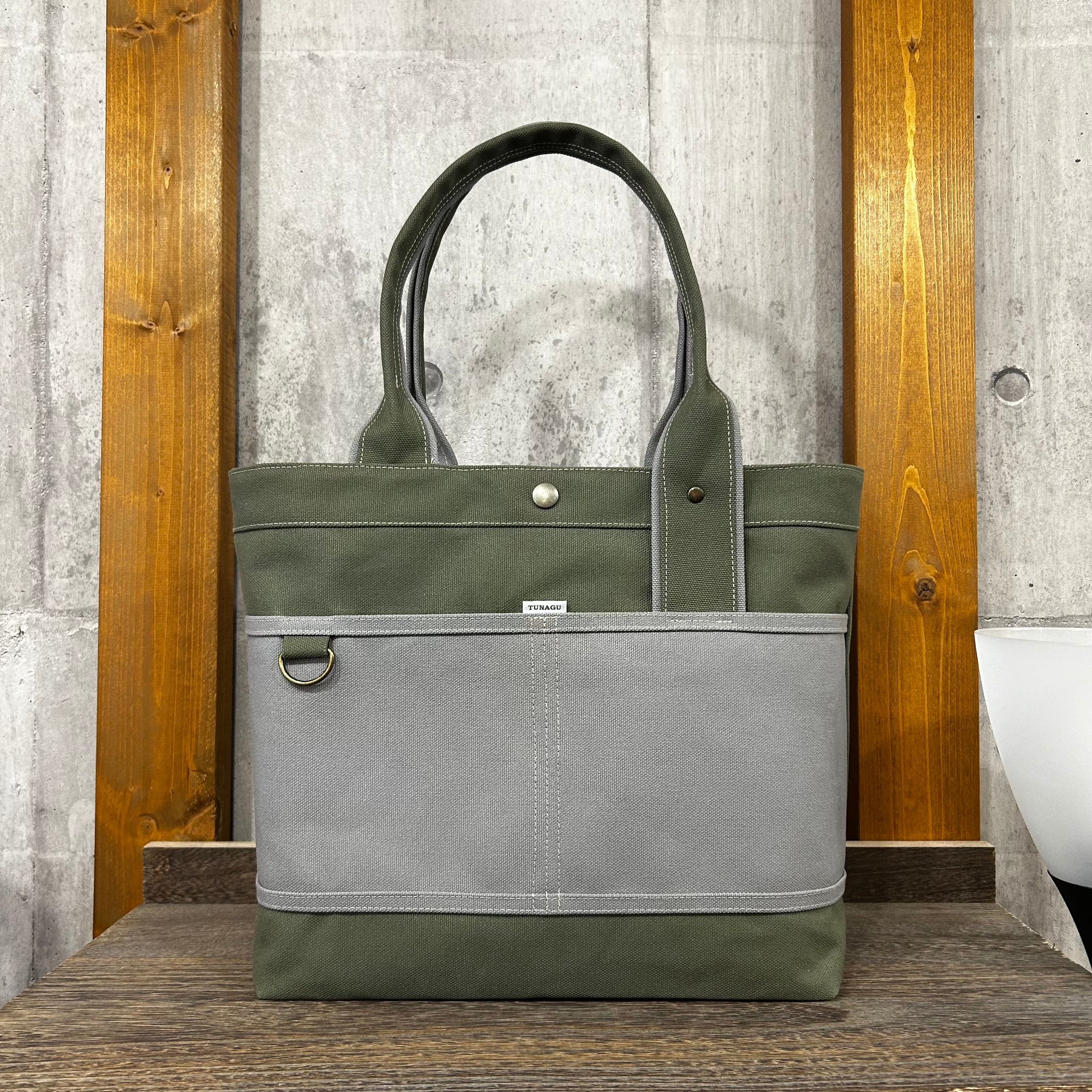 Bi Color Tote "L" / 内ポケット×5付 【ジャングル×グレー】