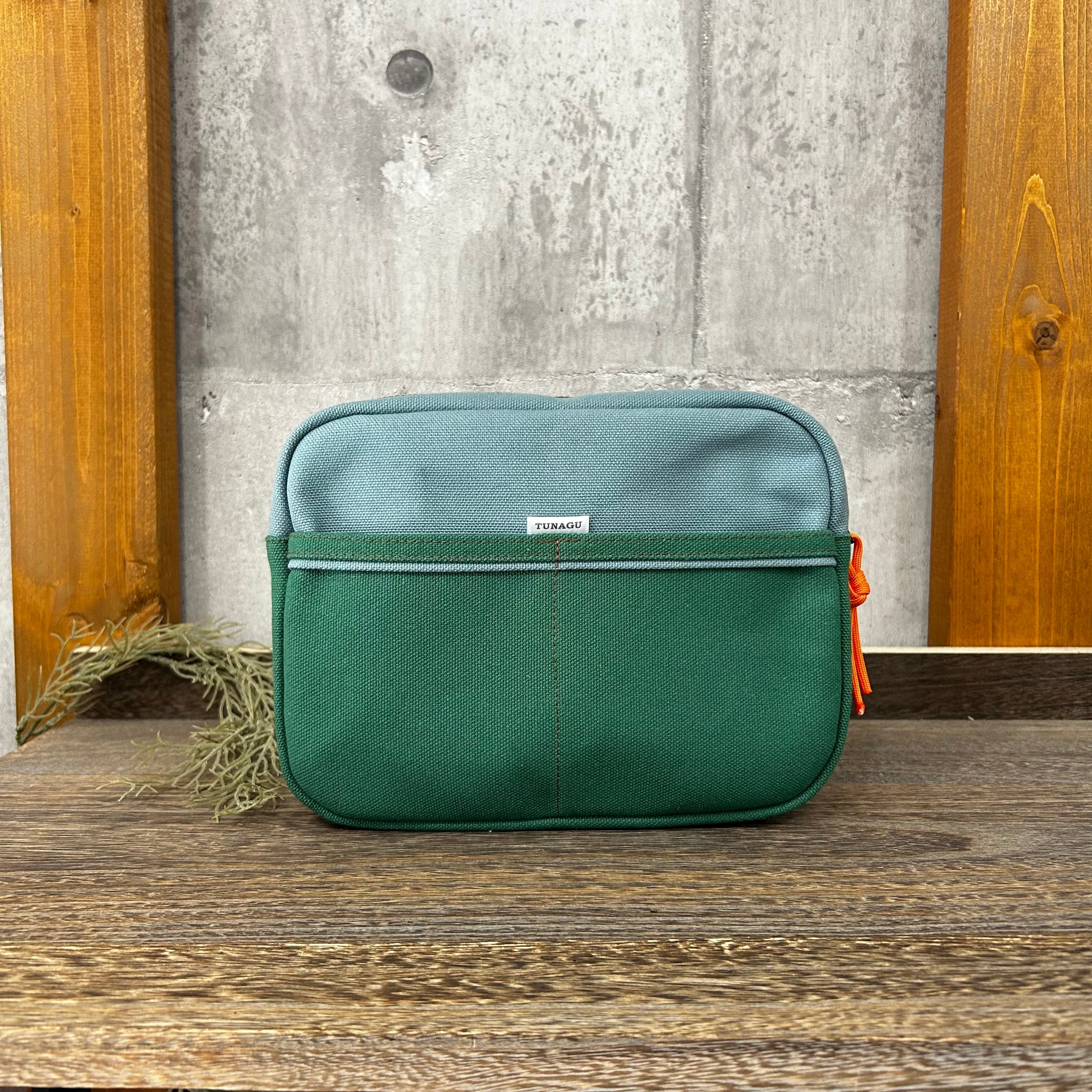【選べる紐付】.+*square shoulder Bag 〈 アイスグレー×ミドルグリーン 〉
