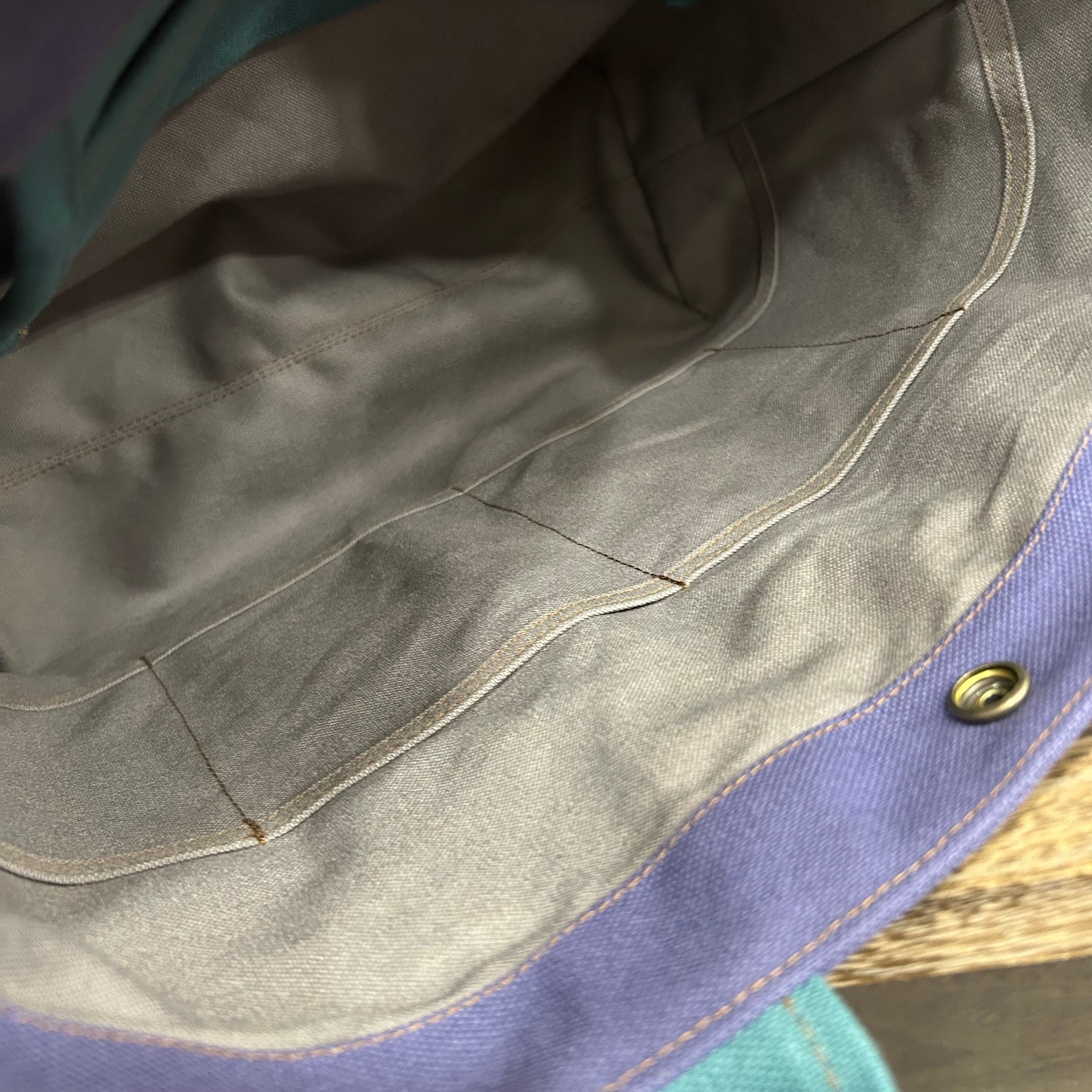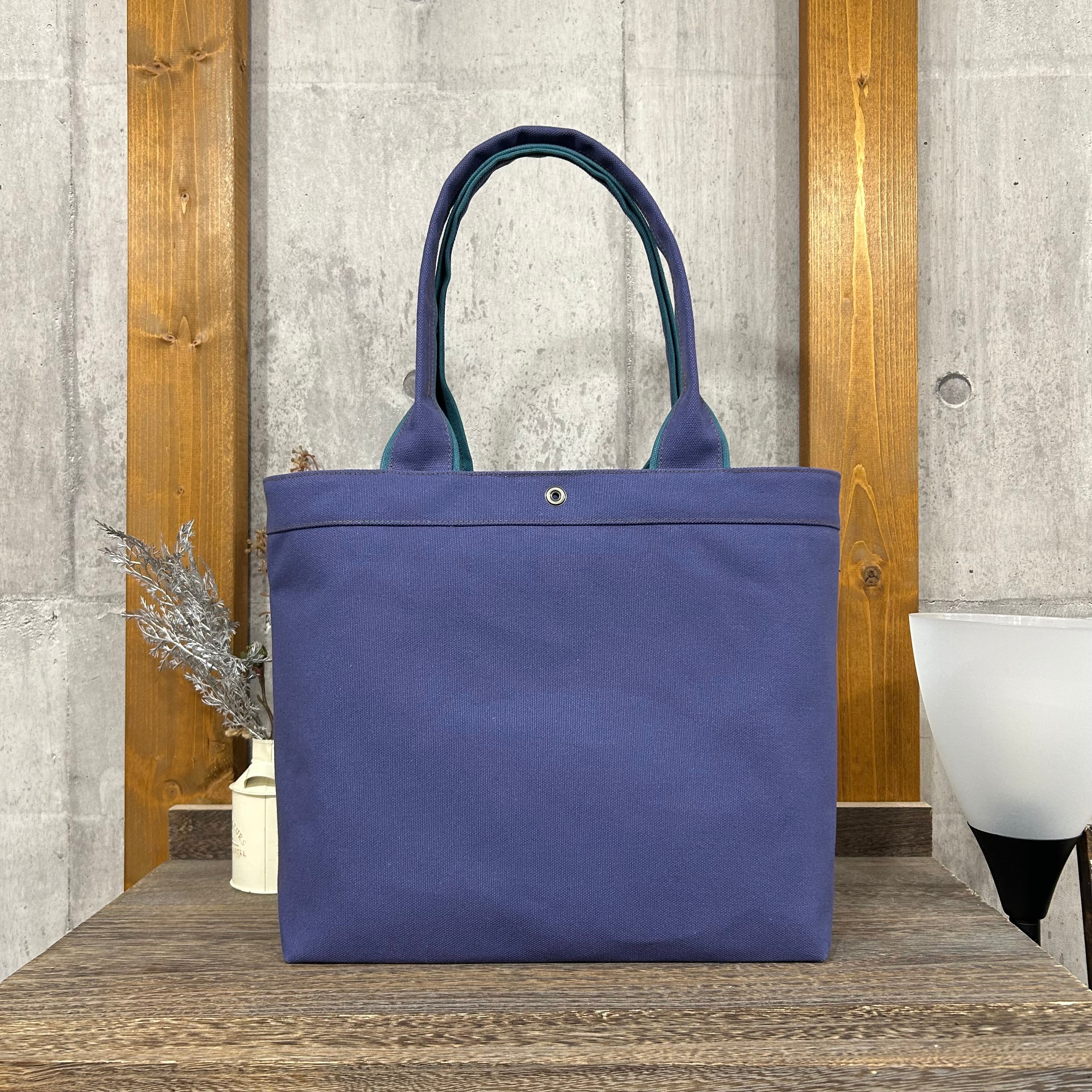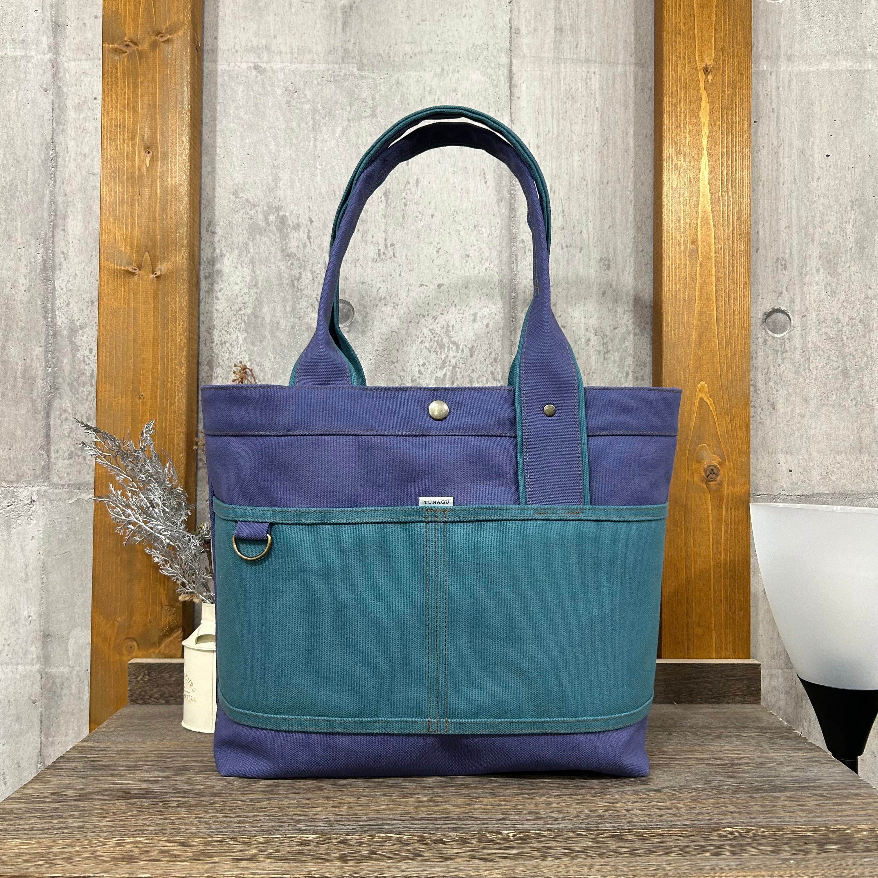 Bi Color Tote "L" / 内ポケット×5付 【グレイパープル×シアンブルー】