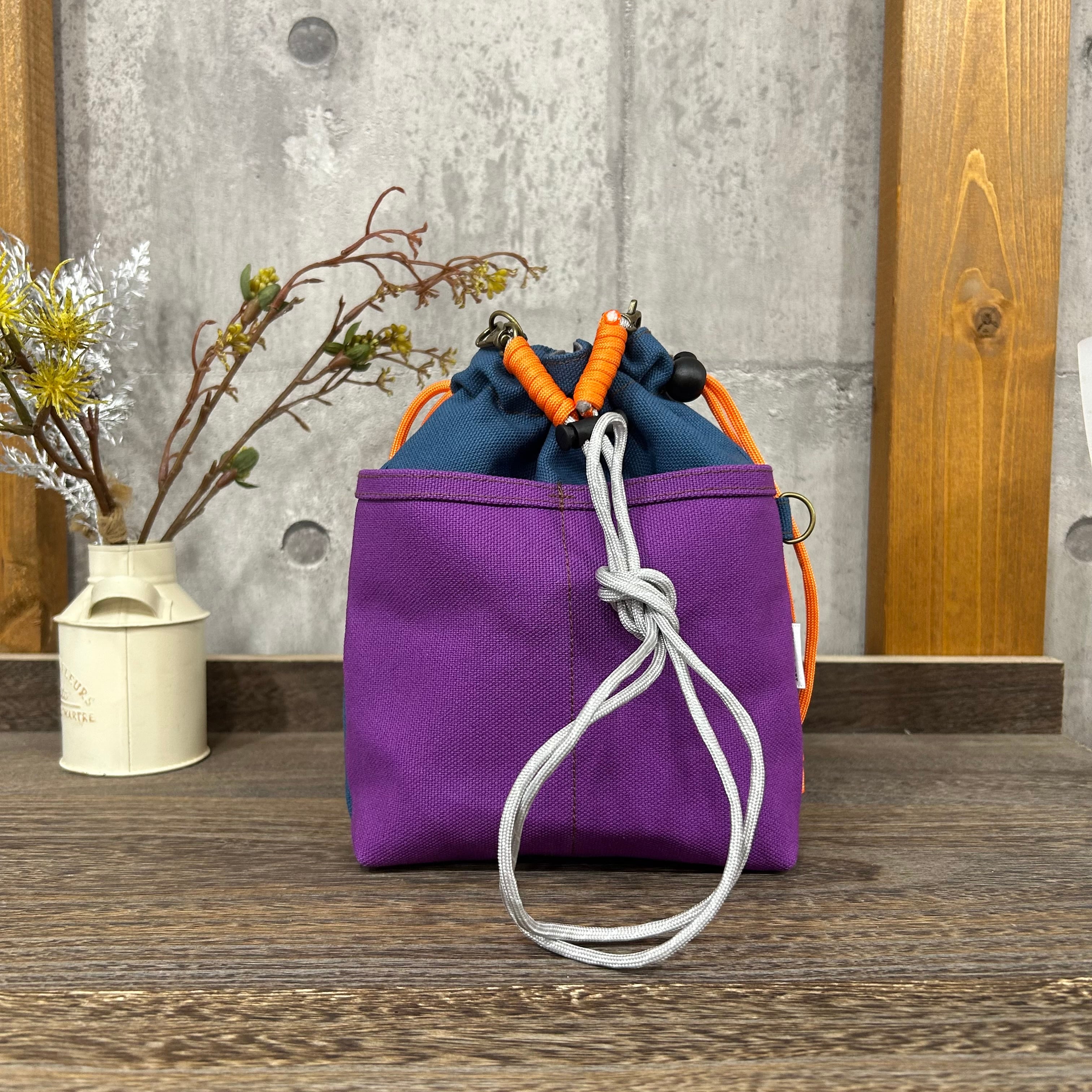 -* 2WAY巾着ショルダー *- 専用紐・横Dカン付き【レインブルー×スミレ】