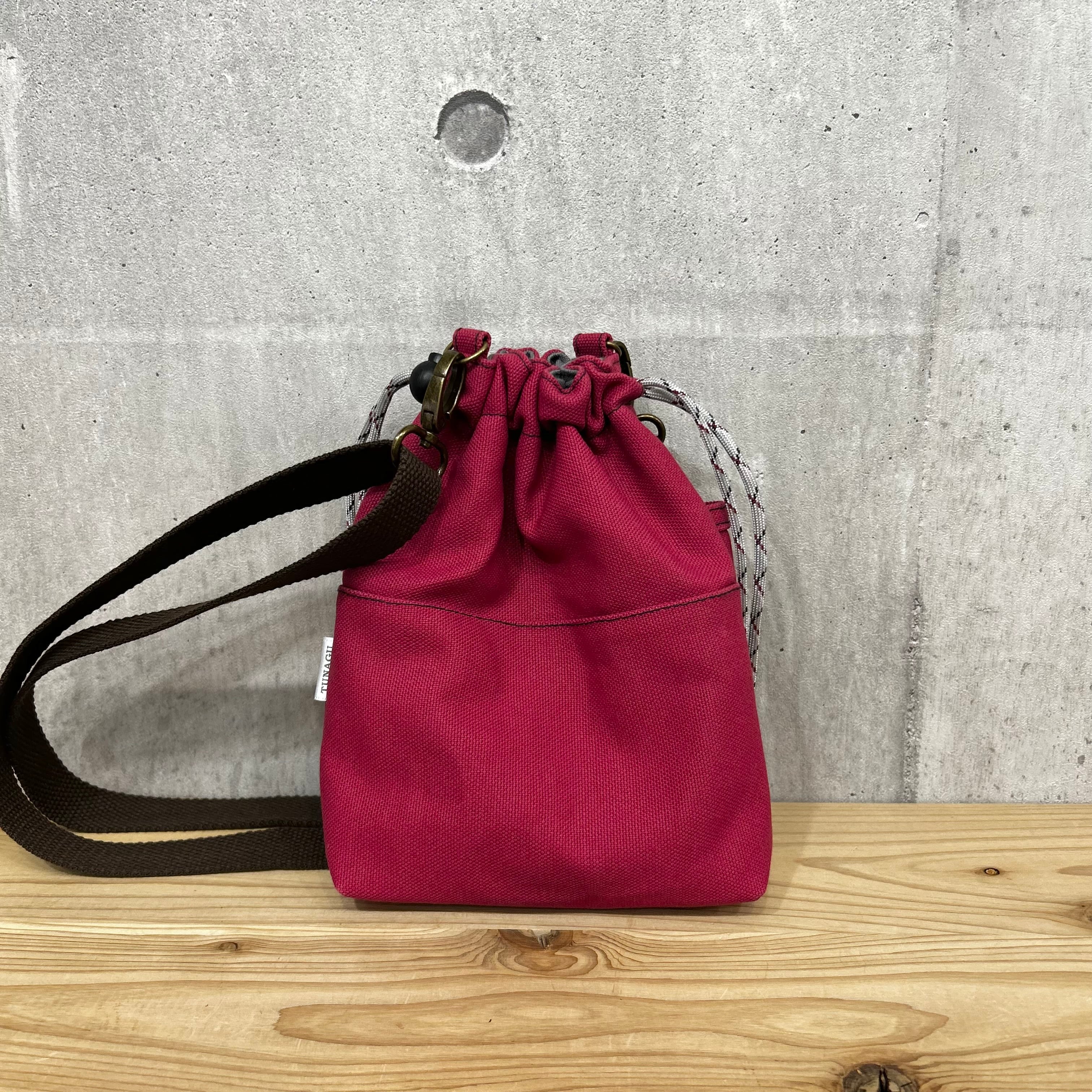 -* 2WAY巾着ショルダー *- 横Dカン付き【ホットピンク】