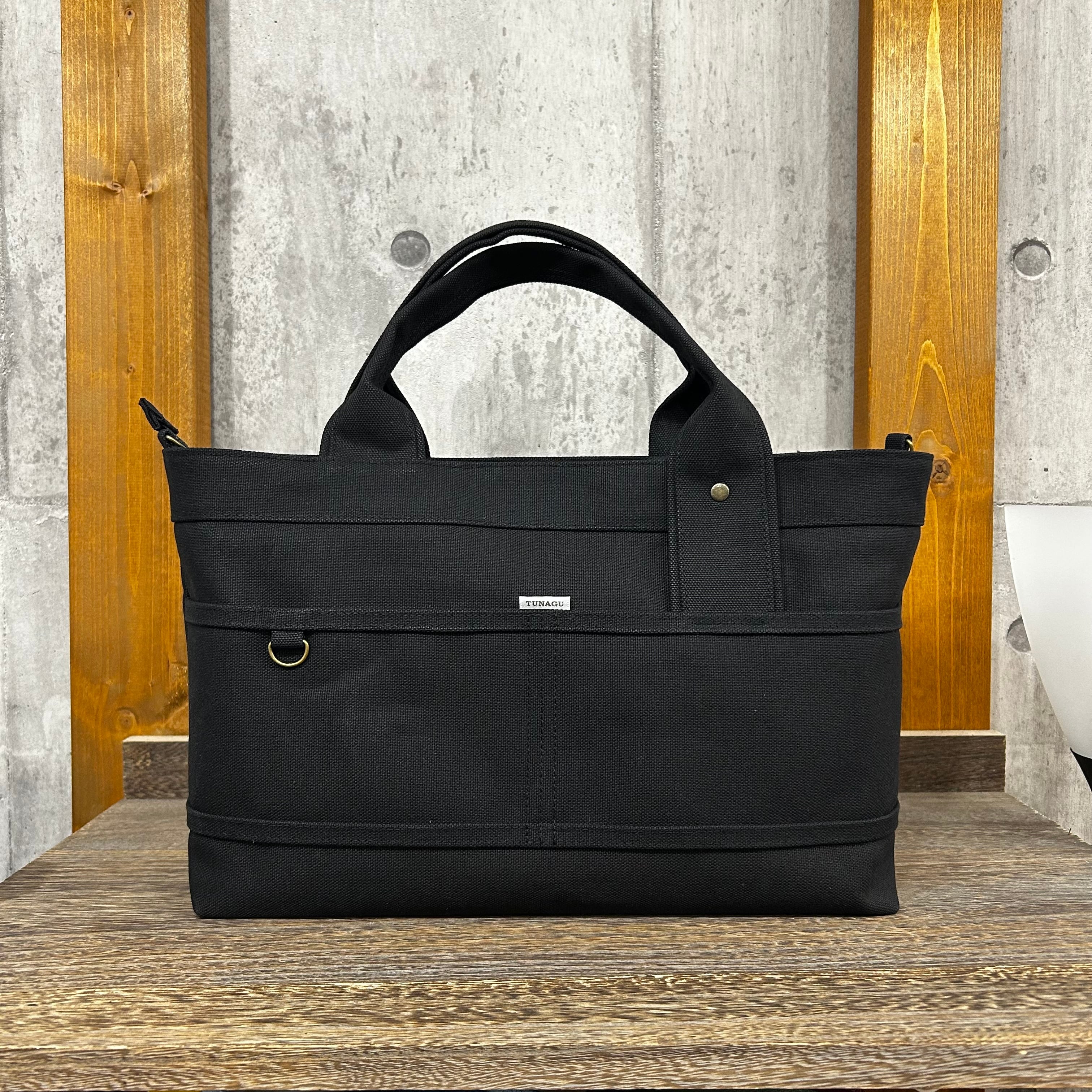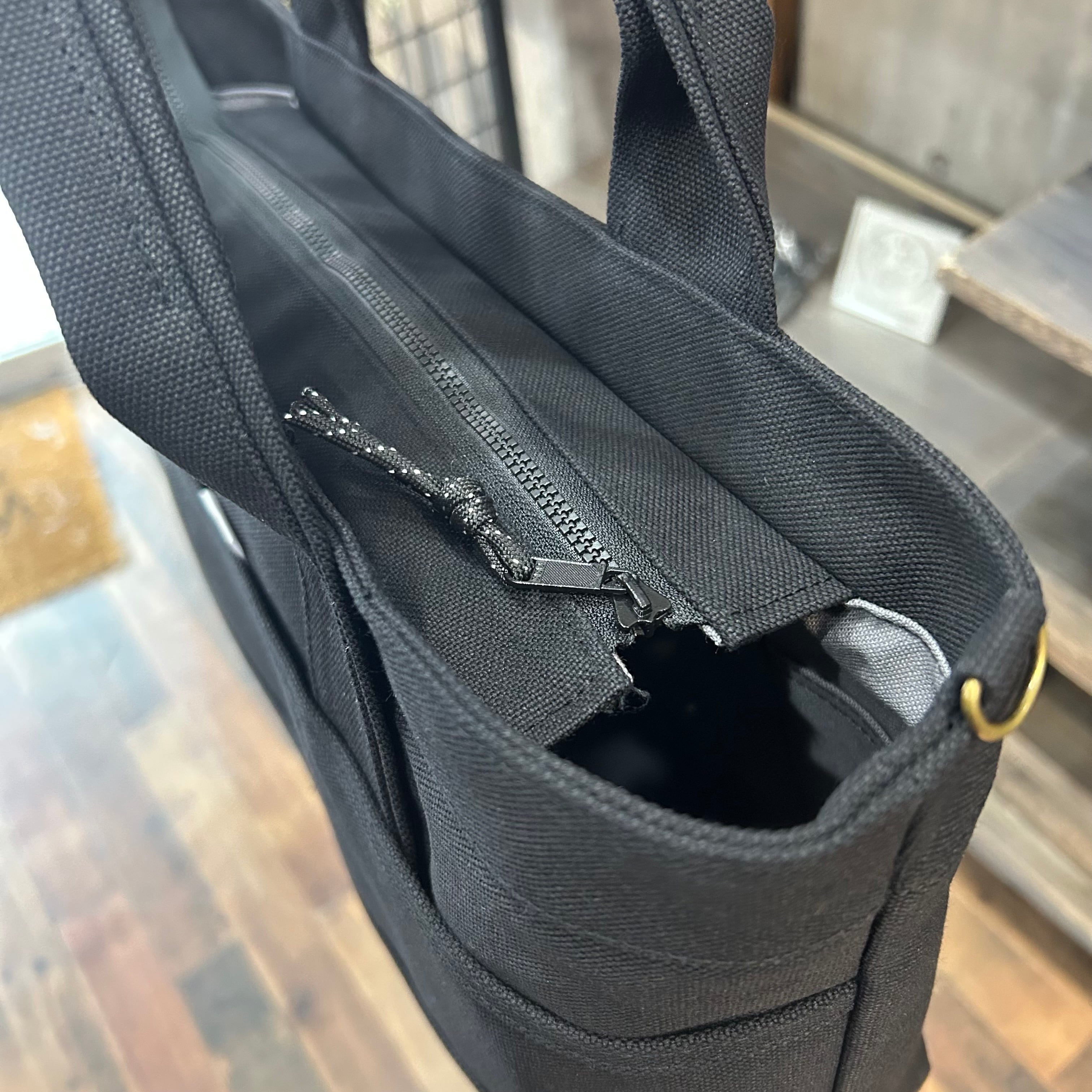 【ファスナー付】Bi Color Tote "M-L" / 内ポケット×4付 【ブラック単色】