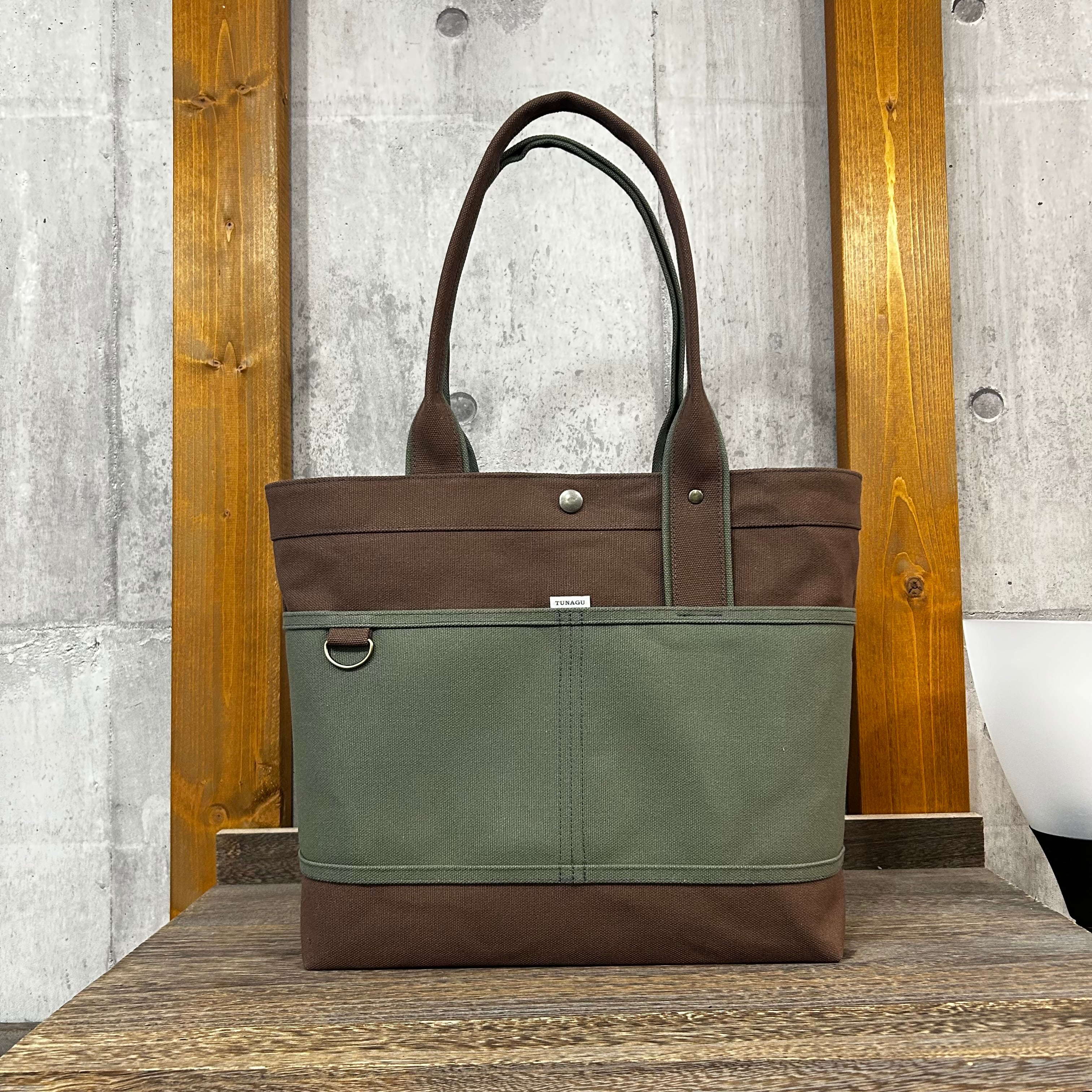 Bi Color Tote "L" / 内ポケット×5付 【焦茶×ジャングル】
