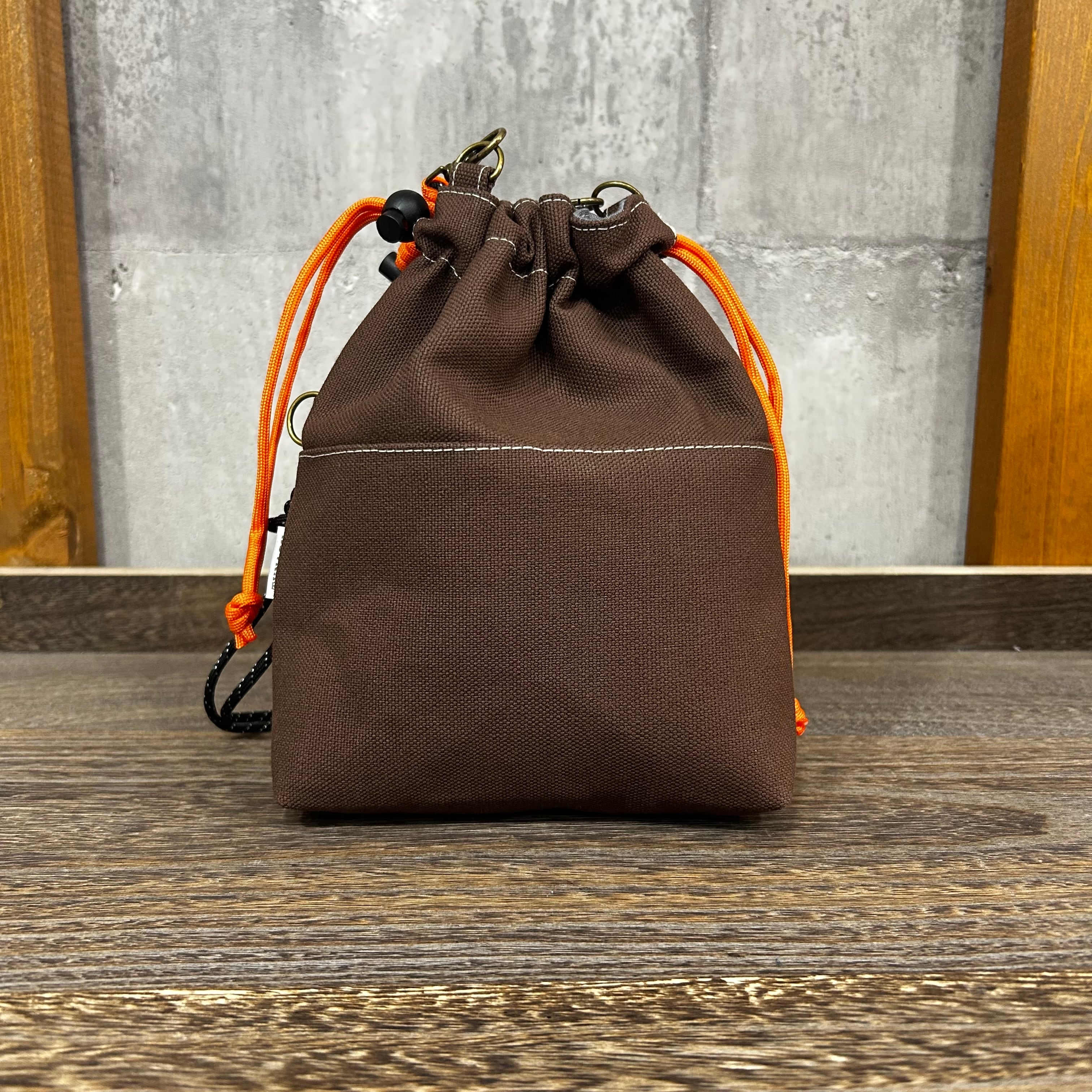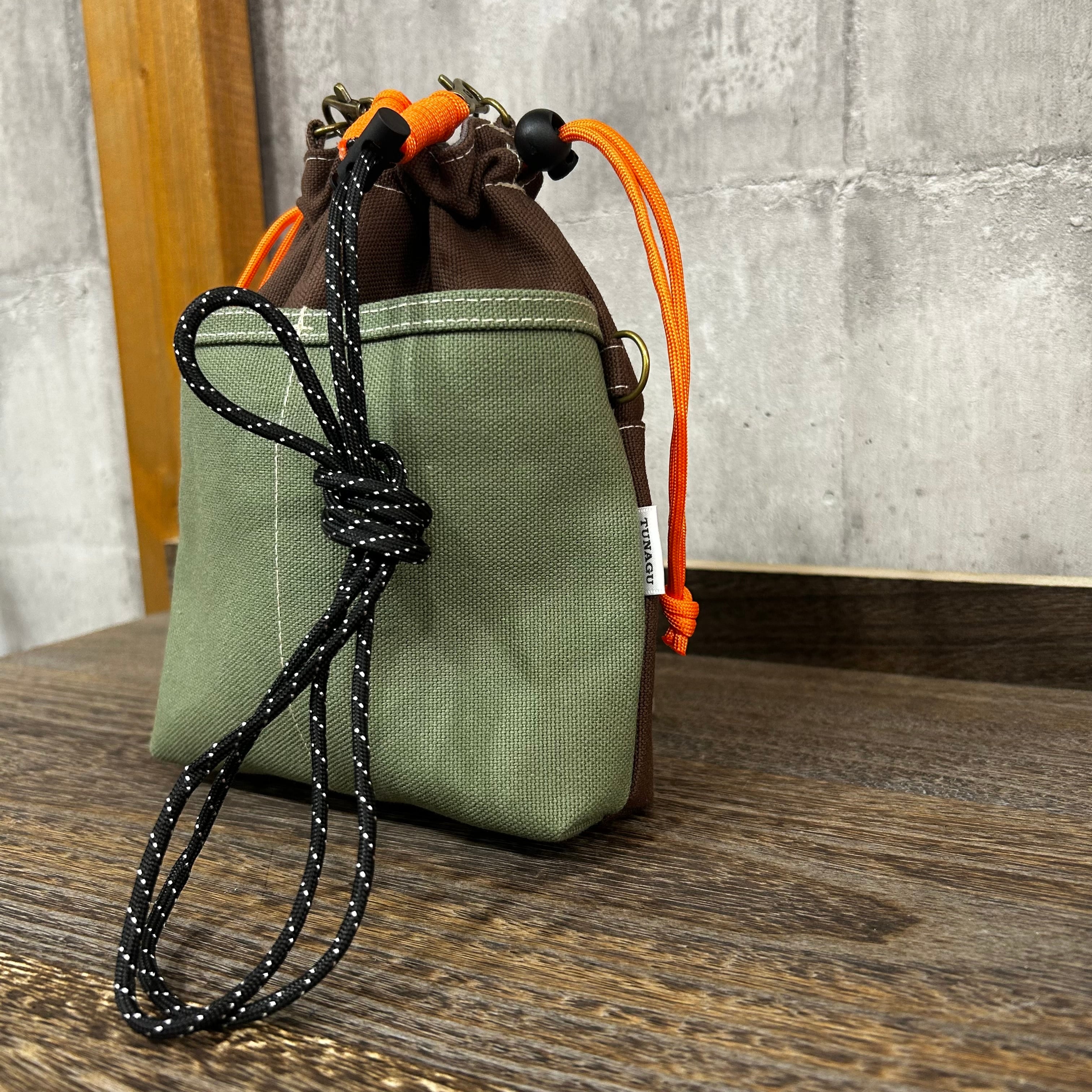 -* 2WAY巾着ショルダー *- 専用紐・横Dカン付き【焦茶×ダスティグリーン】
