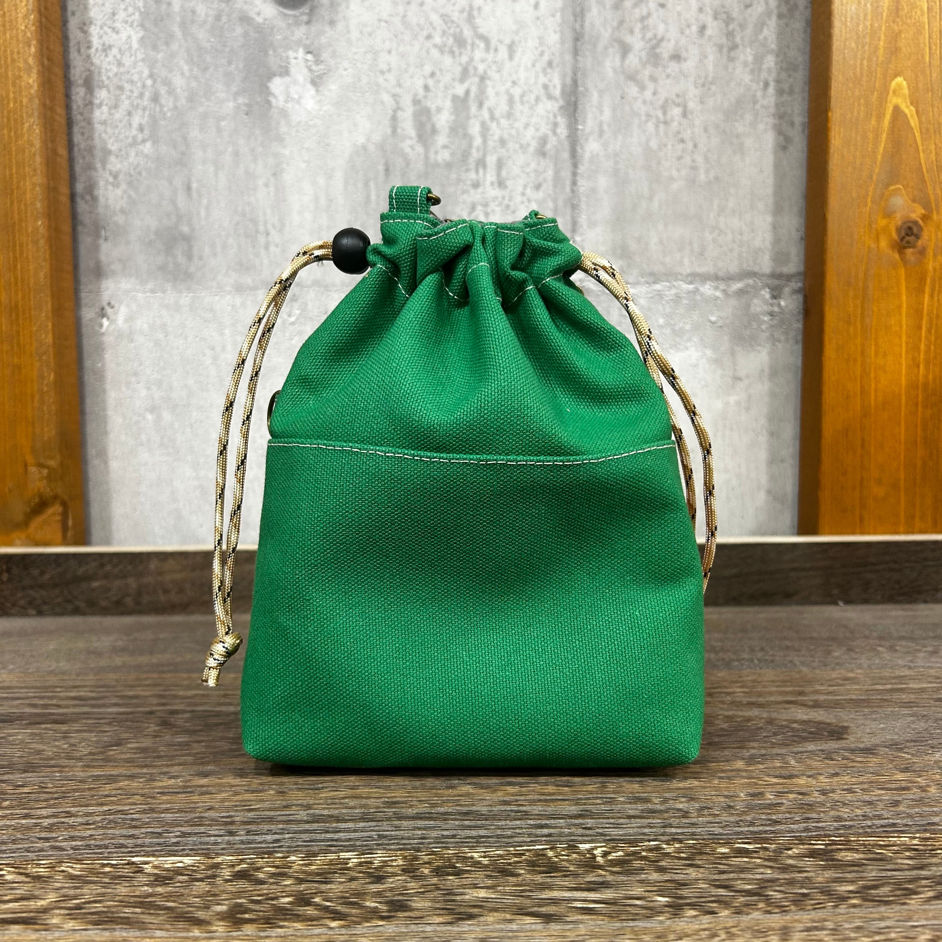 -* 2WAY巾着ショルダー *- 専用紐・横Dカン付き【グリーン×コーラル】