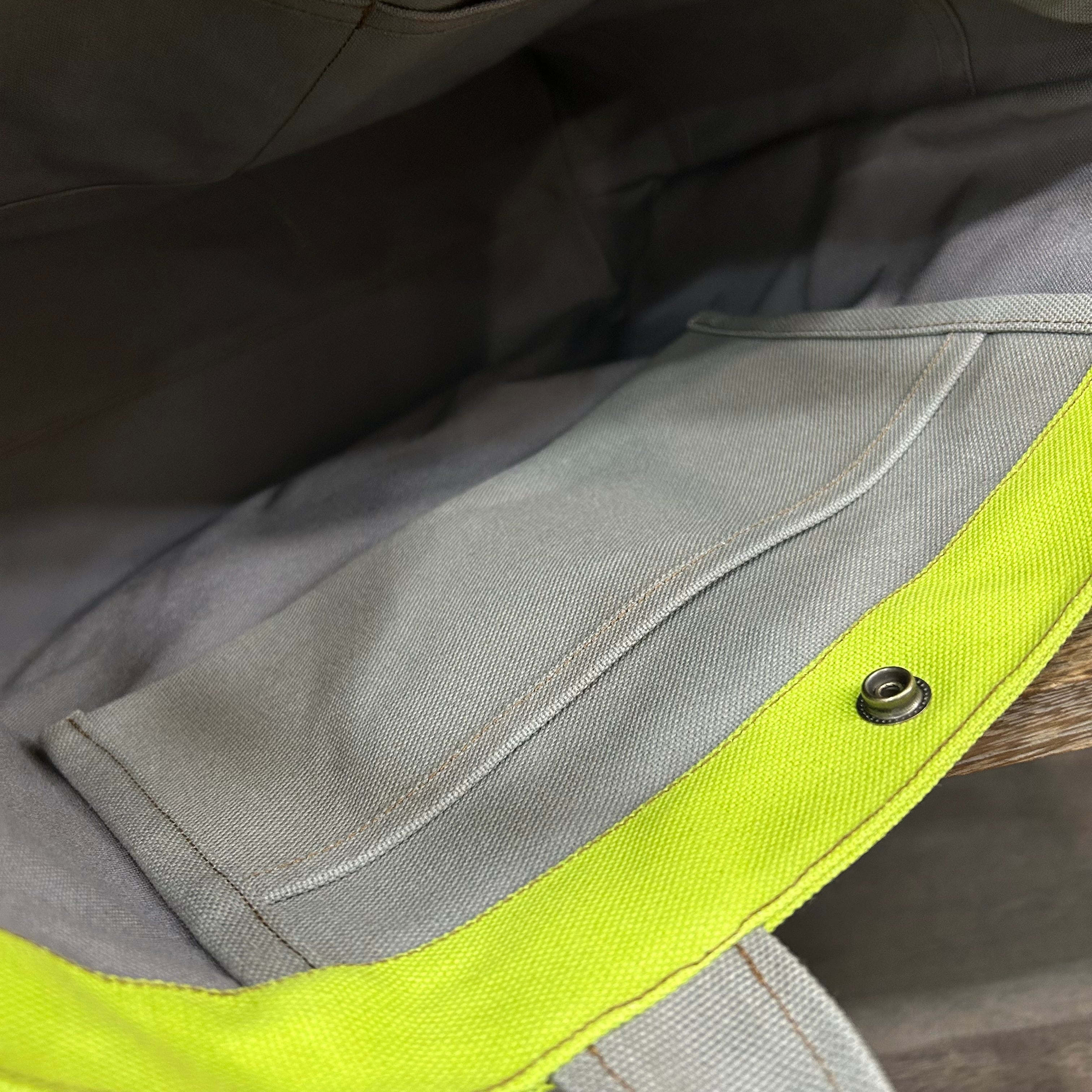 Bi Color Tote "L" / 内ポケット×5付 【ライム×グレー】