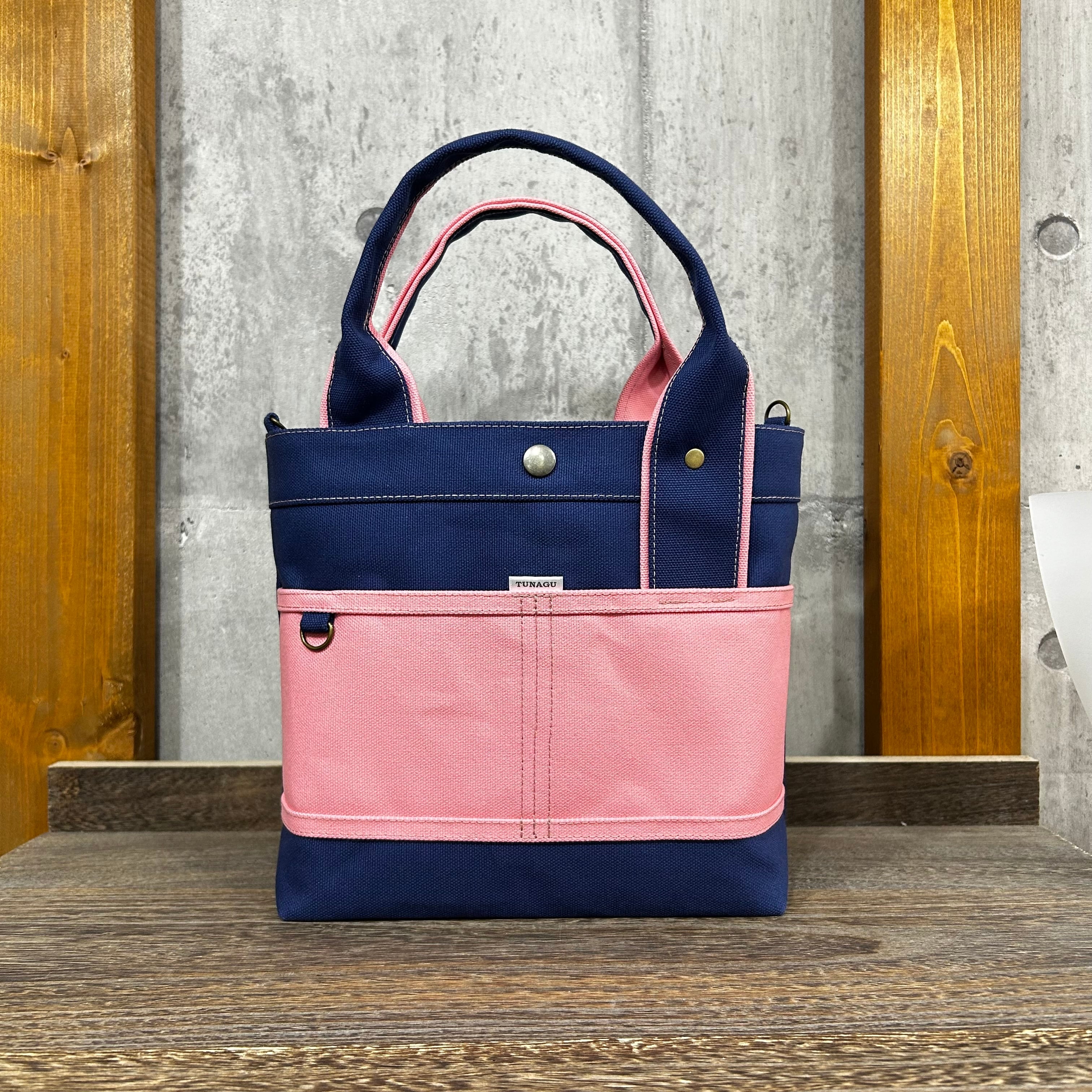 当店人気No.1.▽Bi Color Tote "M"【紺×ピンク】