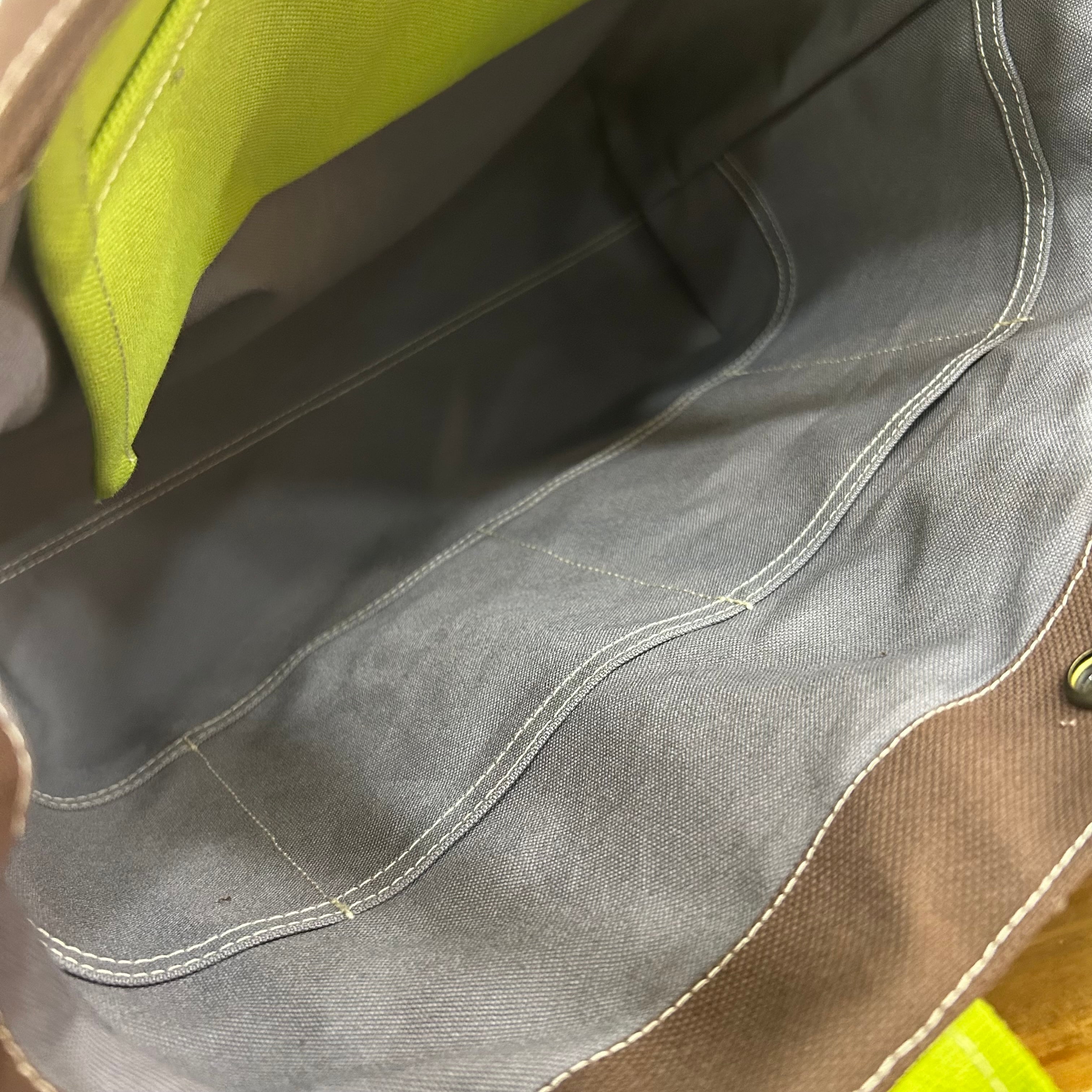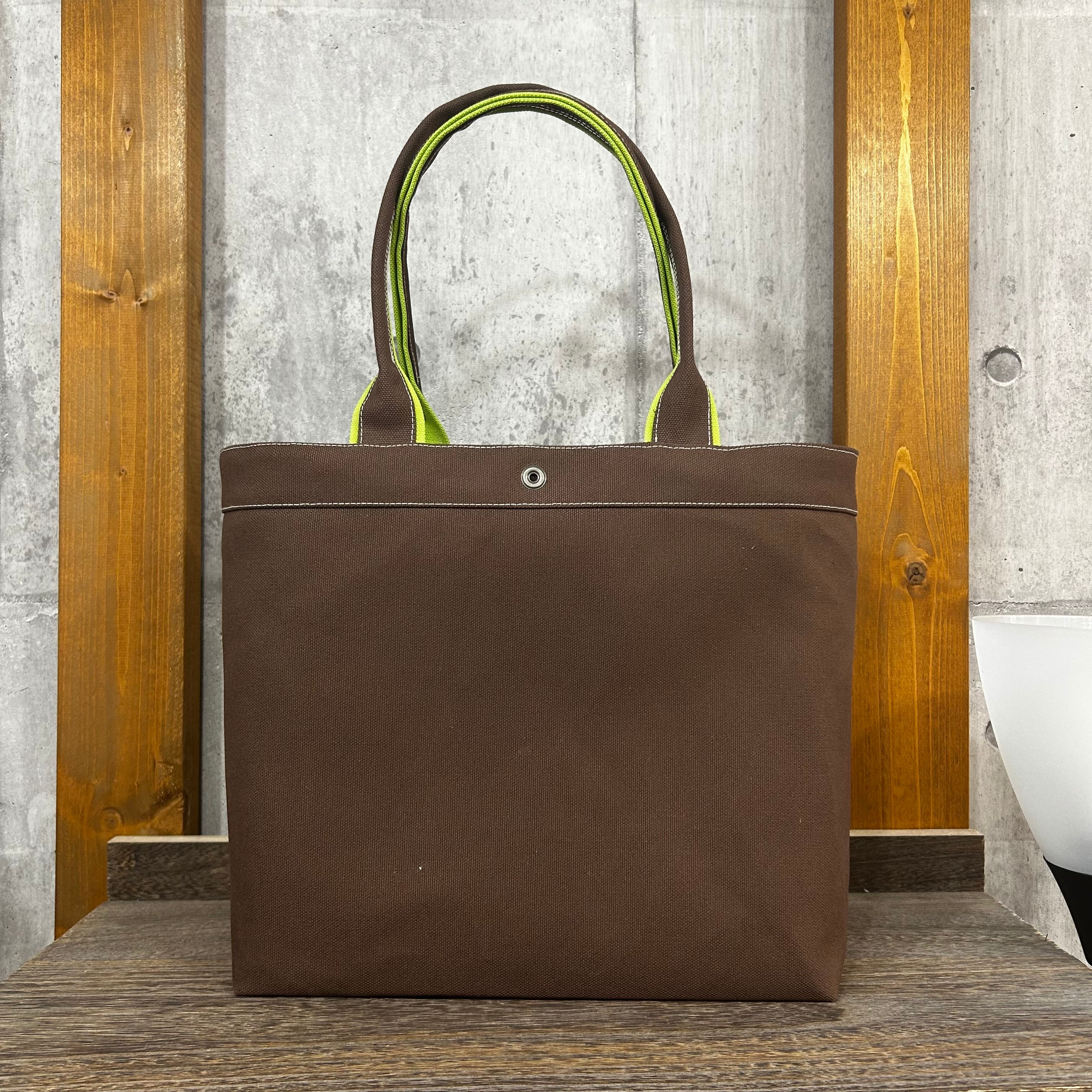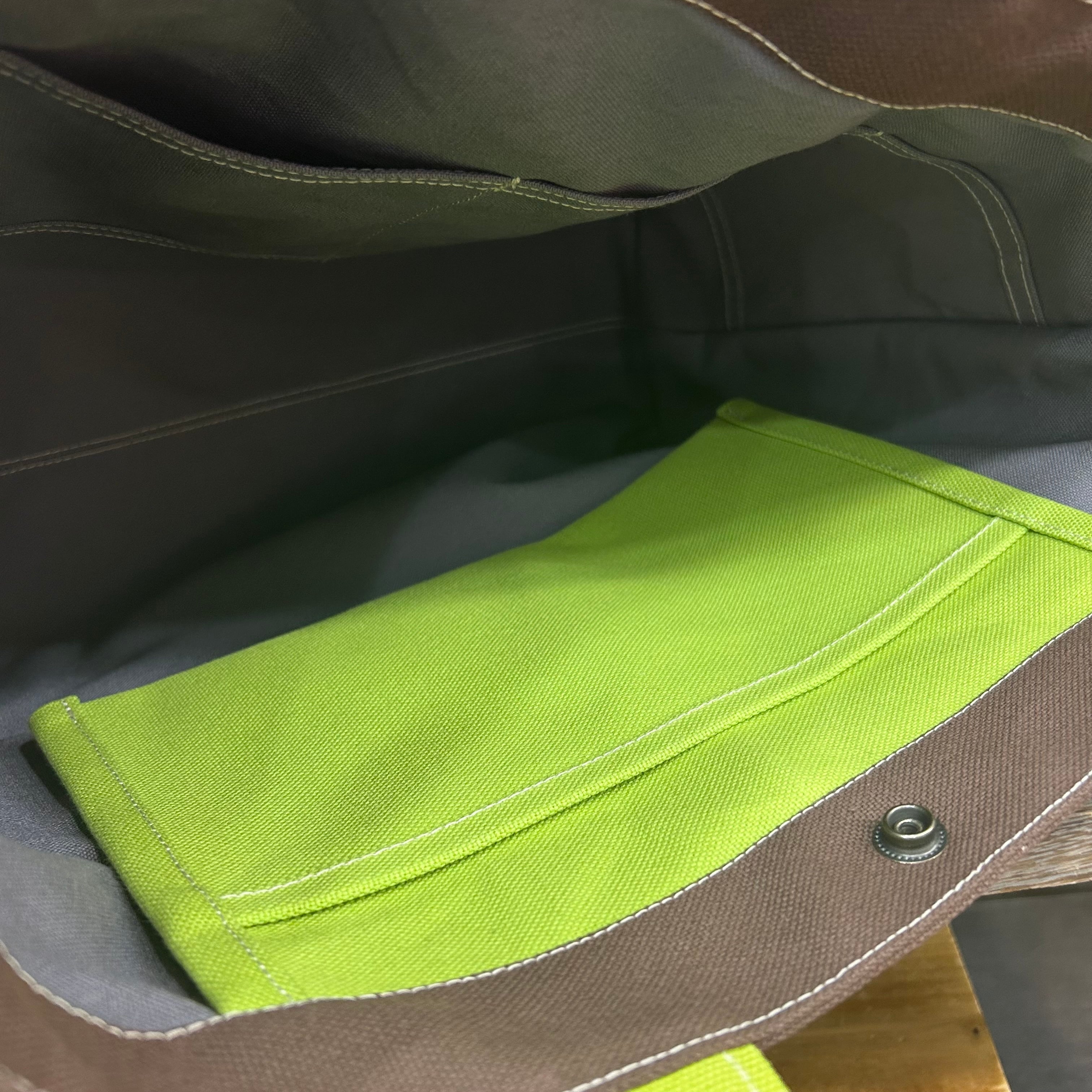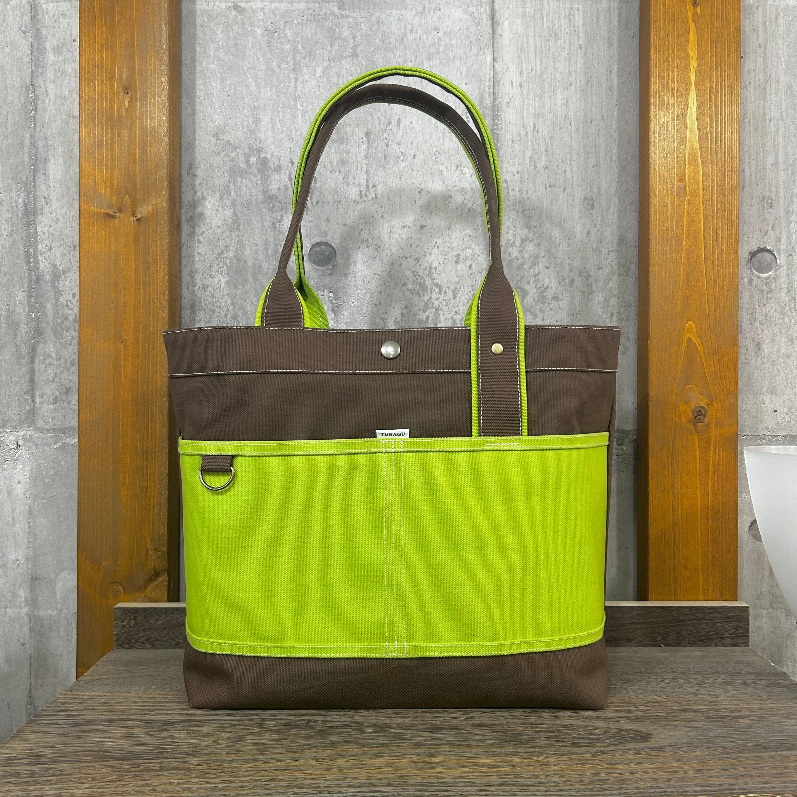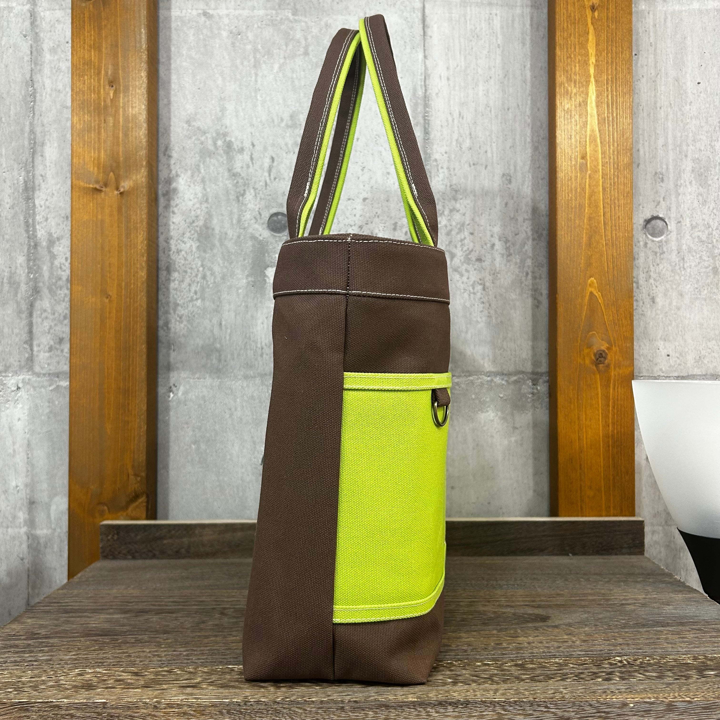 Bi Color Tote "L" / 内ポケット×5付 【焦茶×ライム】