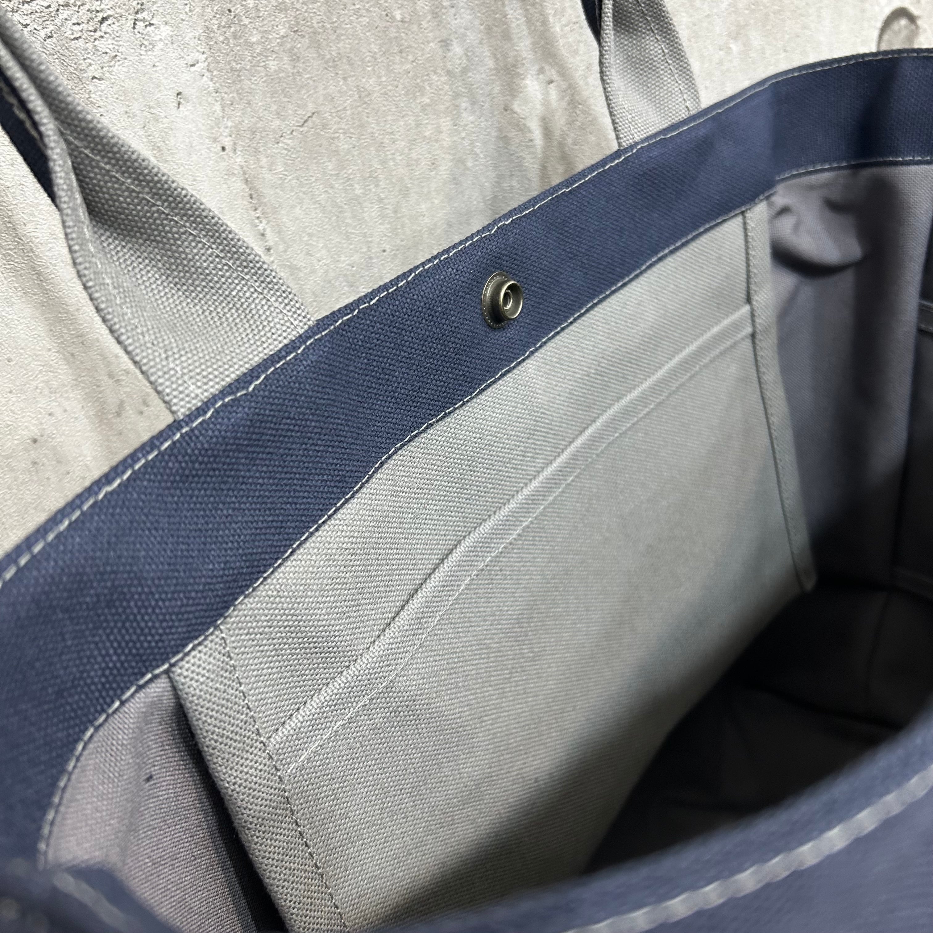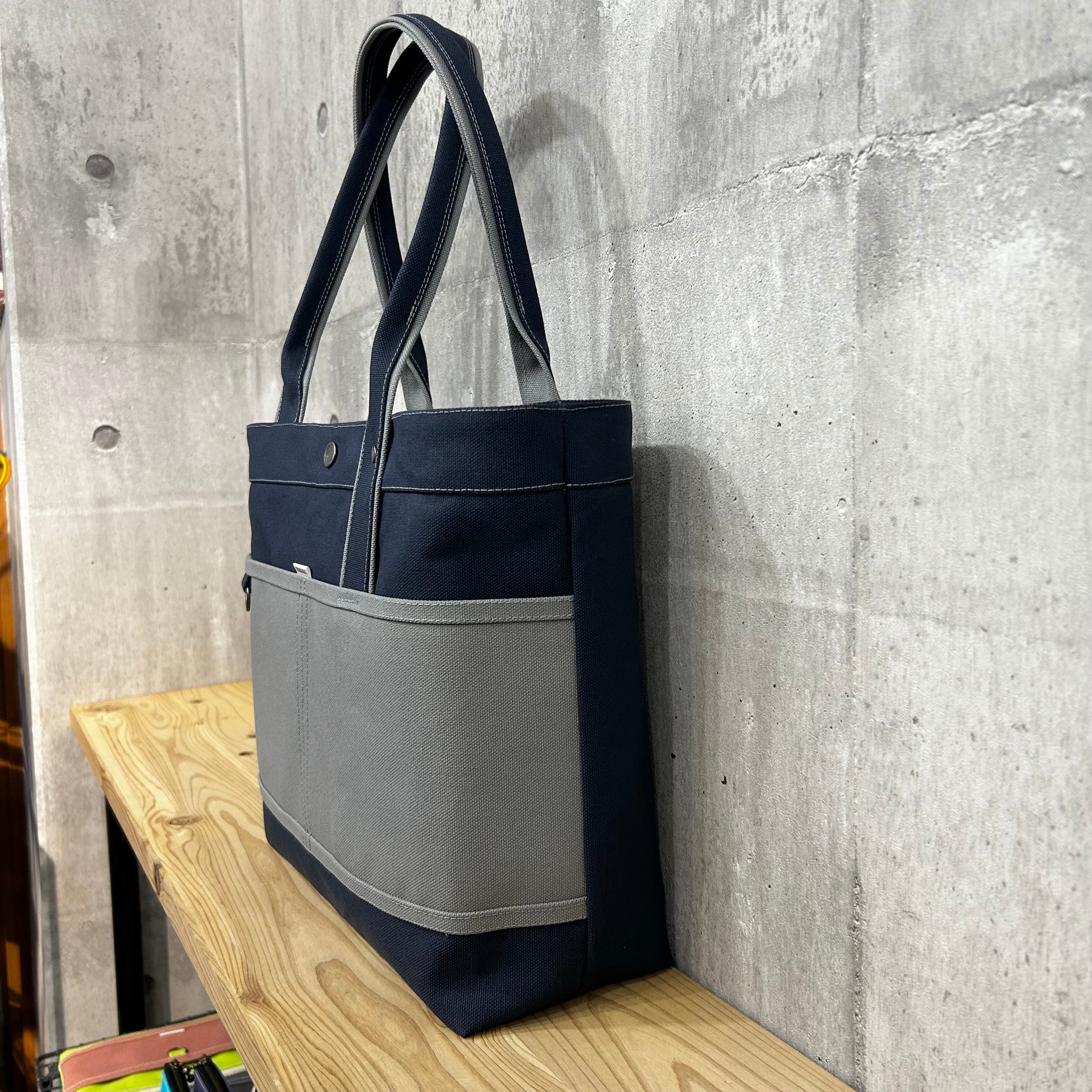 Bi Color Tote "L" / 内ポケット×5付 【ディープオーシャン×グレー】