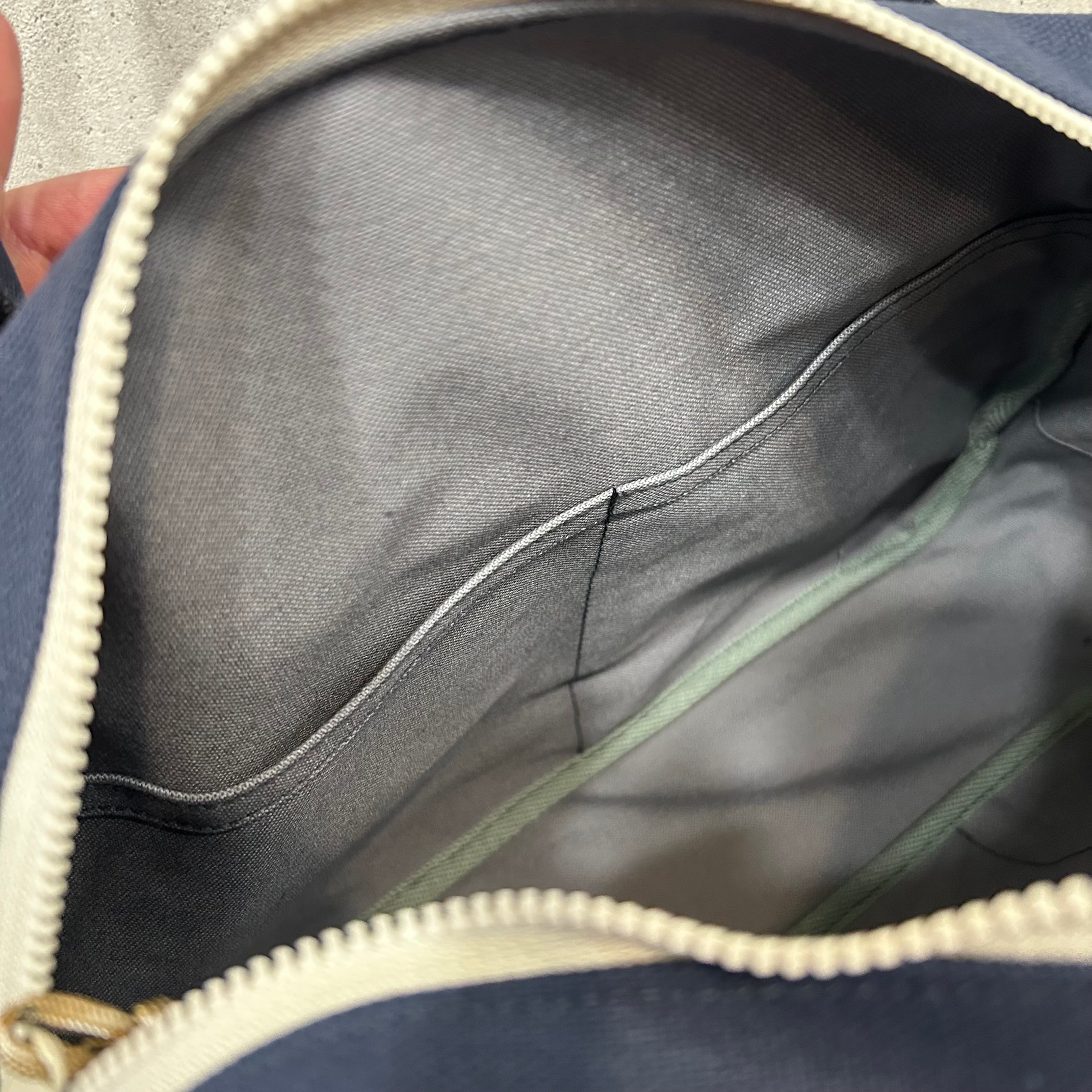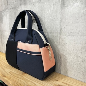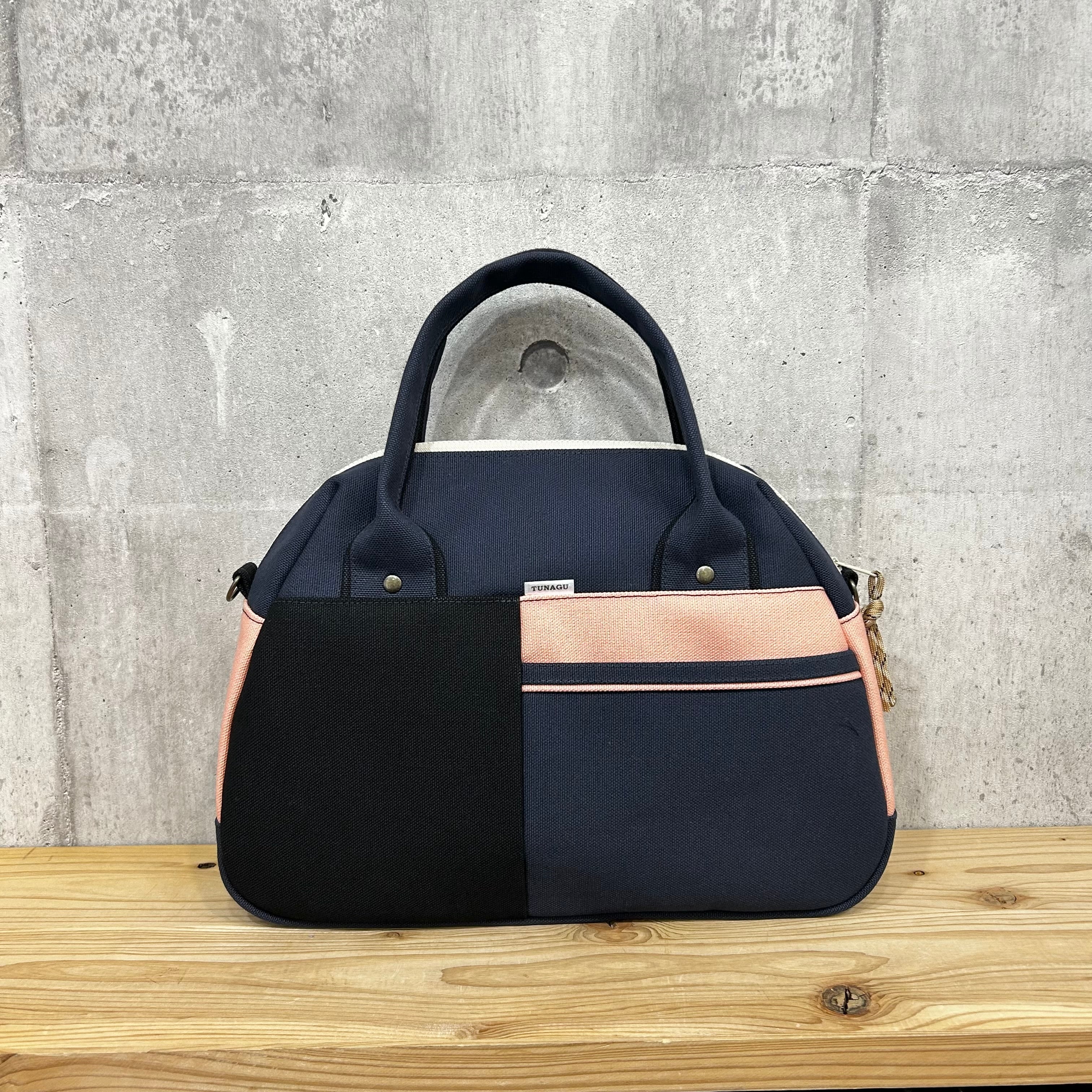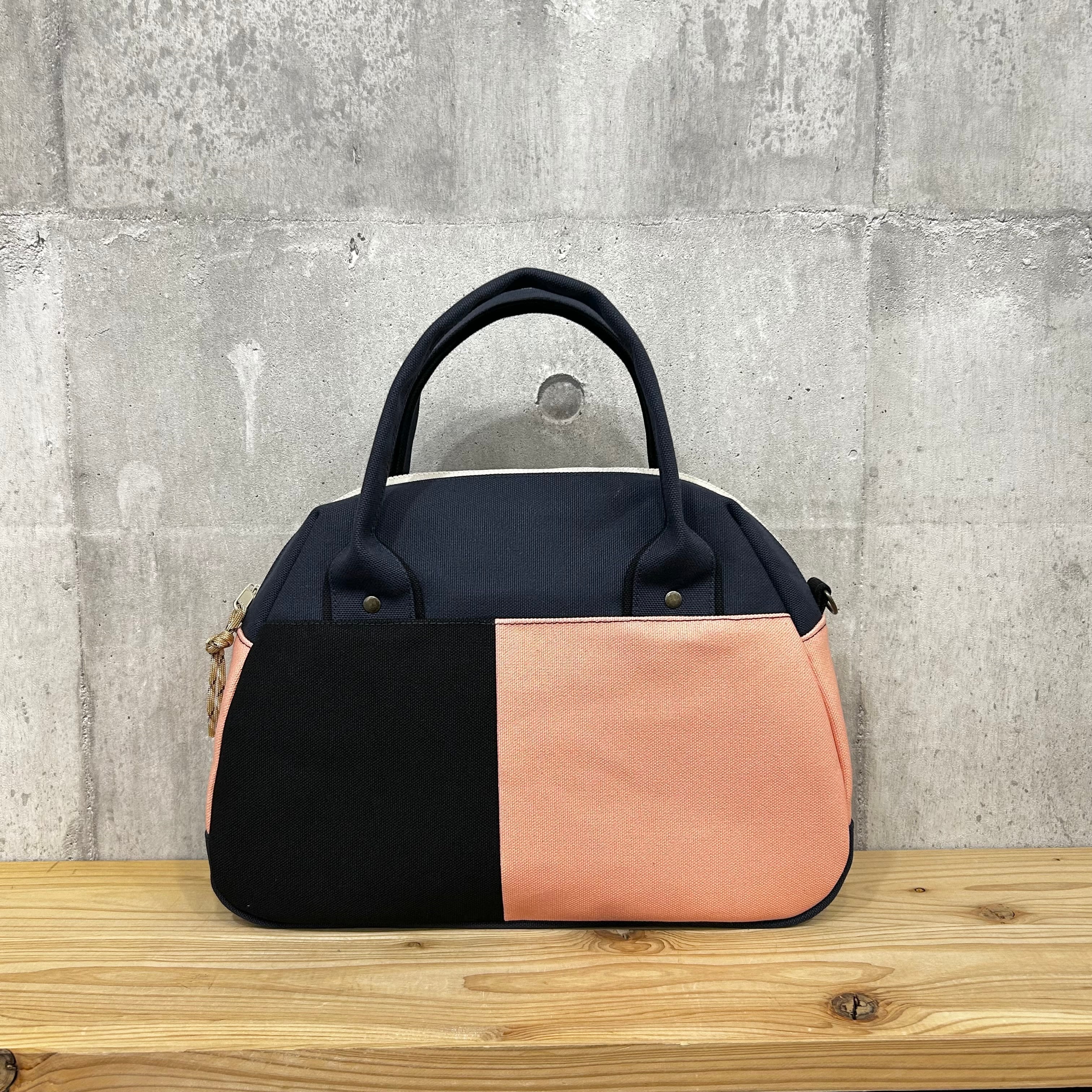 -* Boston Bag *- ブロック切替デザイン【ディープオーシャン×黒×シェルピンク】