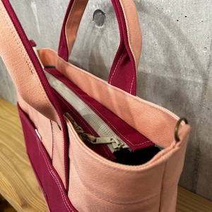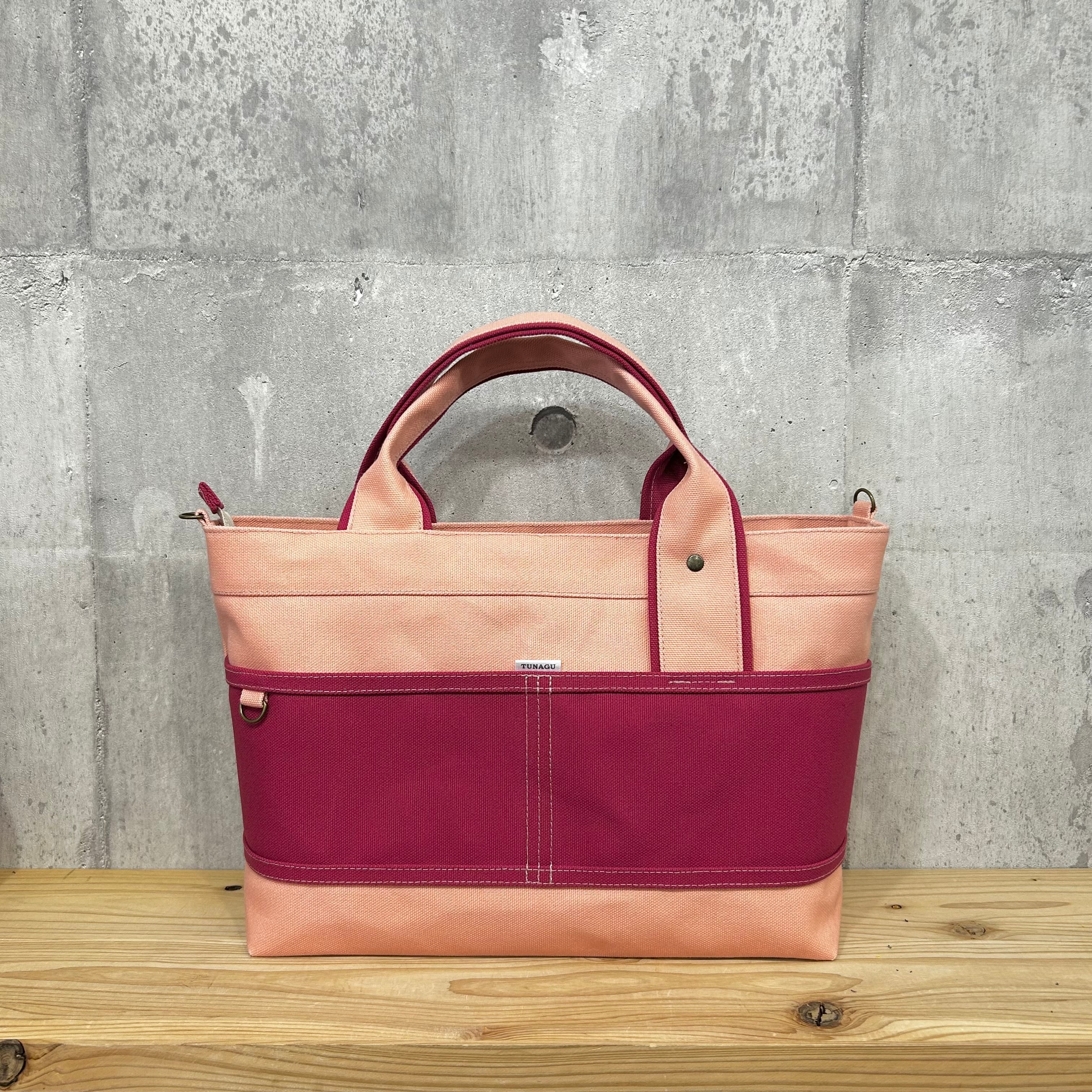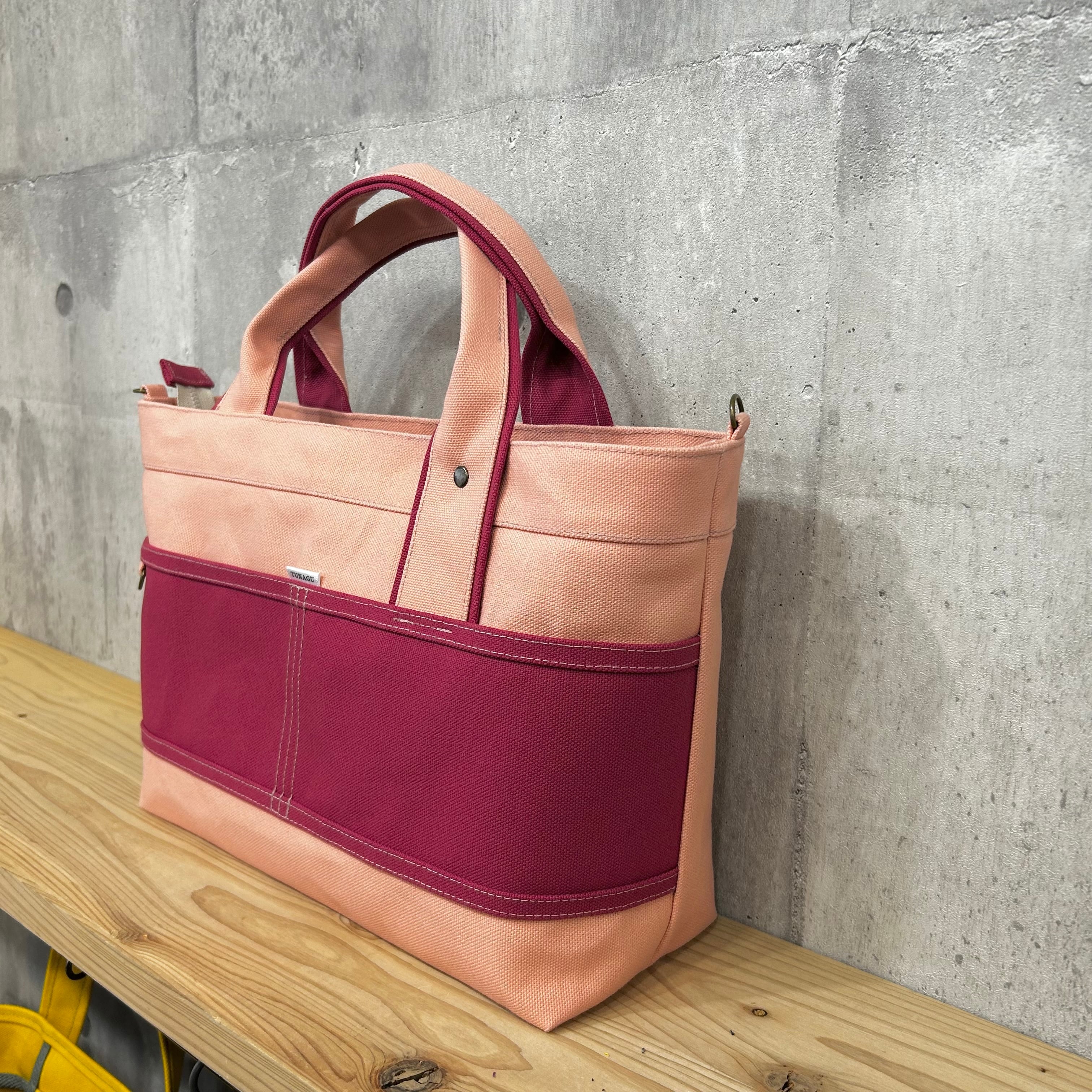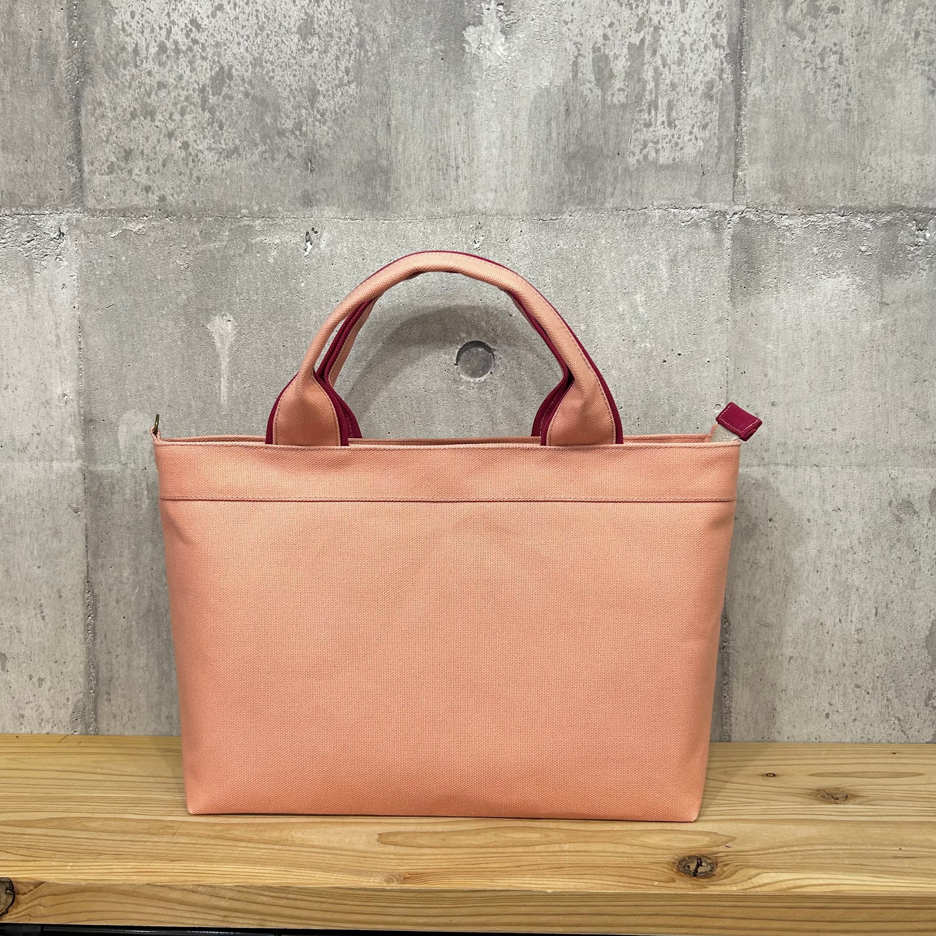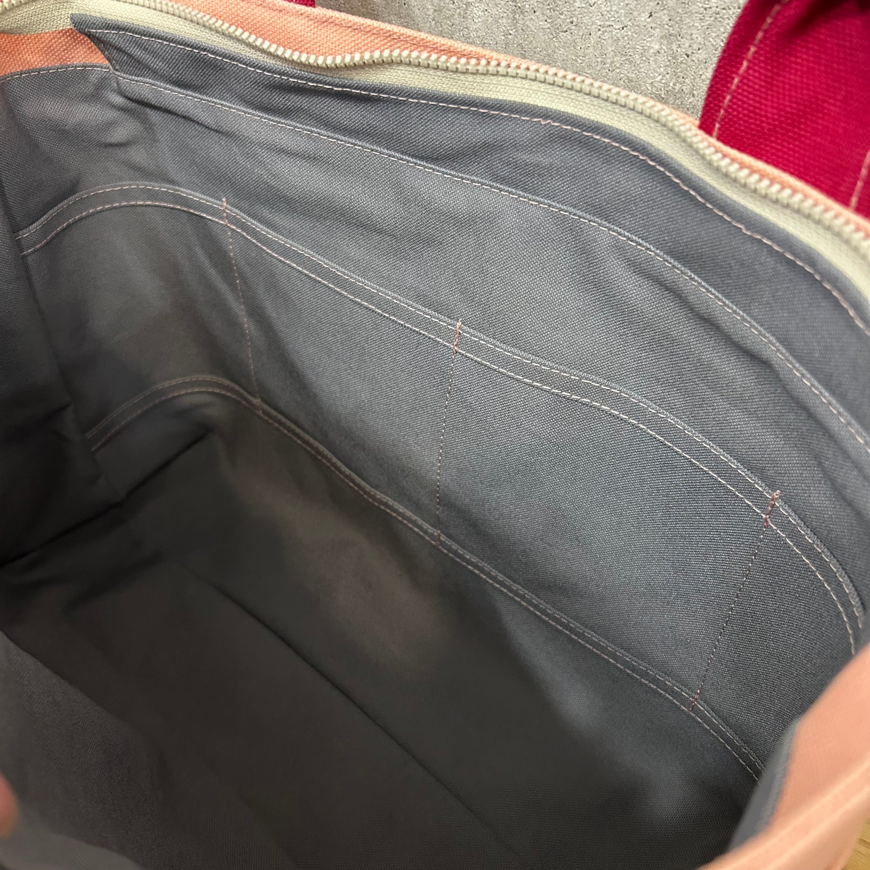 【開閉口ファスナー付】Bi Color Tote "M-L" / 内ポケット×4付 【シェルピンク×ホットピンク】