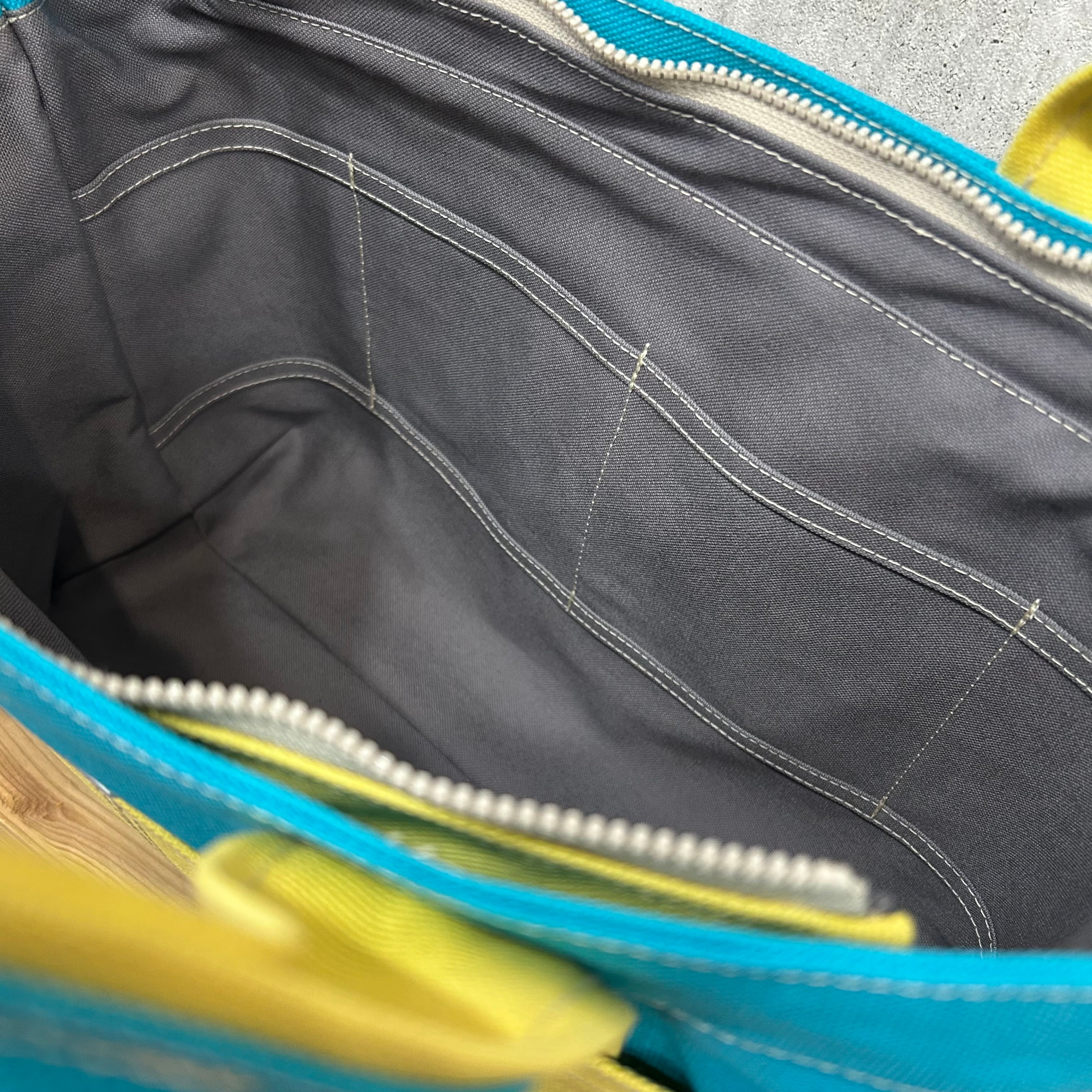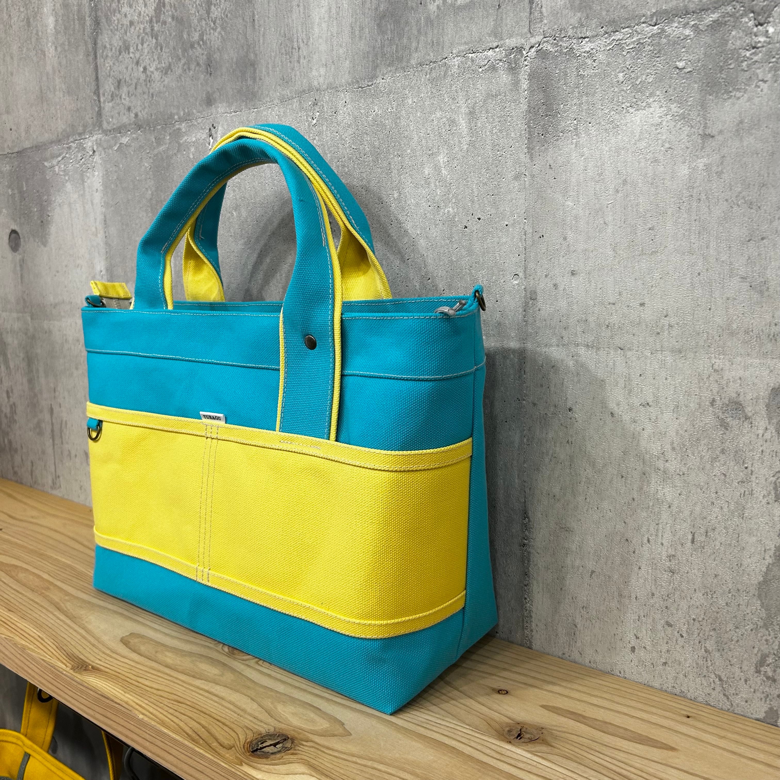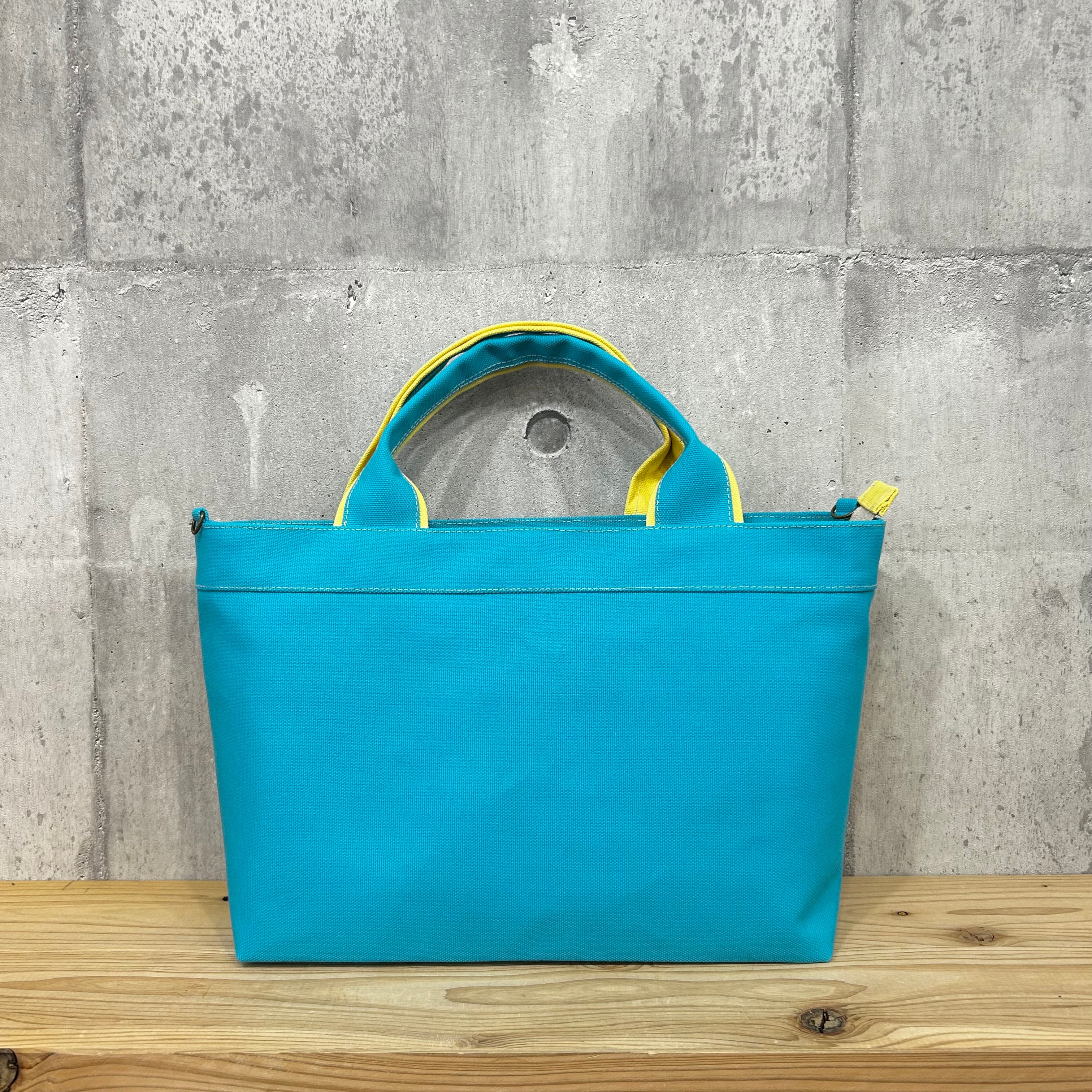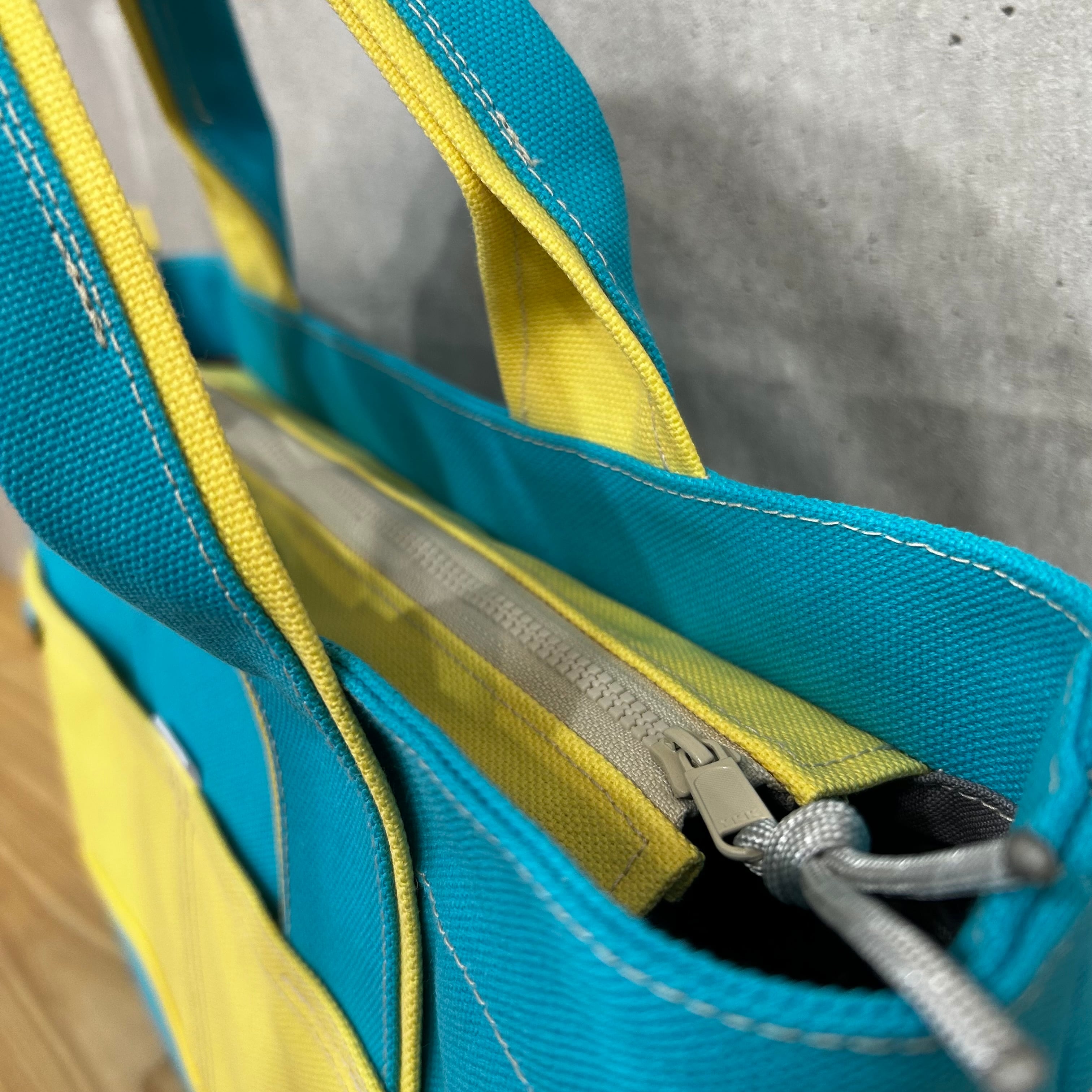 【開閉口ファスナー付】Bi Color Tote "M-L" / 内ポケット×4付 【スカイブルー×バニラ】