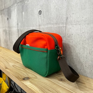 .+*square shoulder Bag 〈 キャロット×グリーン 〉