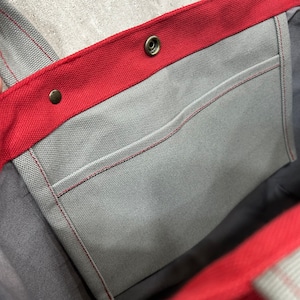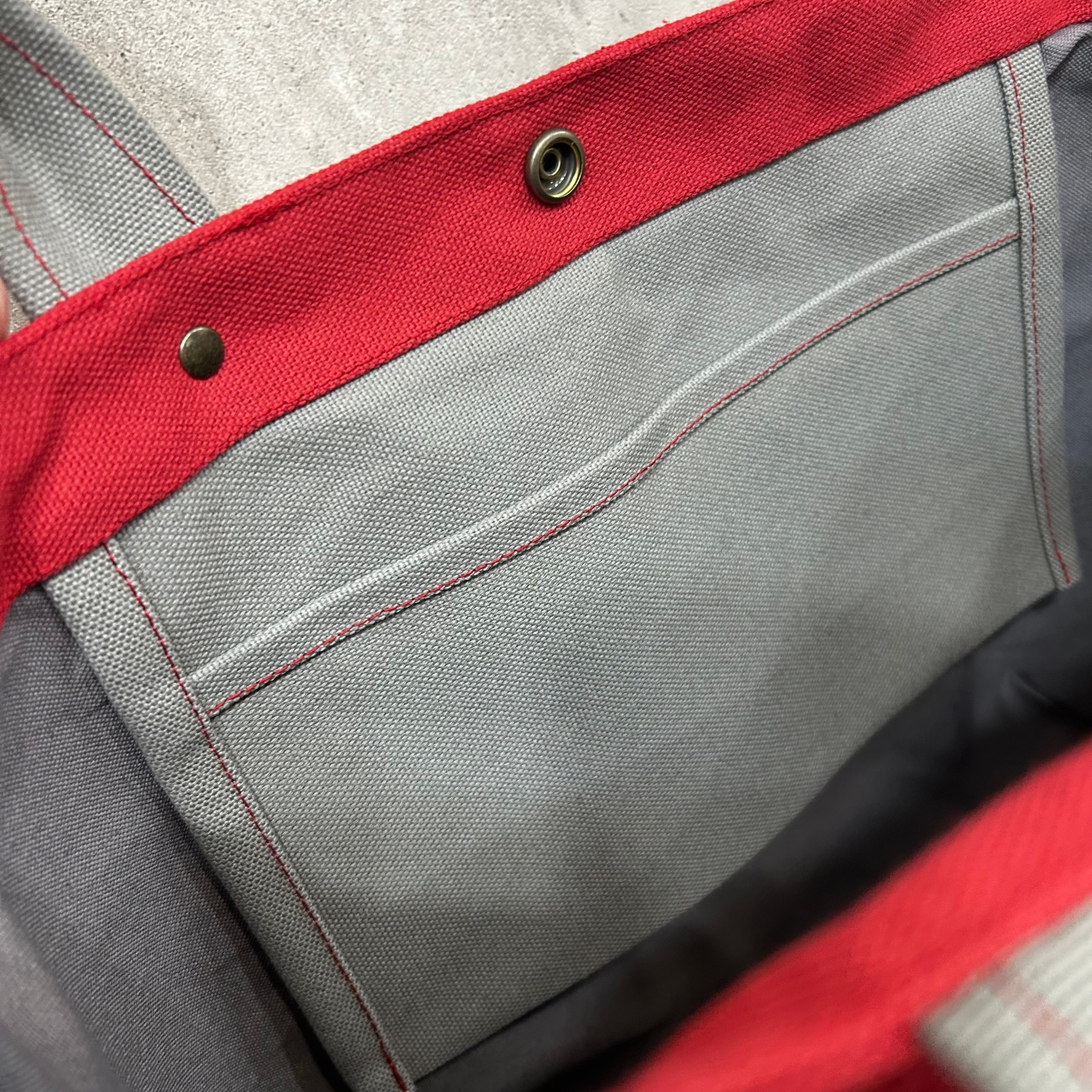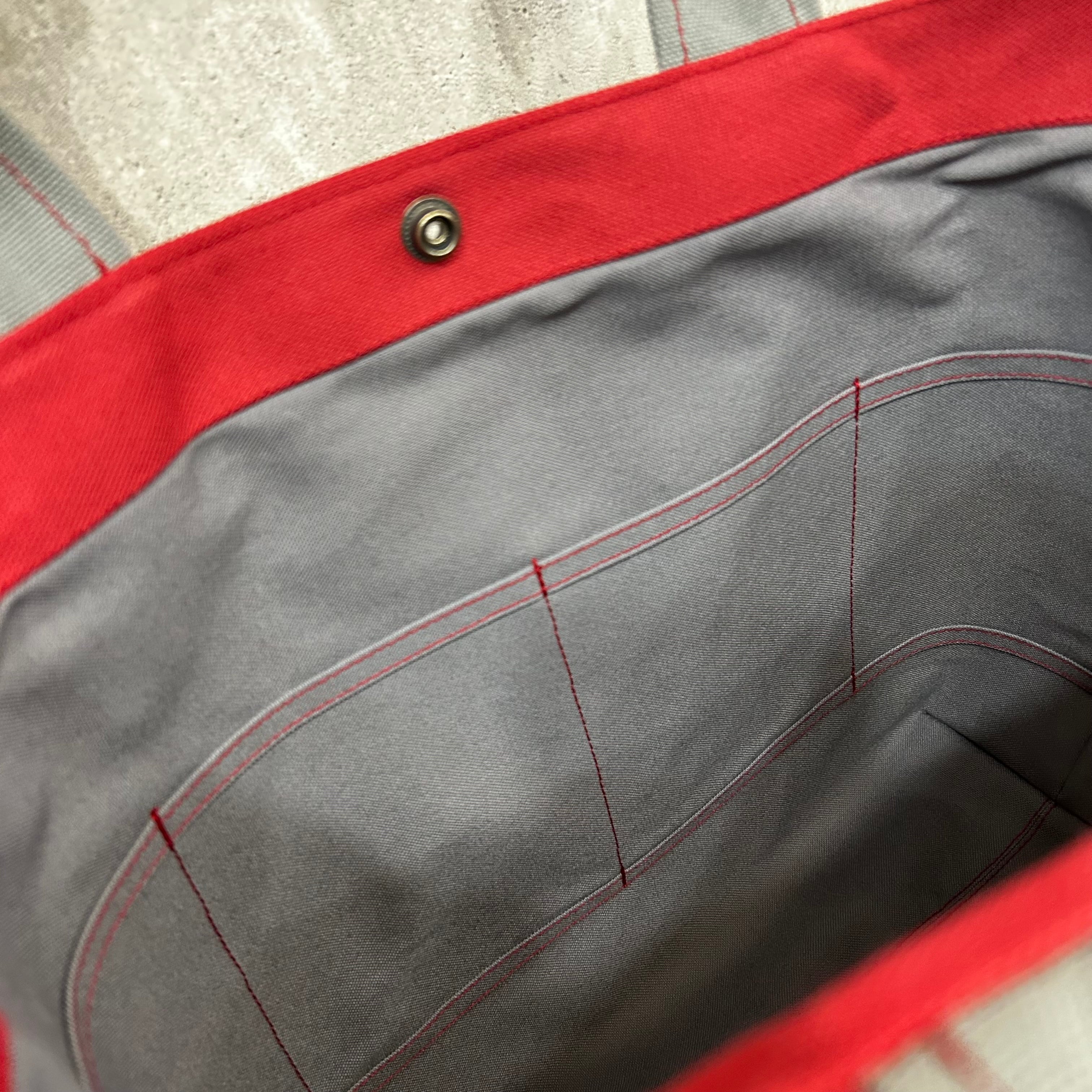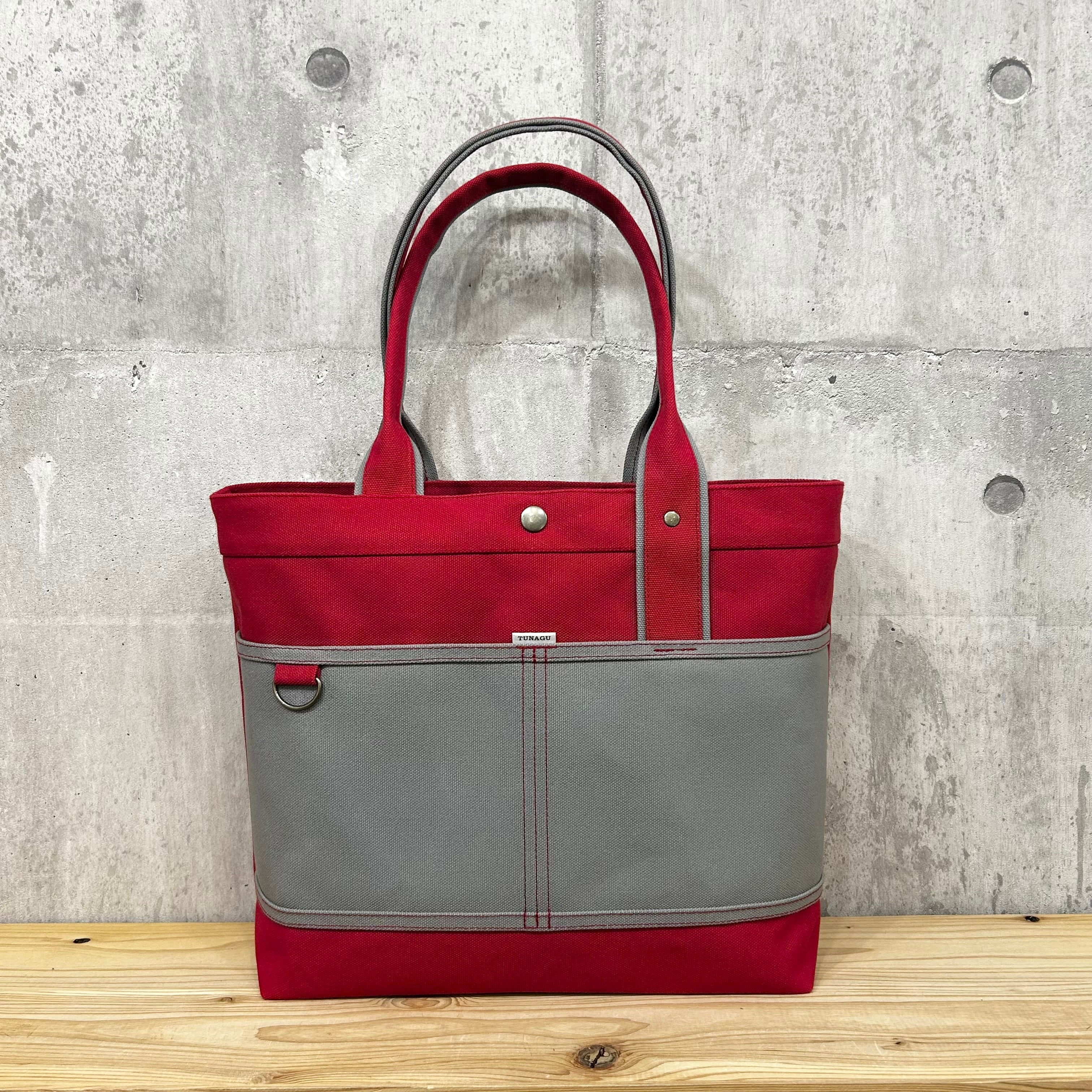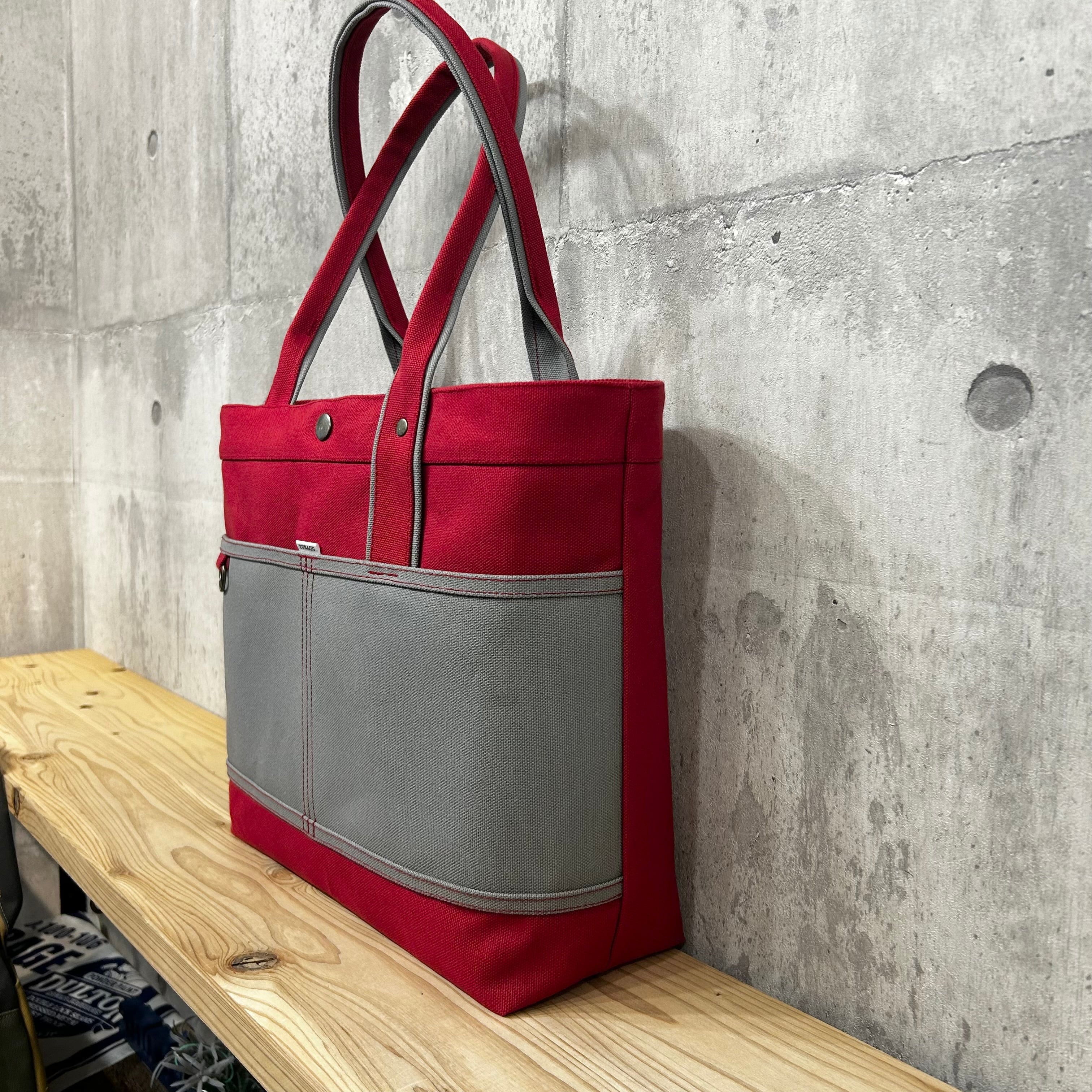 【訳あり¥500値引品】Bi Color Tote "L" / 内ポケット×5付 <濃赤×グレー>
