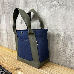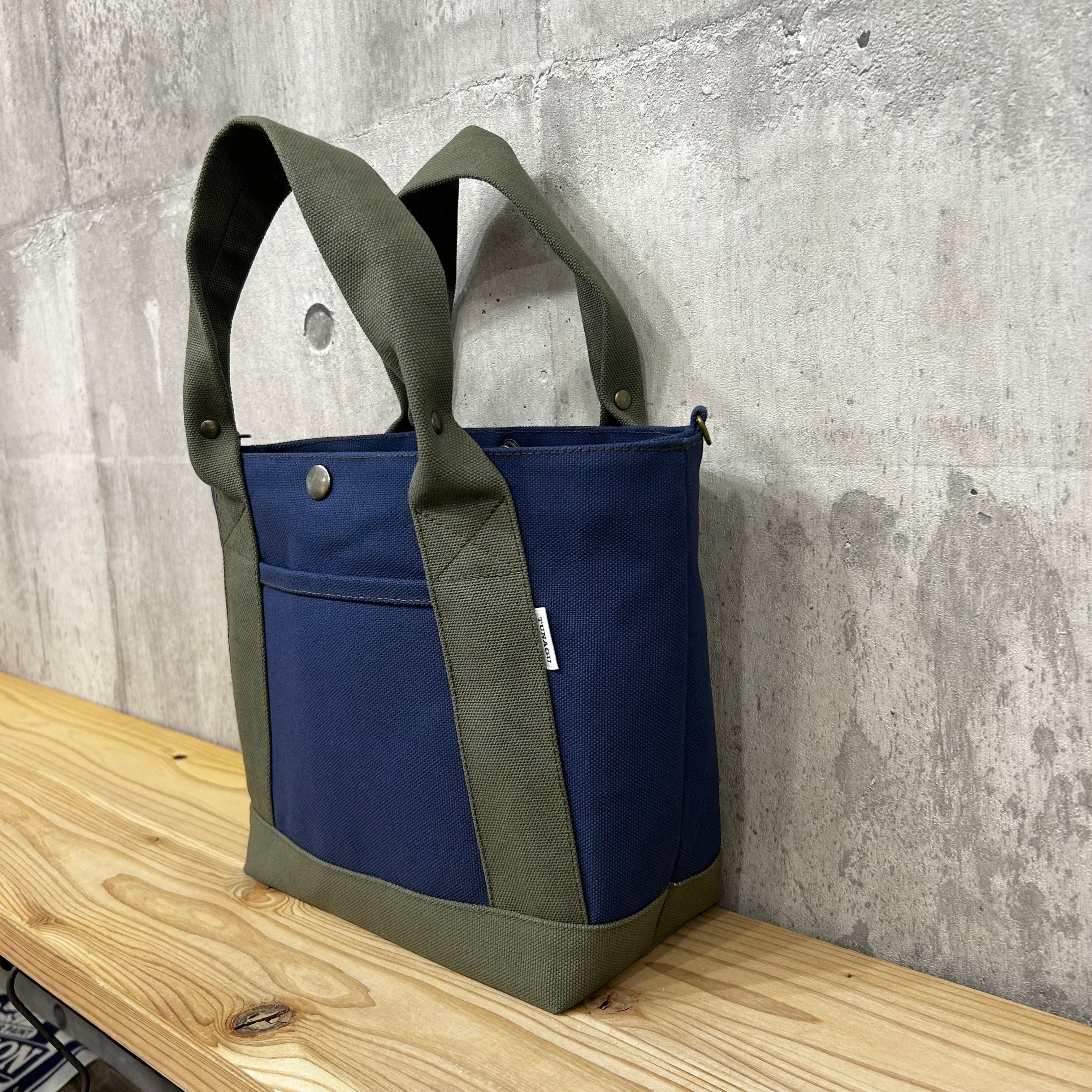 .+*クシャッと持ち手*+.末広トートバッグ 【紺×ジャングル】