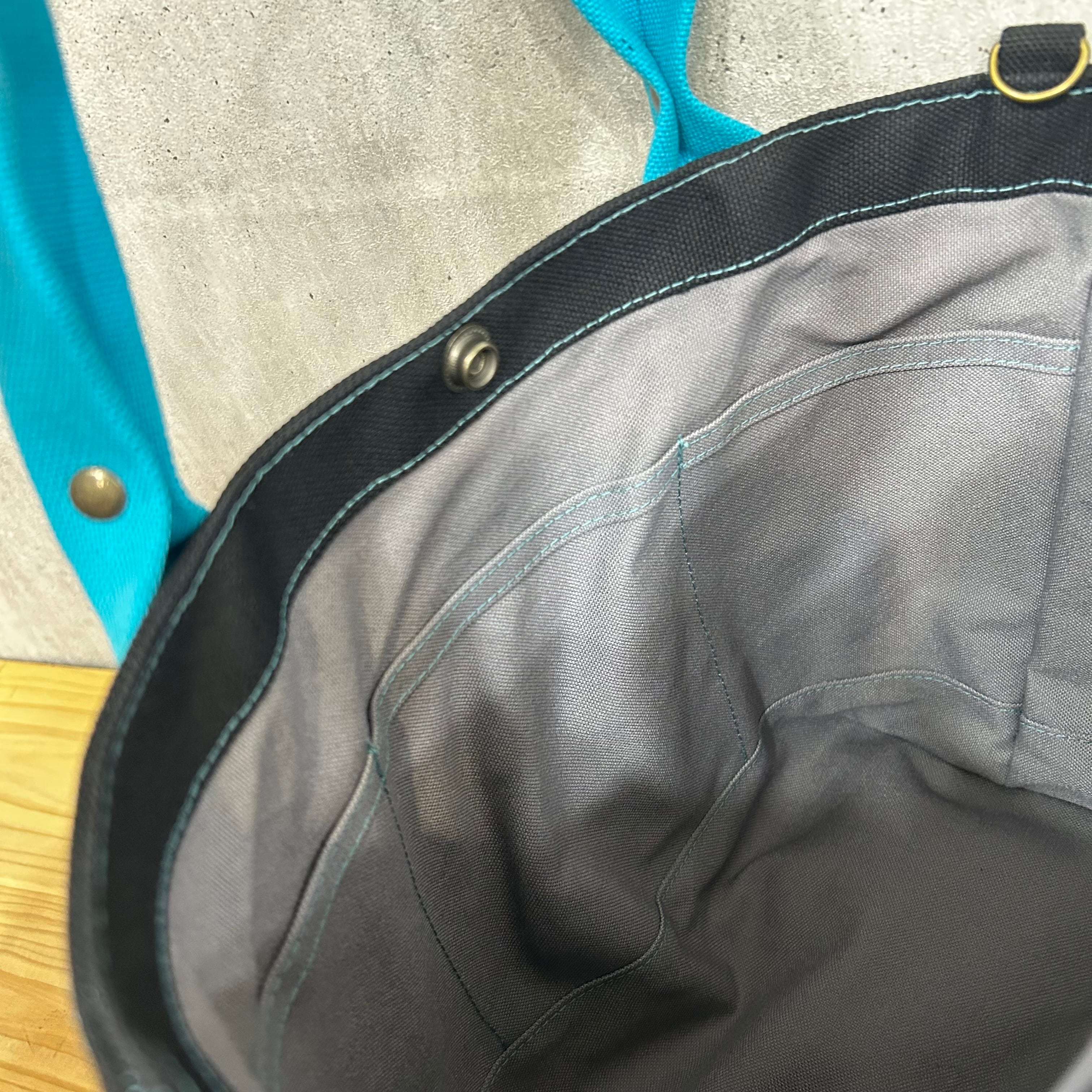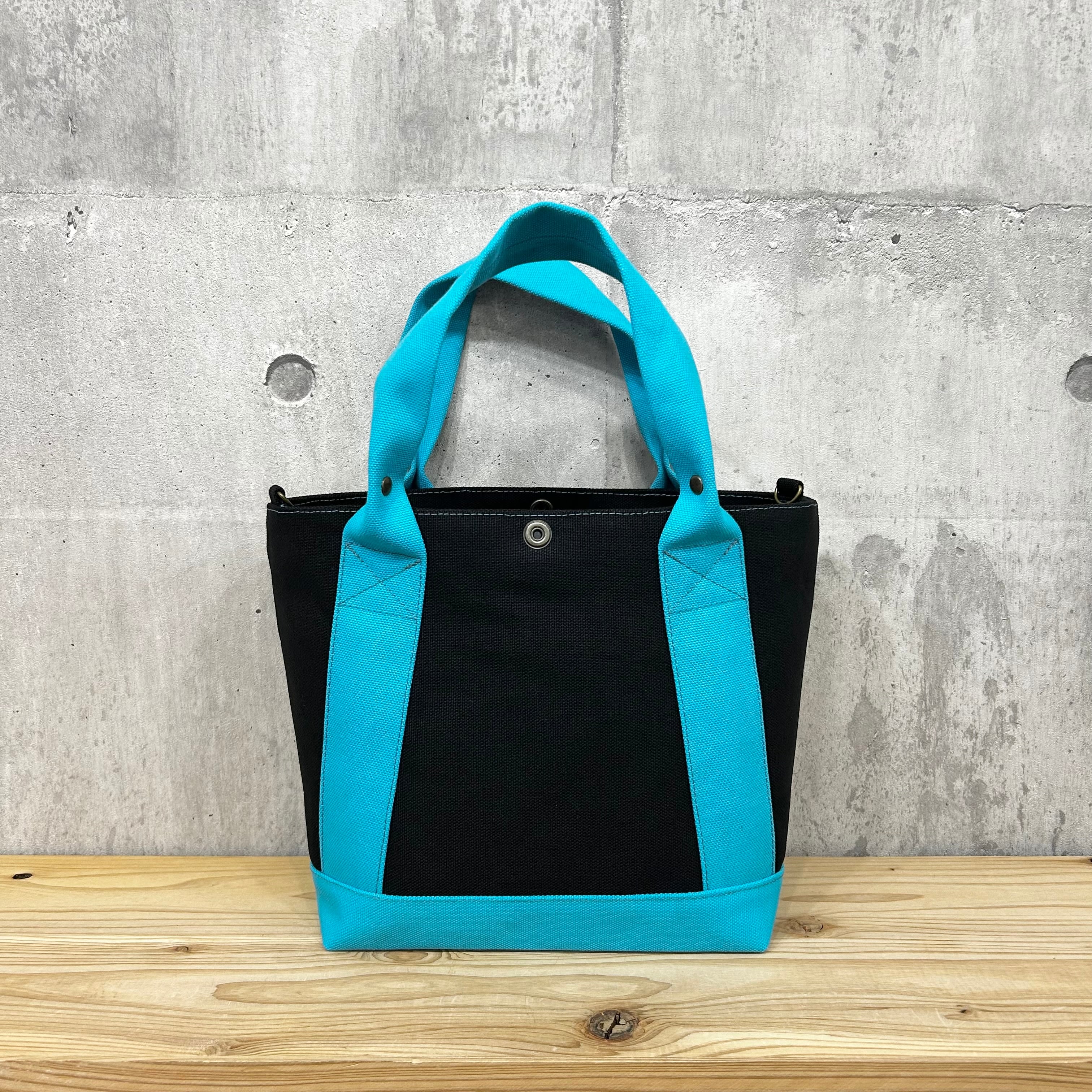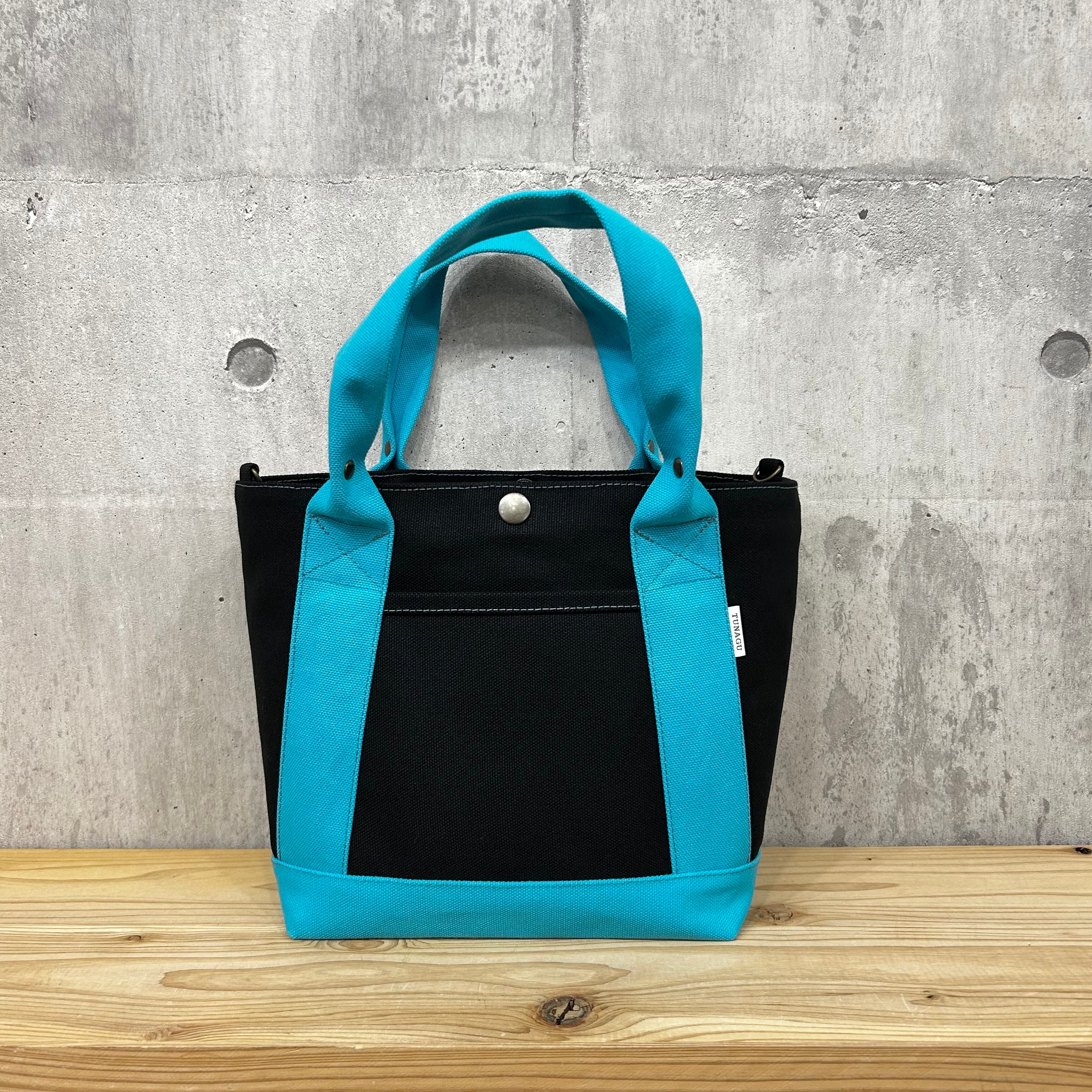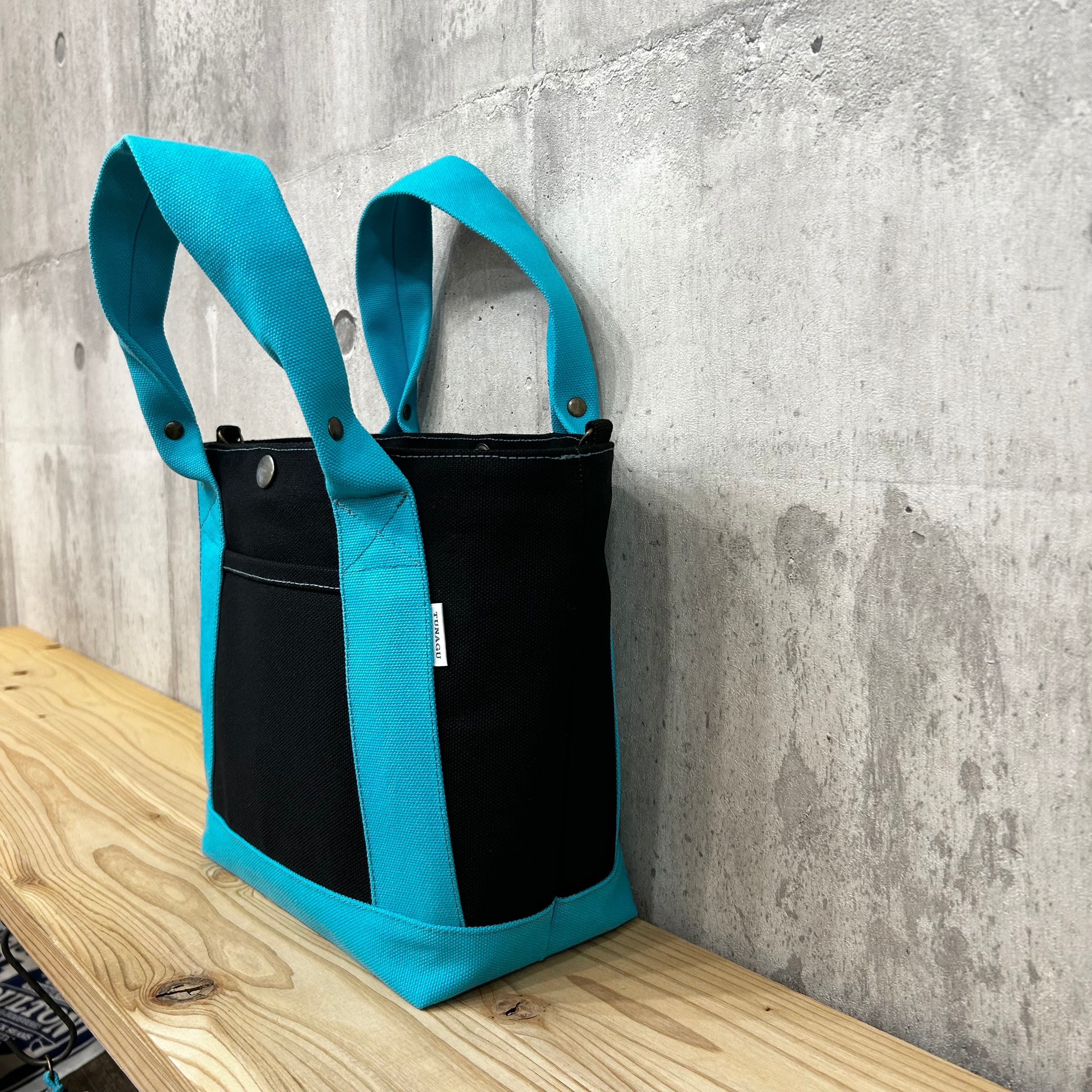 .+*クシャッと持ち手*+.末広トートバッグ 【ブラック×スカイブルー】