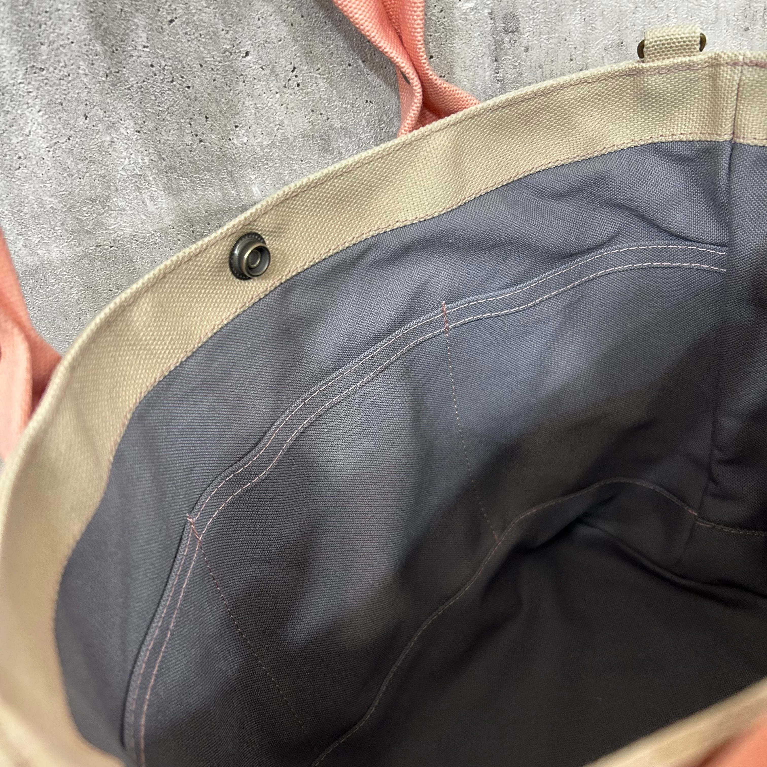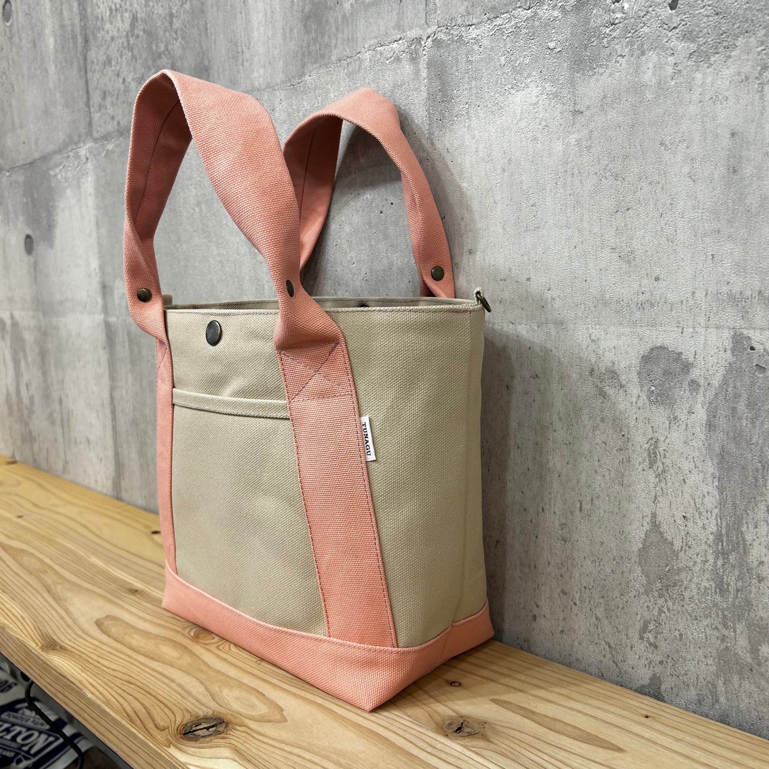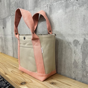 .+*クシャッと持ち手*+.末広トートバッグ 【グレーベージュ×スカイブルー】