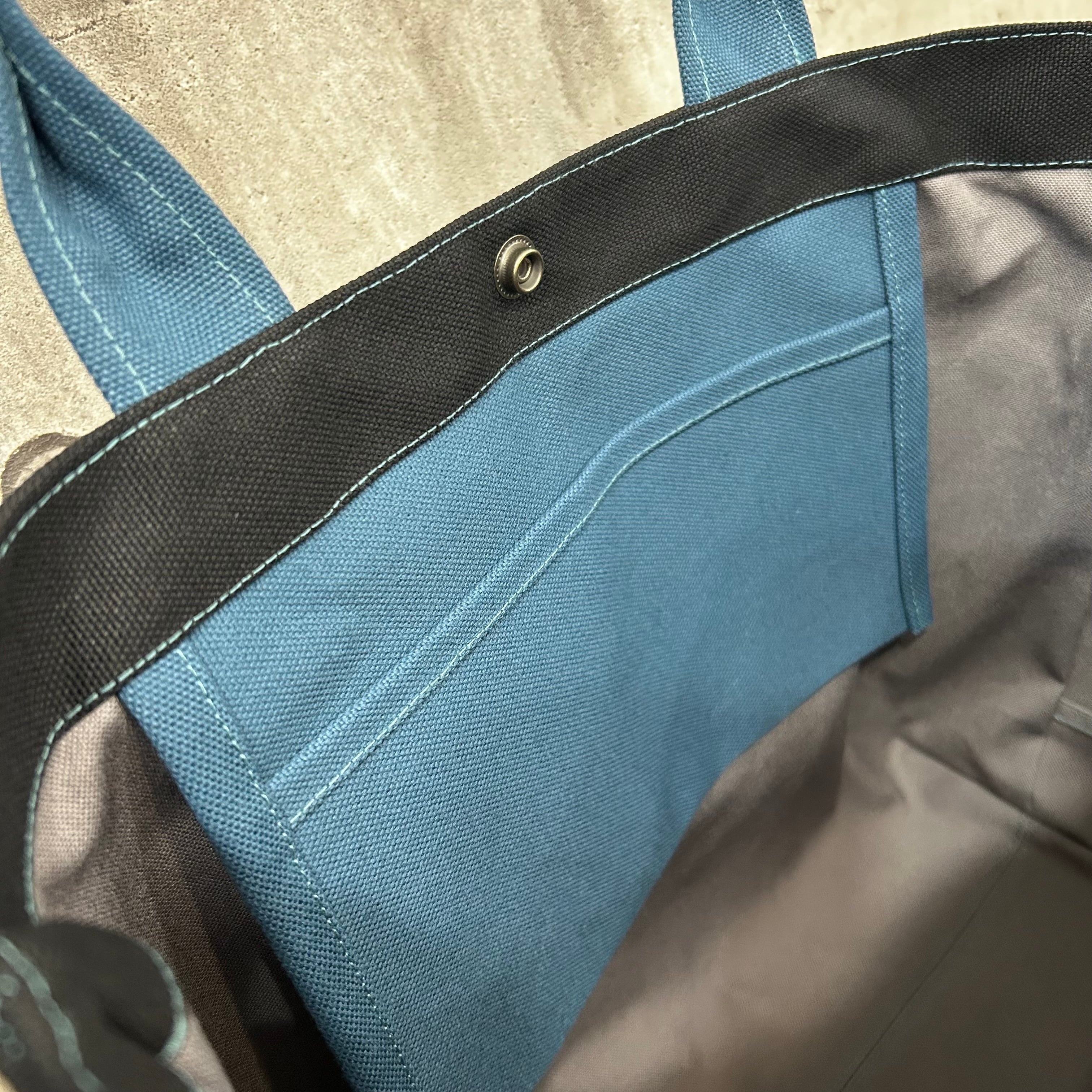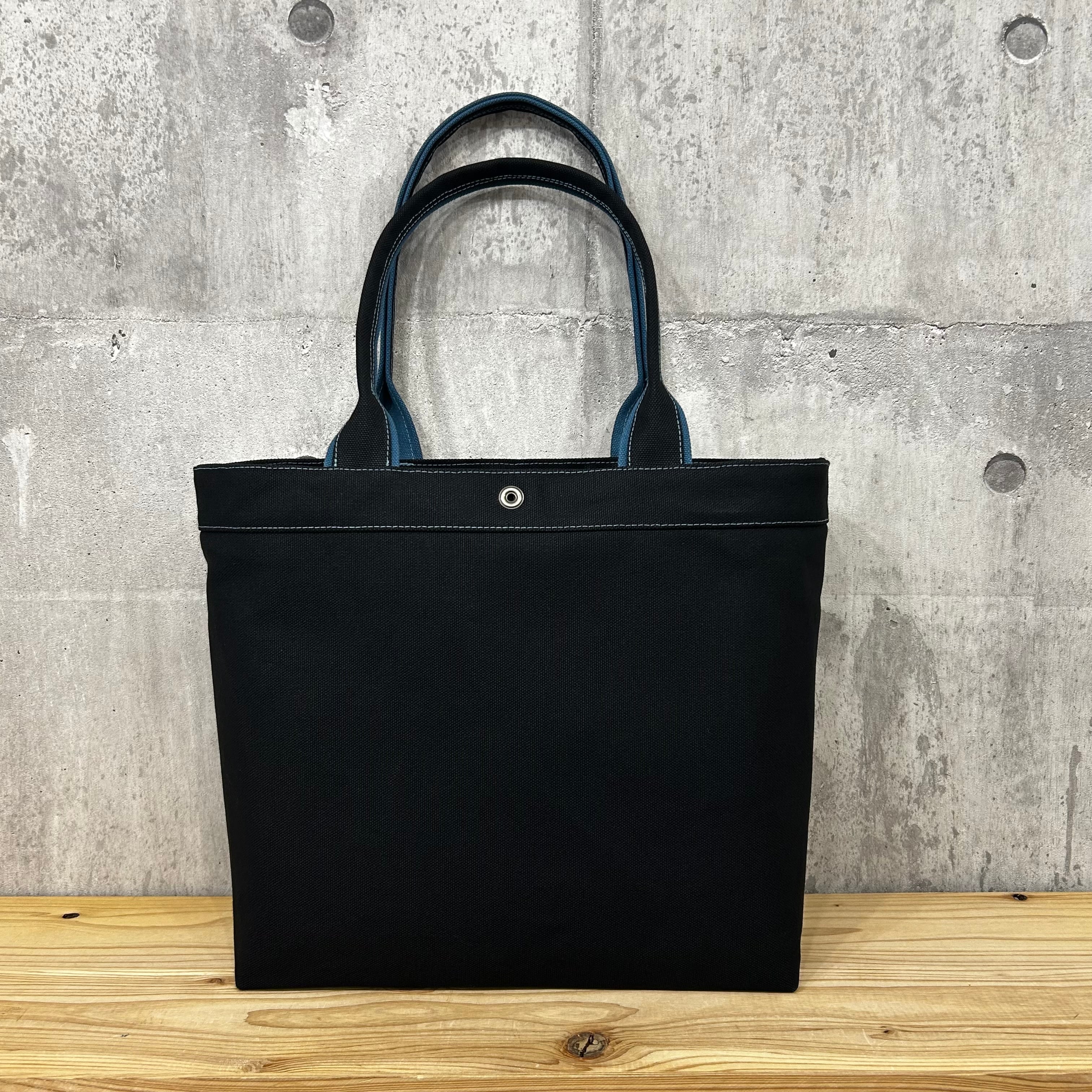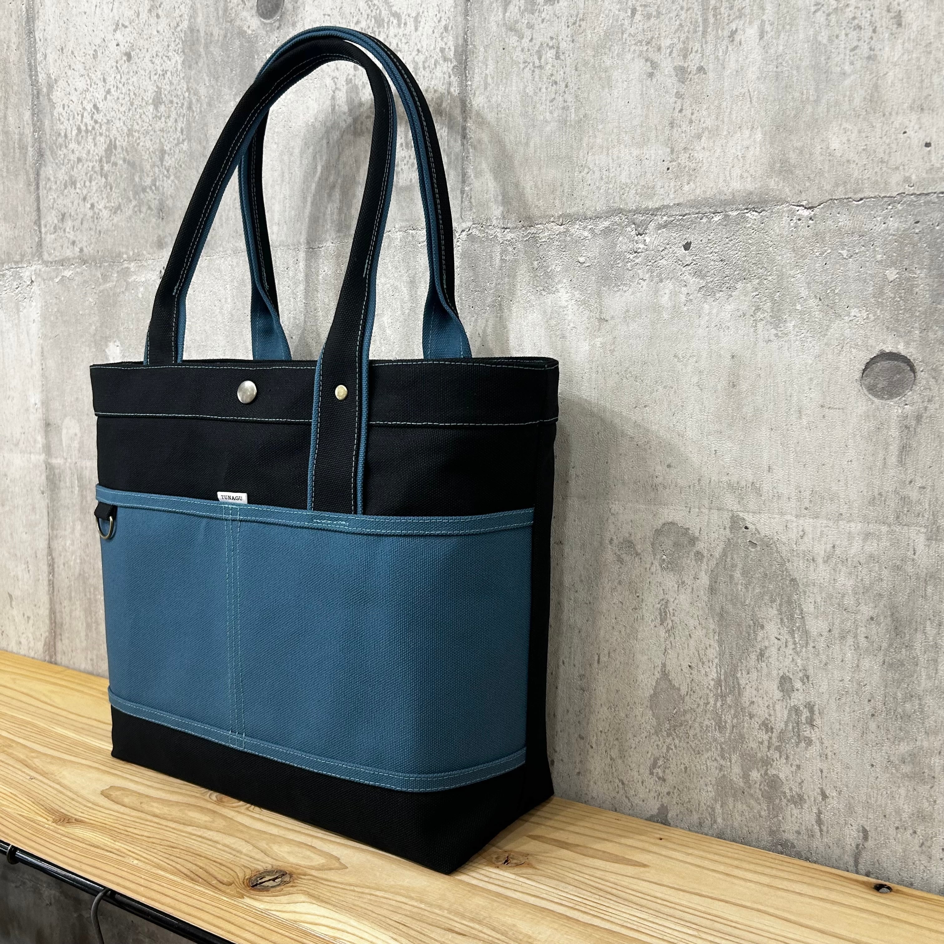 Bi Color Tote "L" / 内ポケット×5付 【ブラック×レインブルー】