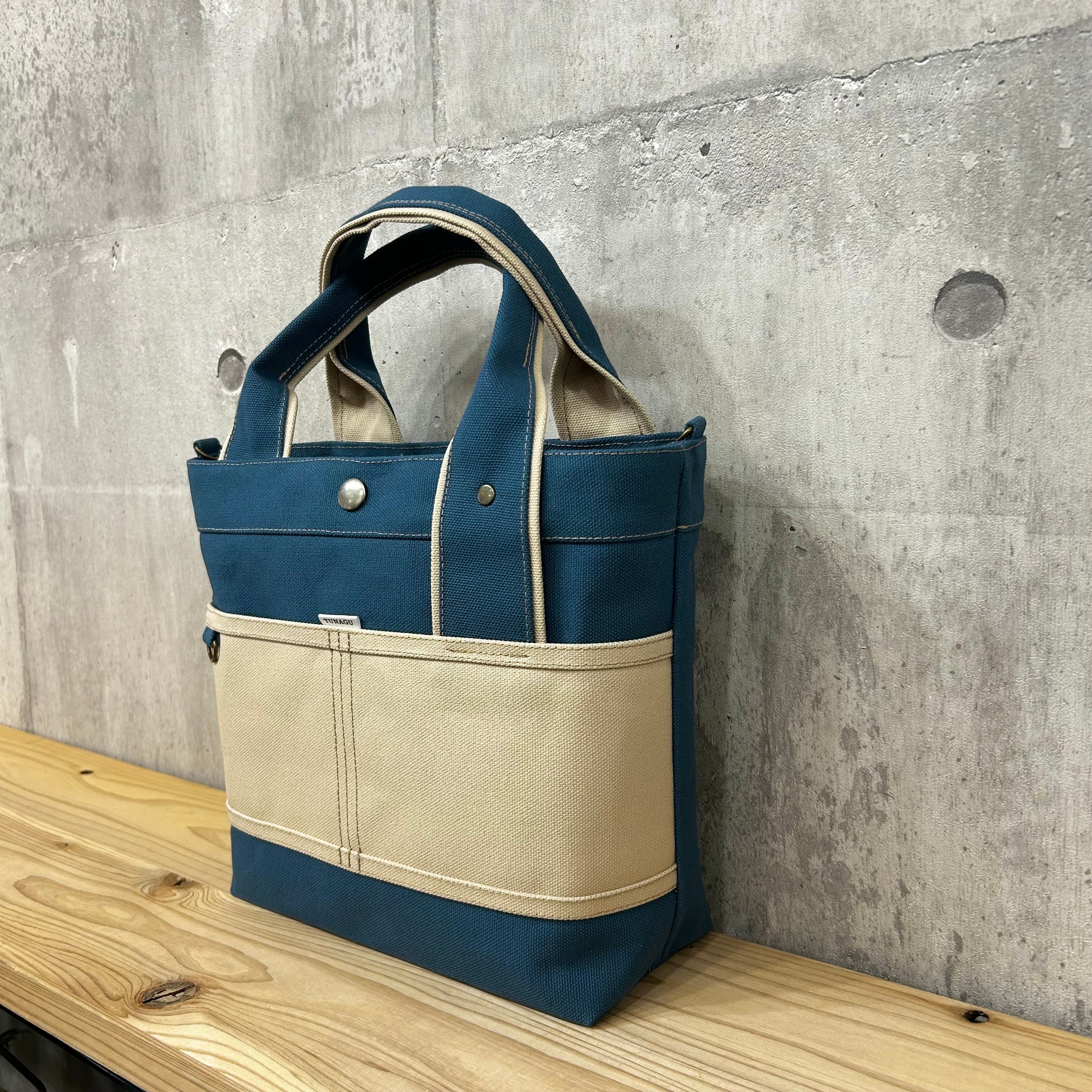 当店人気No.1.▽Bi Color Tote "M"【レインブルー×グレーベージュ】