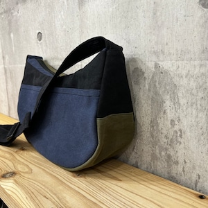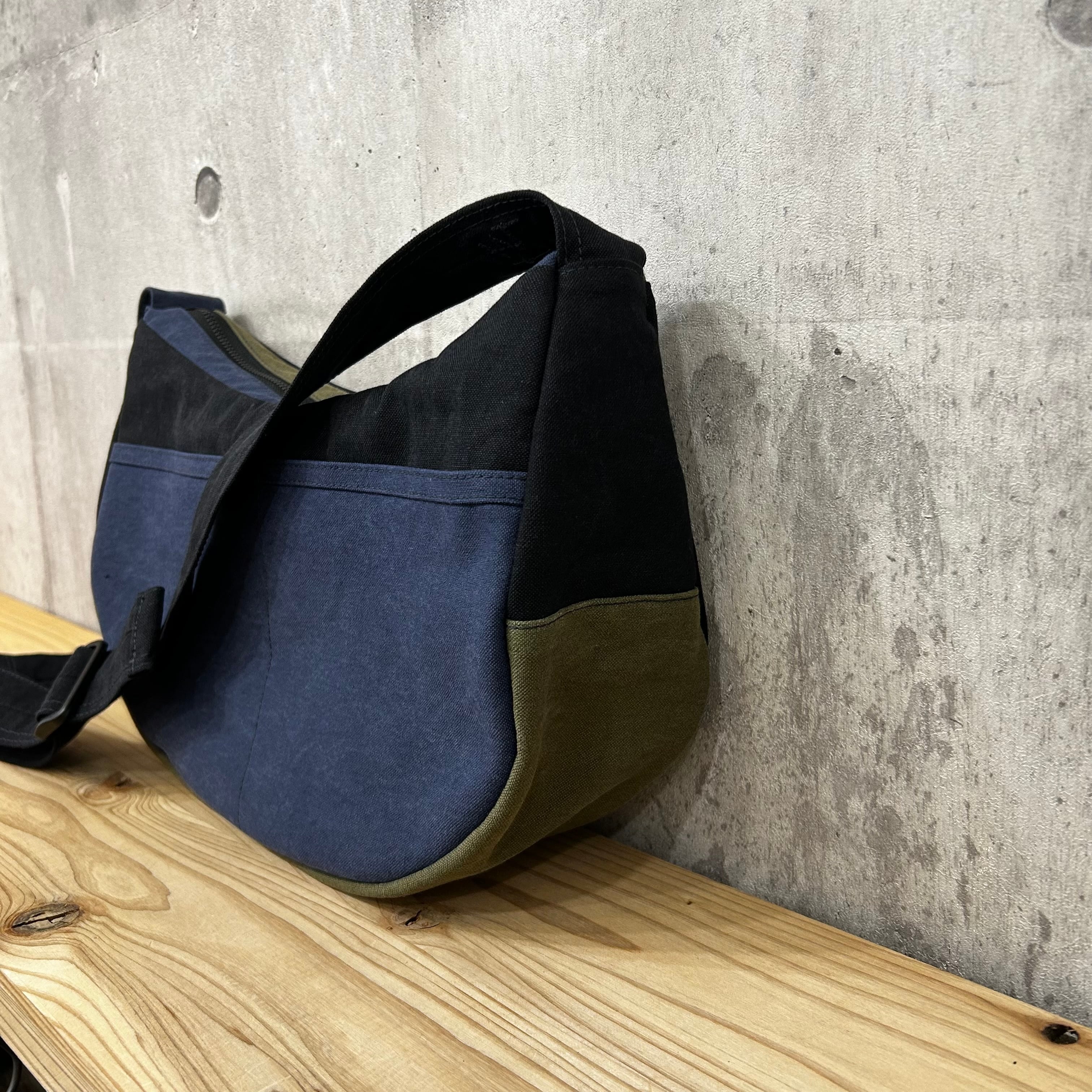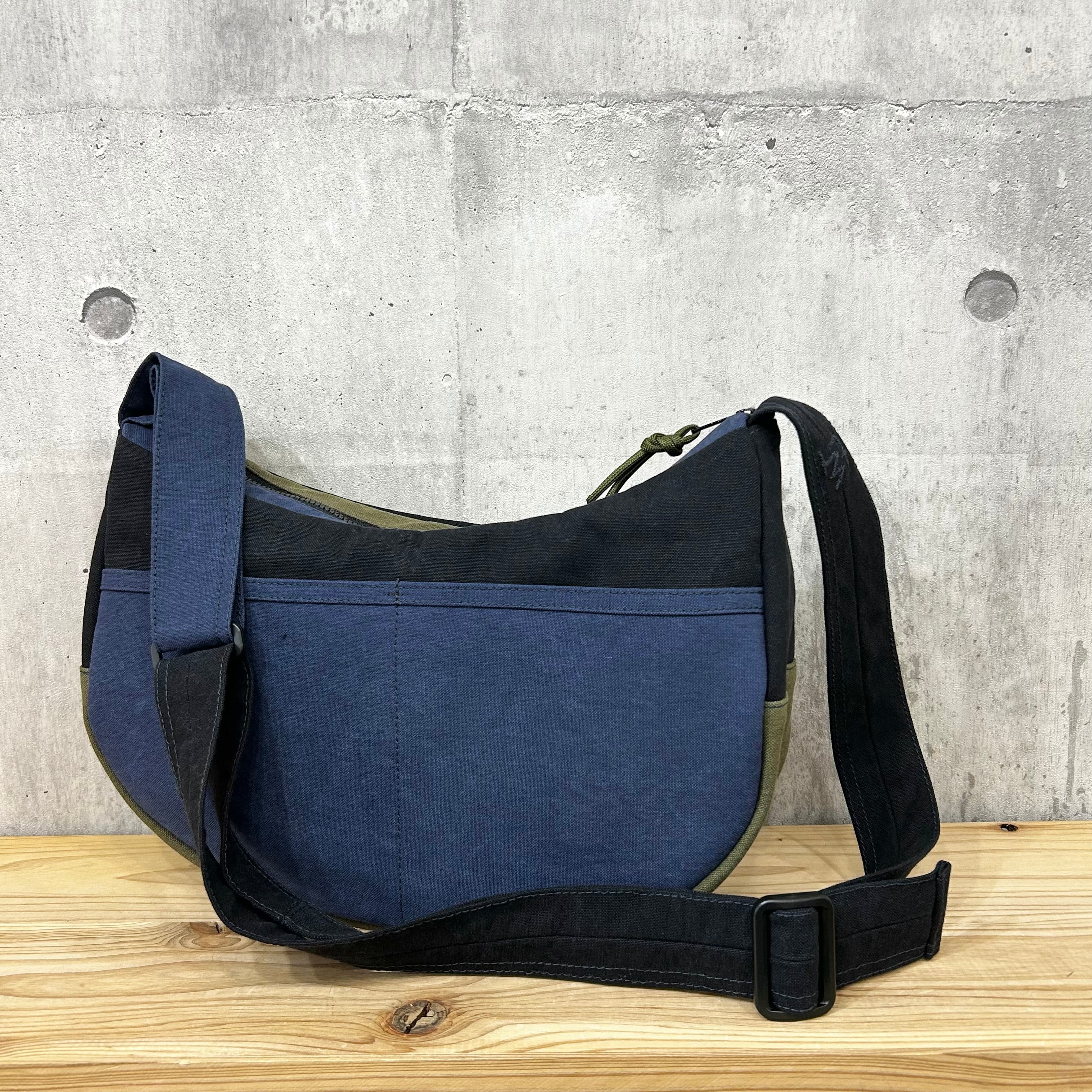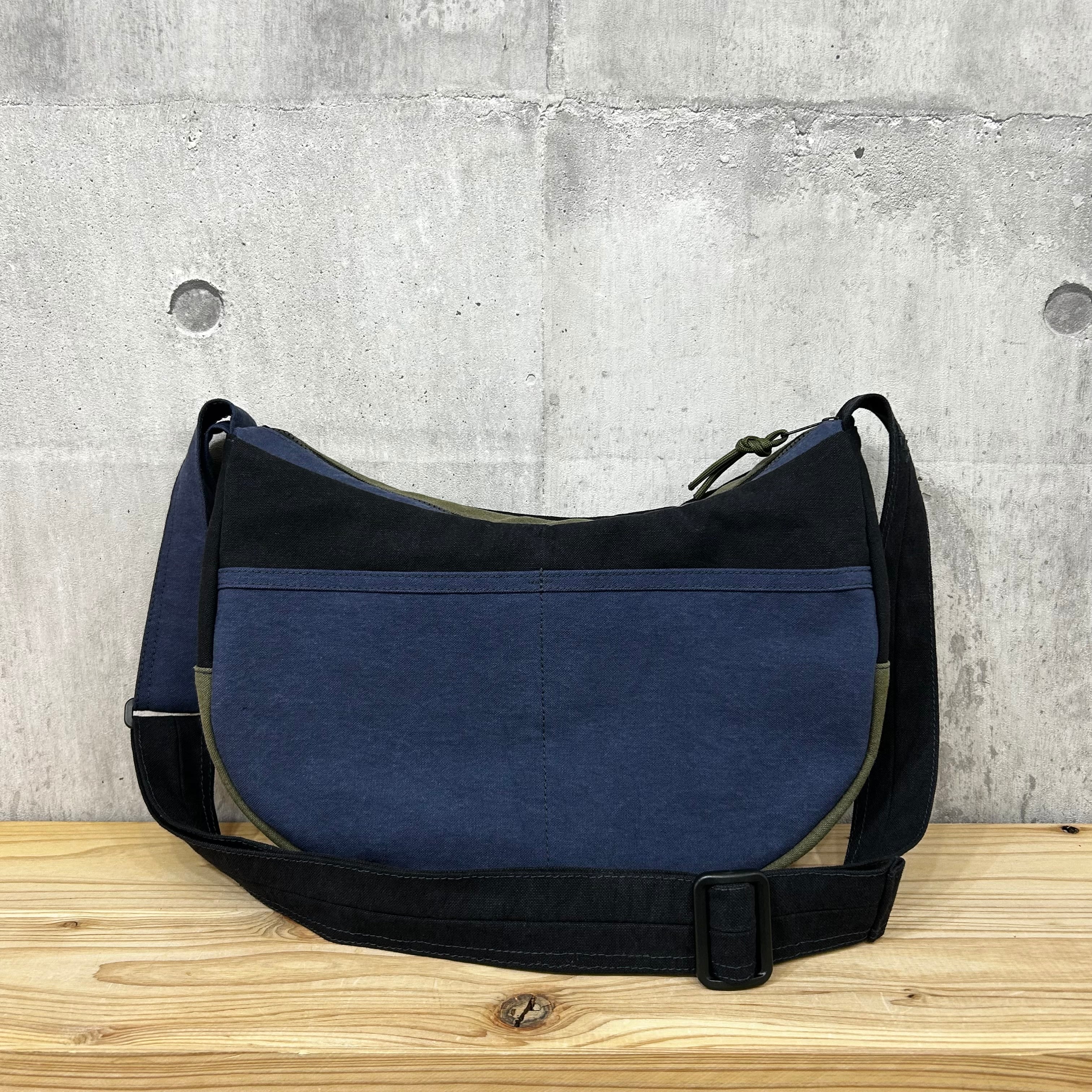 -* ラウンドショルダー *- <ヴァイオウォッシュ素材 / 紺×ブラック×オリーブ>