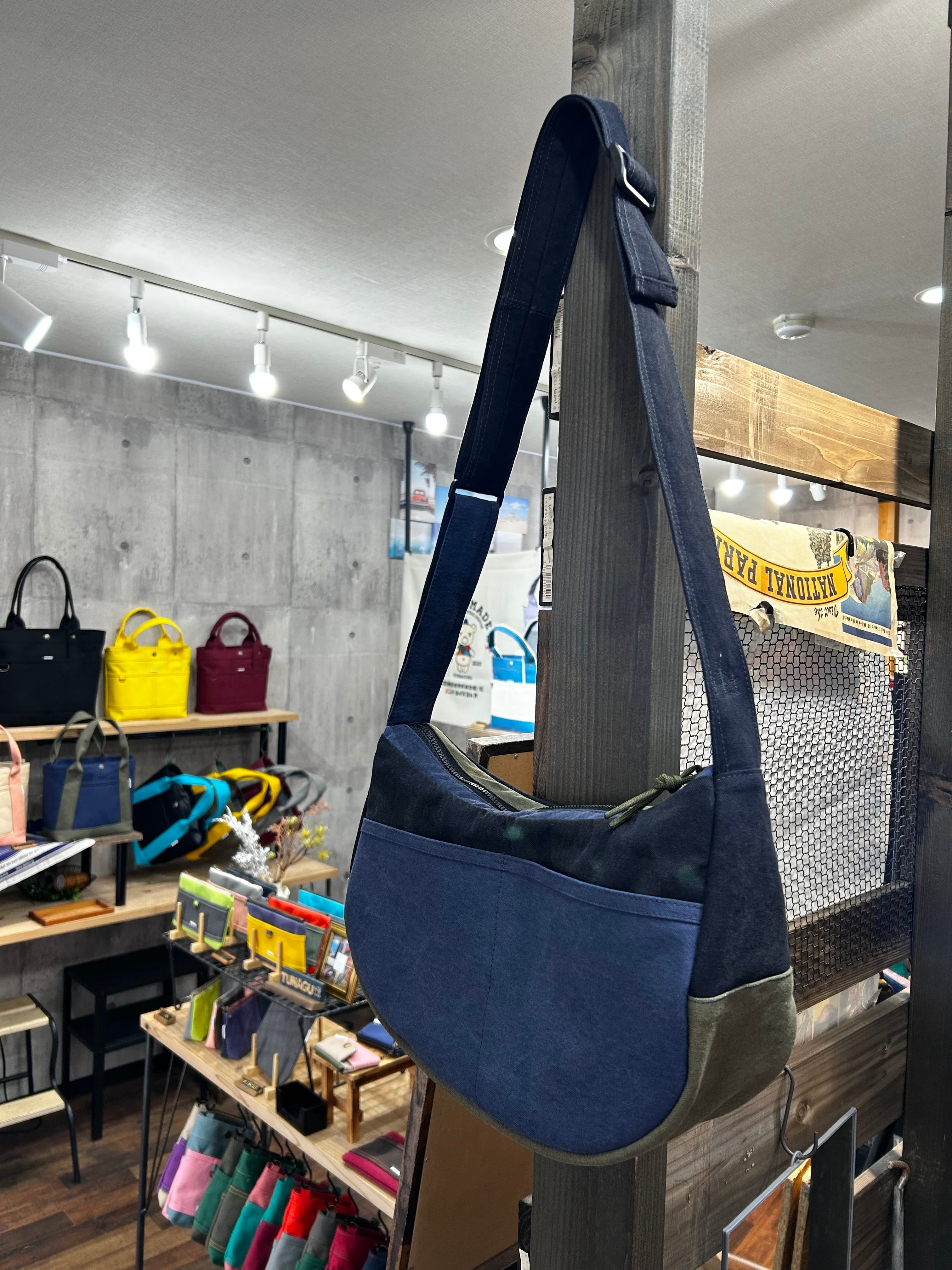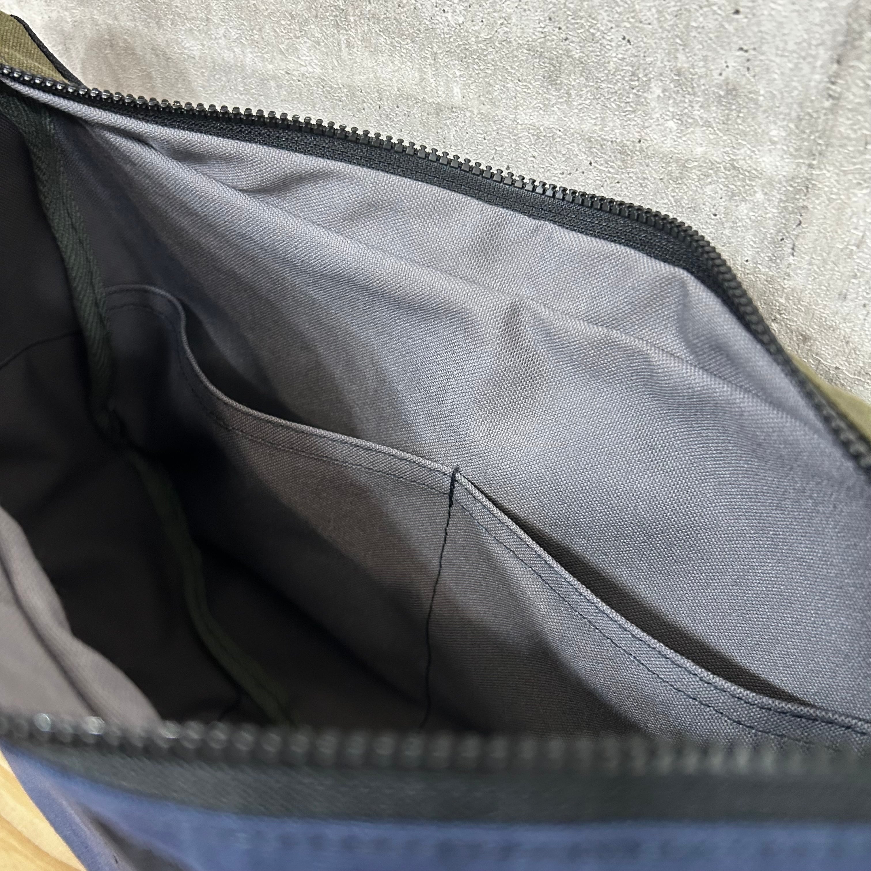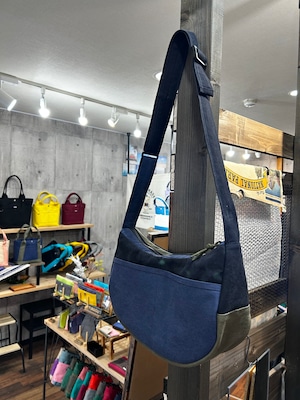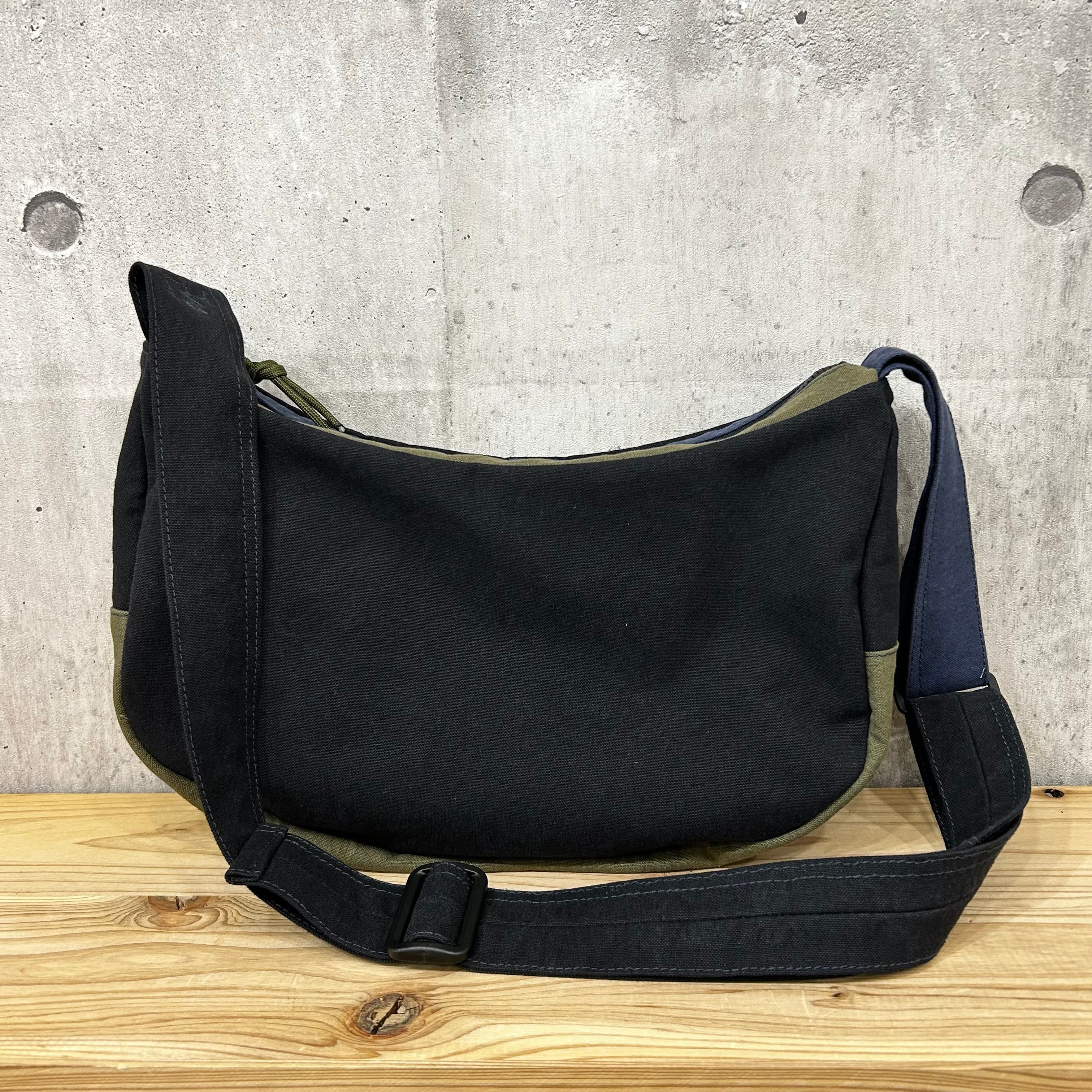 -* ラウンドショルダー *- <ヴァイオウォッシュ素材 / 紺×ブラック×オリーブ>