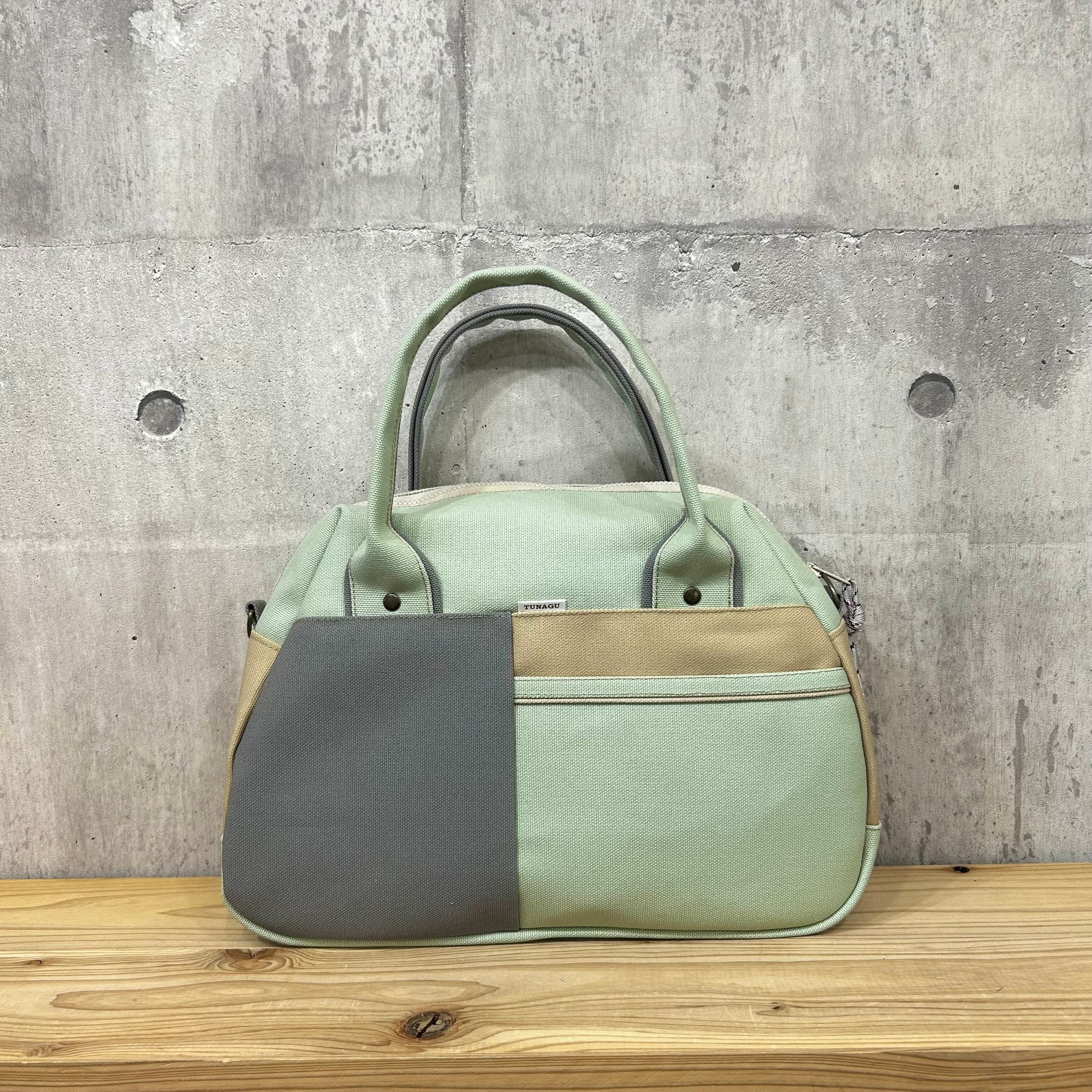 -* Boston Bag *- ブロック切替デザイン【クリームグリーン×濃グレー×グレーベージュ】