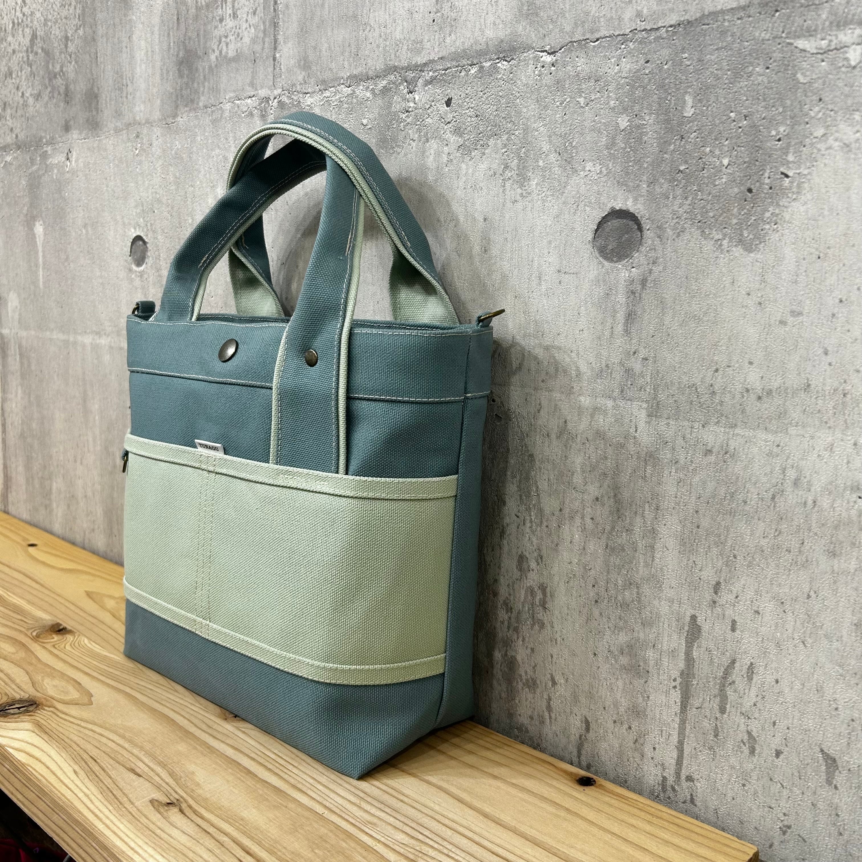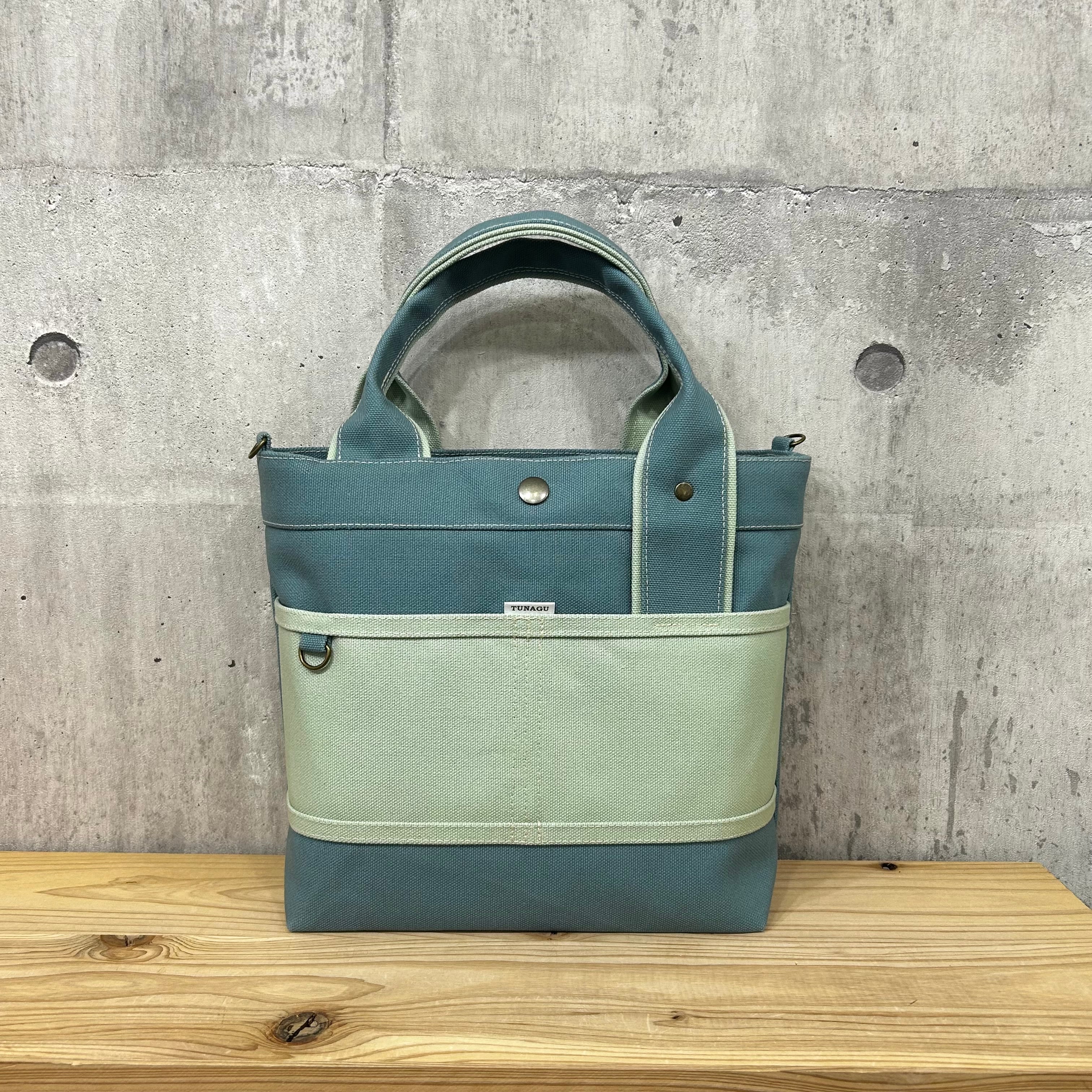 当店人気No.1.▽Bi Color Tote "M"【アイスグレー×クリームグリーン】