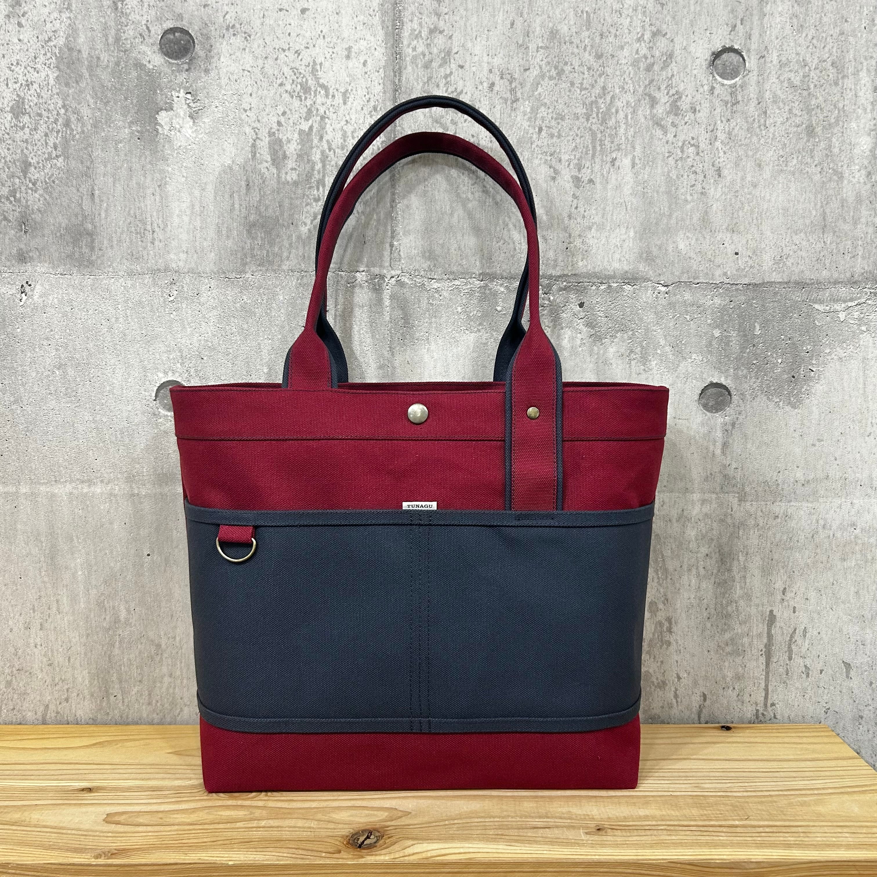 Bi Color Tote "L" / 内ポケット×5付 【ワイン×スモーキーブルー】