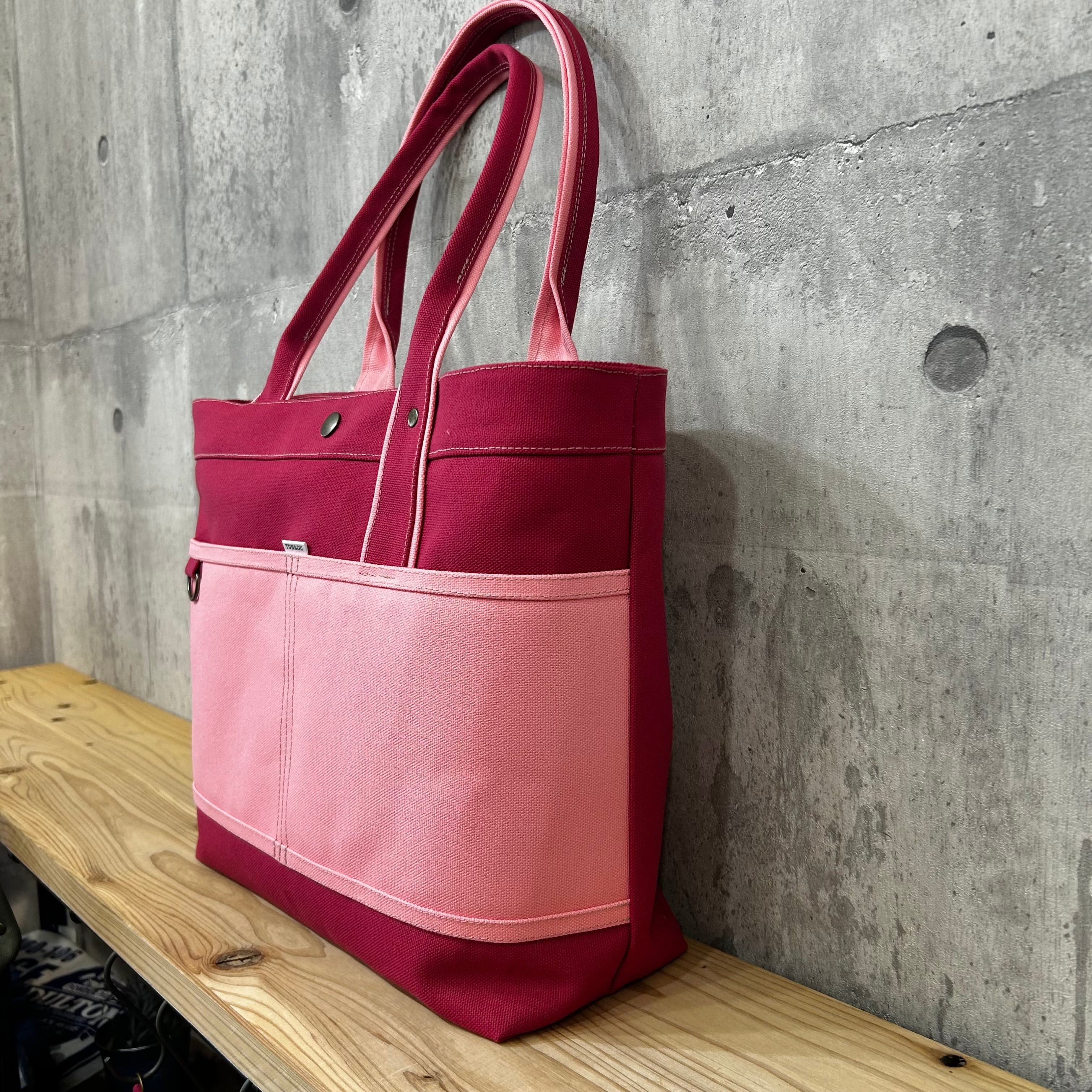 Bi Color Tote "L" / 内ポケット×5付 【ホットピンク×ピンク】