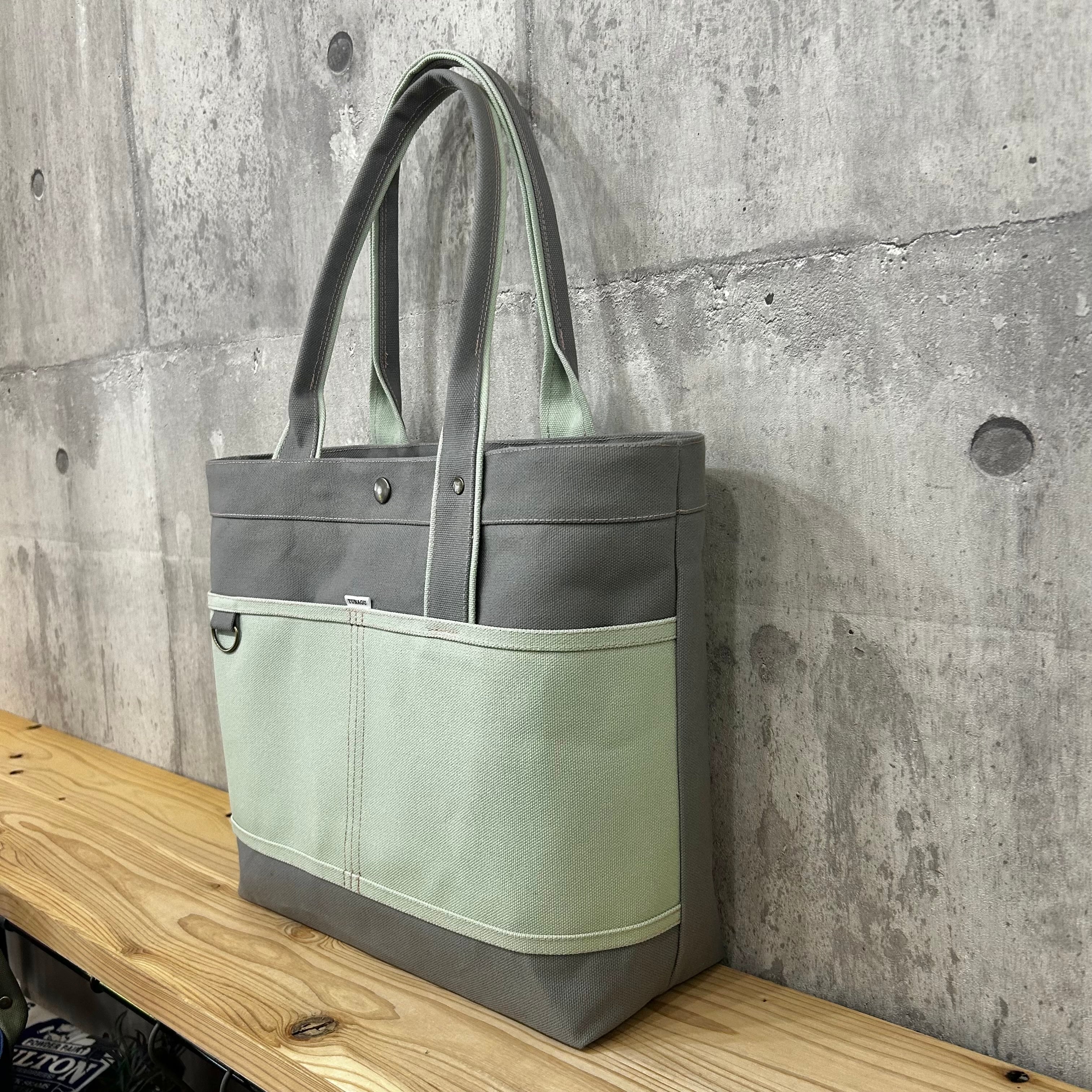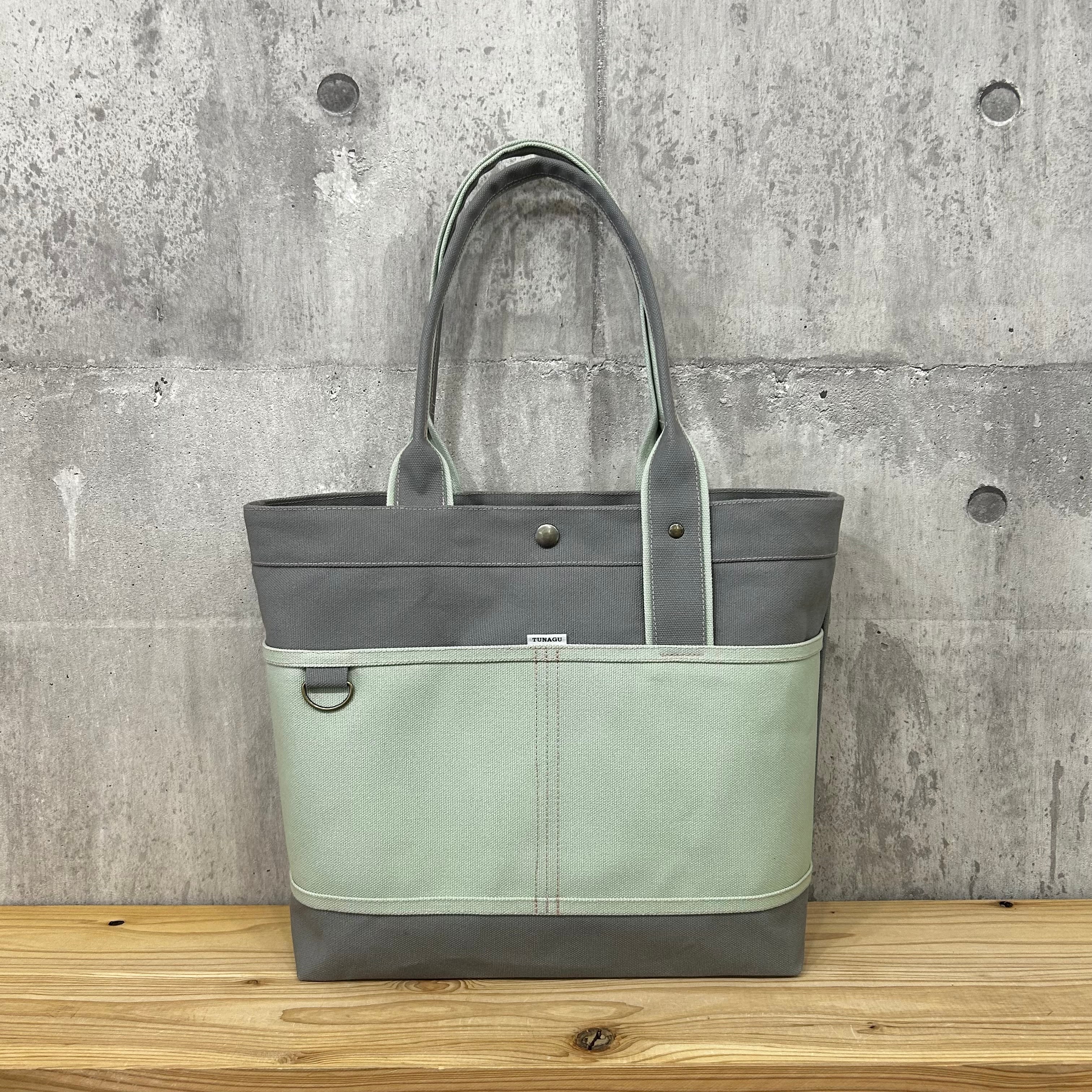 Bi Color Tote "L" / 内ポケット×5付 【グレー×クリームグリーン】
