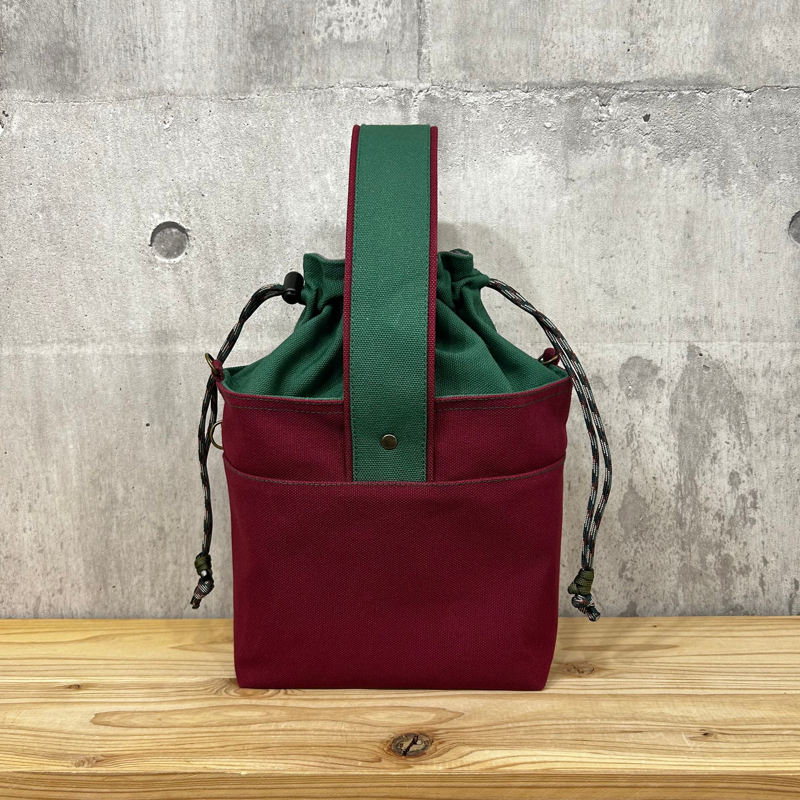 【紐なし】2025新作-* One Handle Para2WayBag *- <2WAY仕様> / ワイン×ミドルグリーン