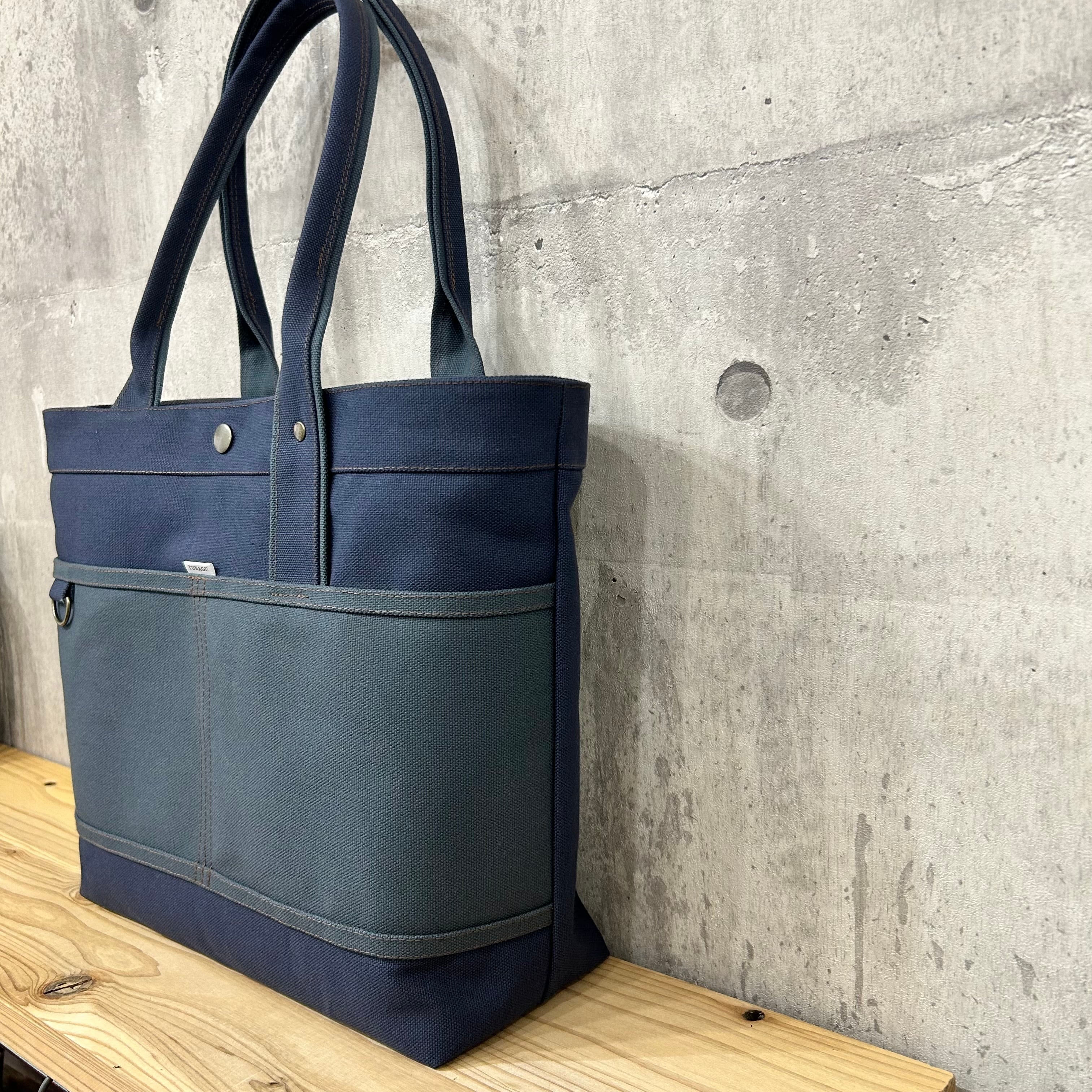 Bi Color Tote "L" / 内ポケット×5付 【ディープオーシャン×鉄紺】