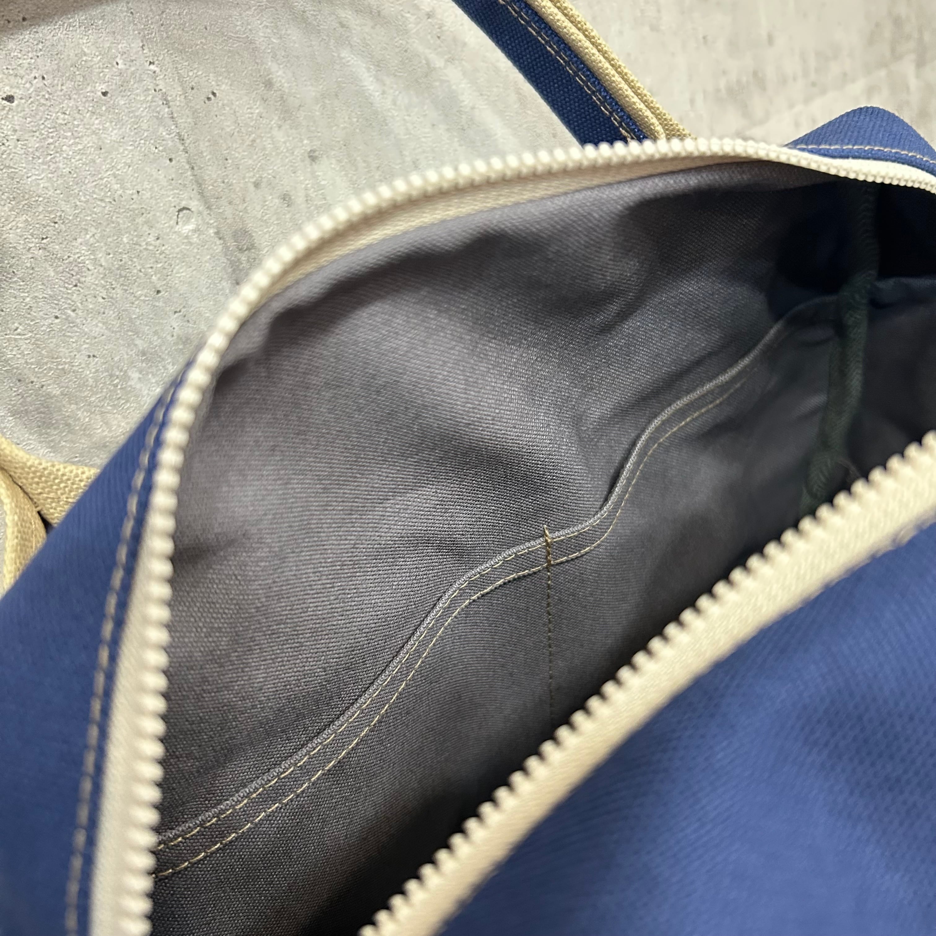 -* Boston Bag *- ブロック切替デザイン【紺×ラベンダー×ストーングレー】