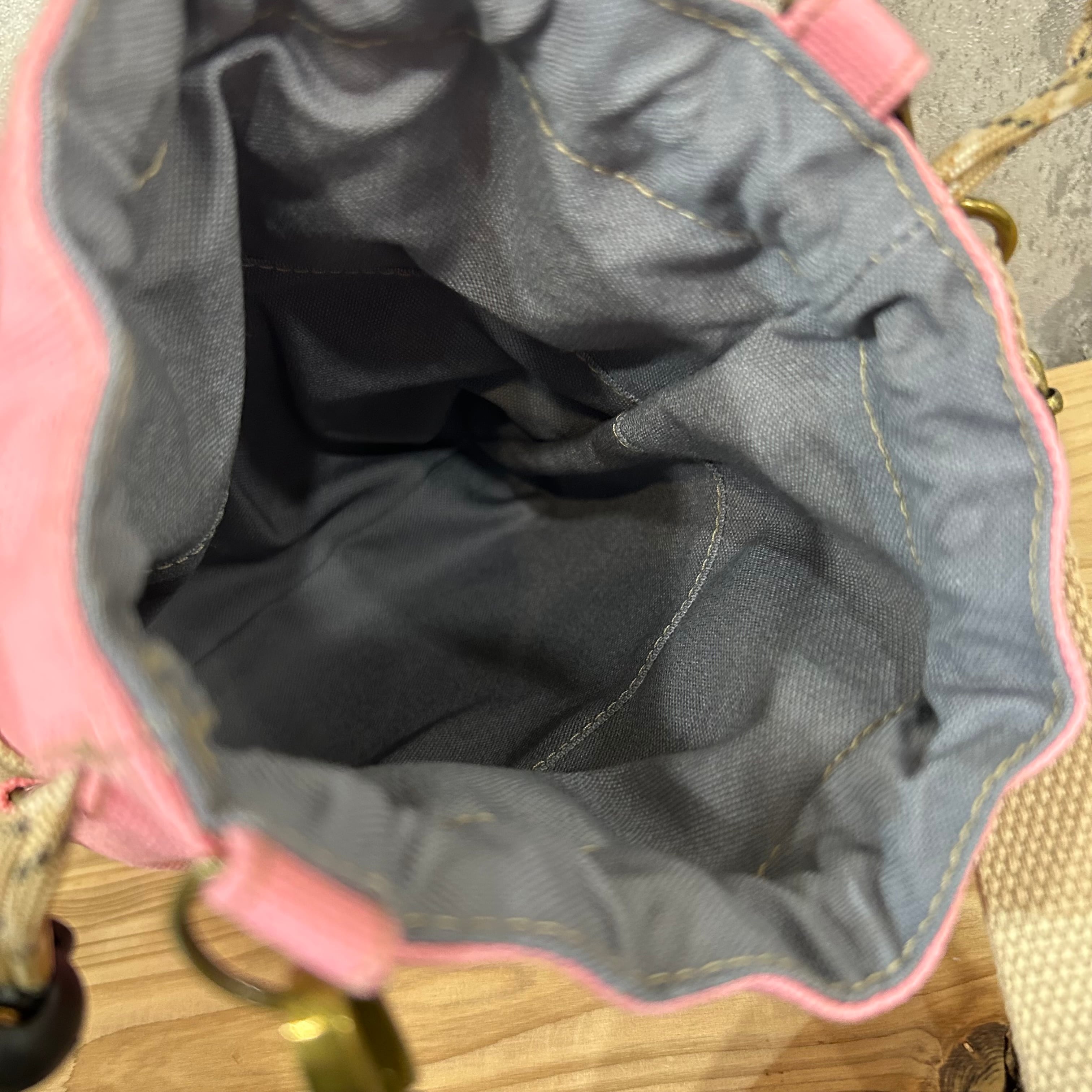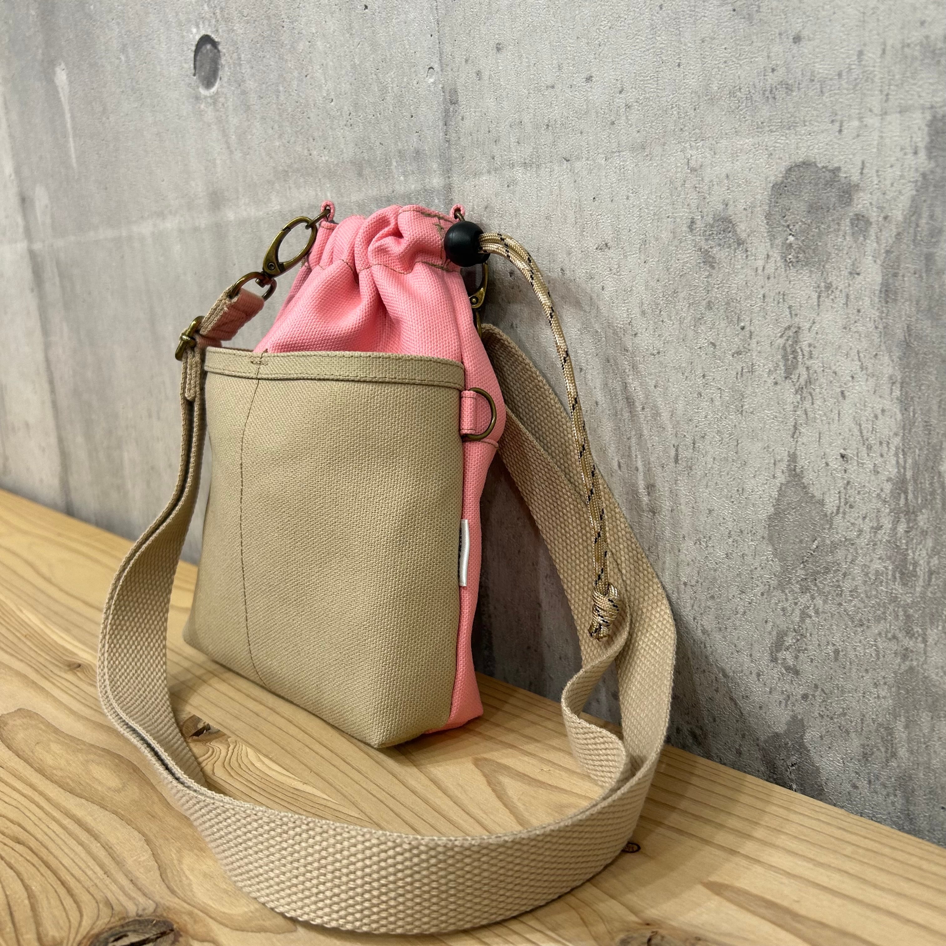 -* 2WAY巾着ショルダー *- 横Dカン付き【ピンク×ストーングレー】