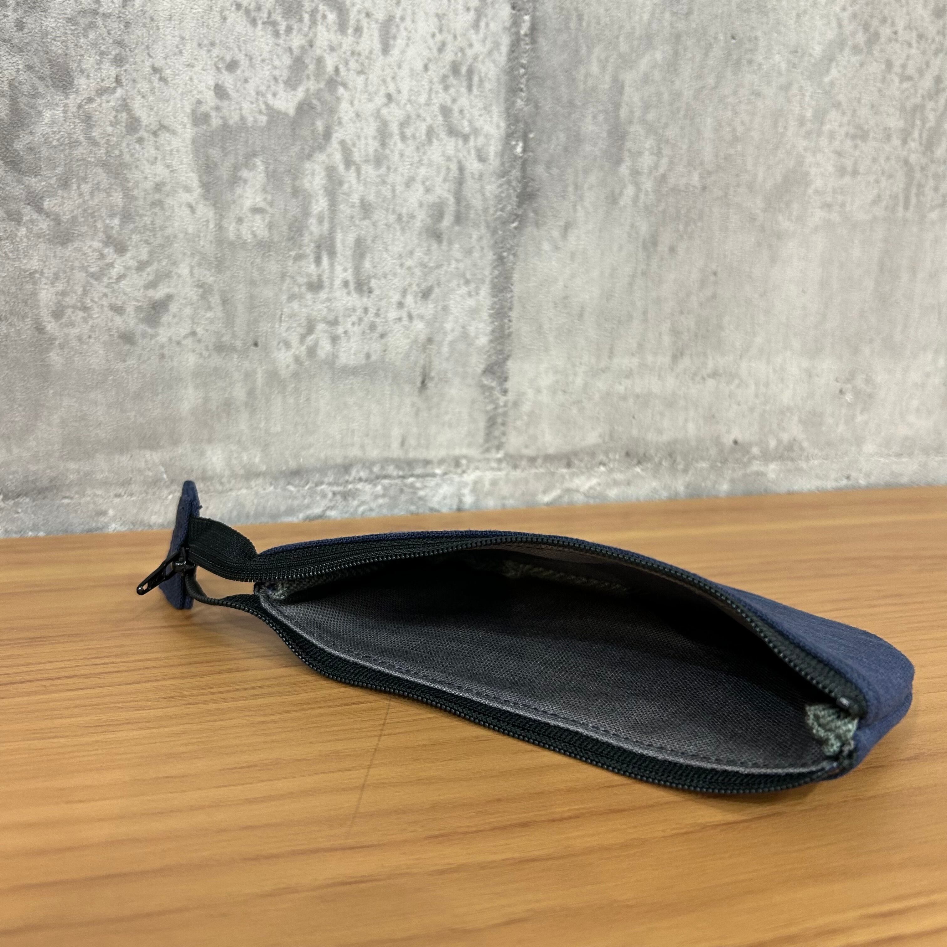 -* フラットポーチ *- 上質ヴァイオウォッシュ素材<チャコール>