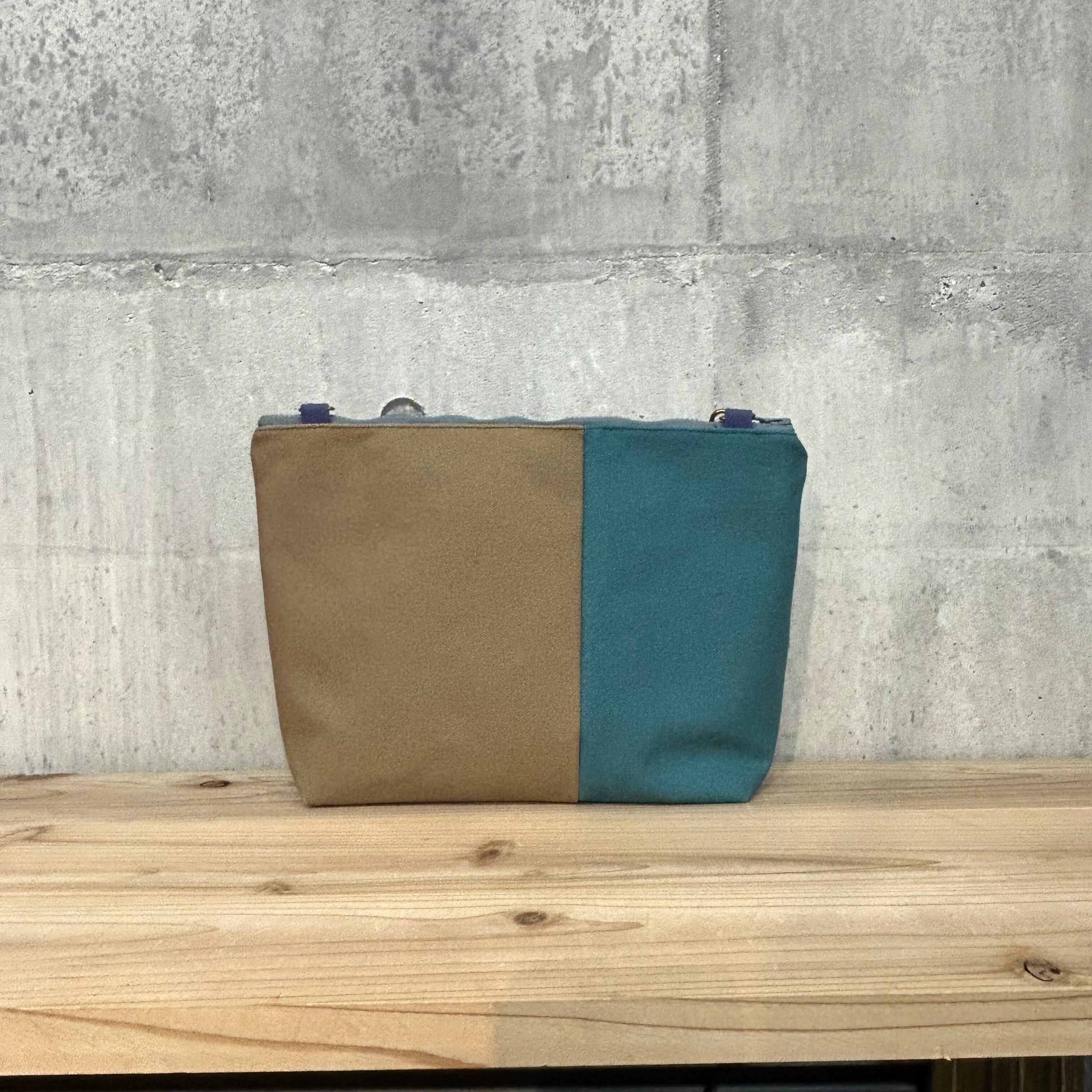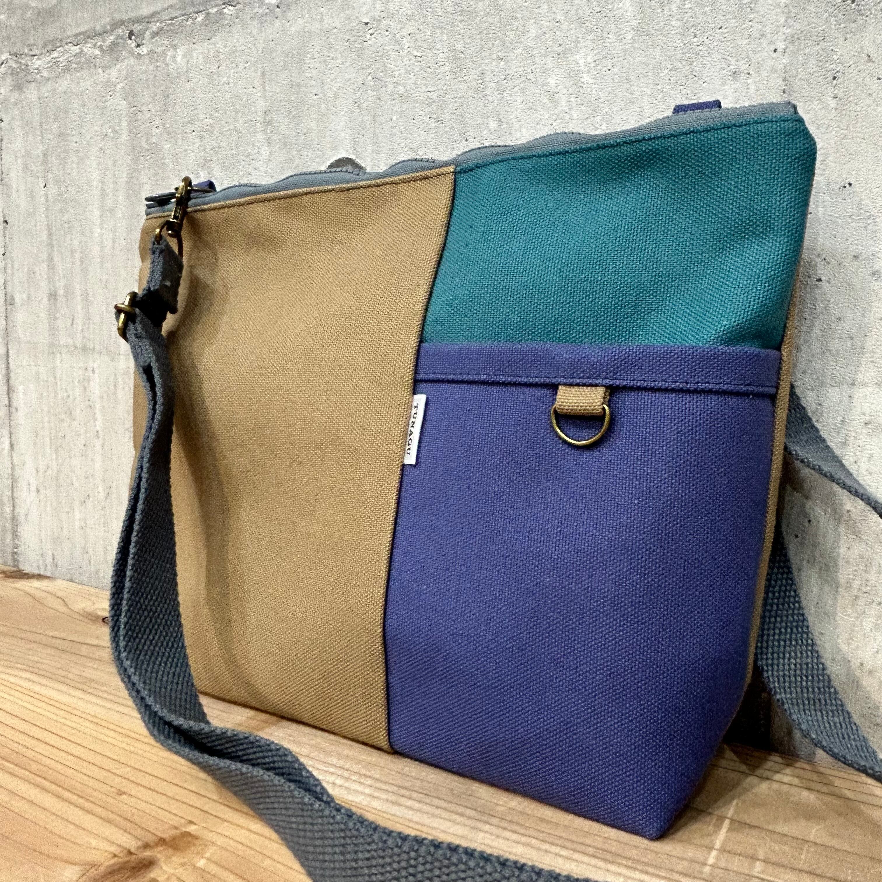 ▼Block切替ショルダーバッグ【グレージュ×グレイパープル×シアンブルー】