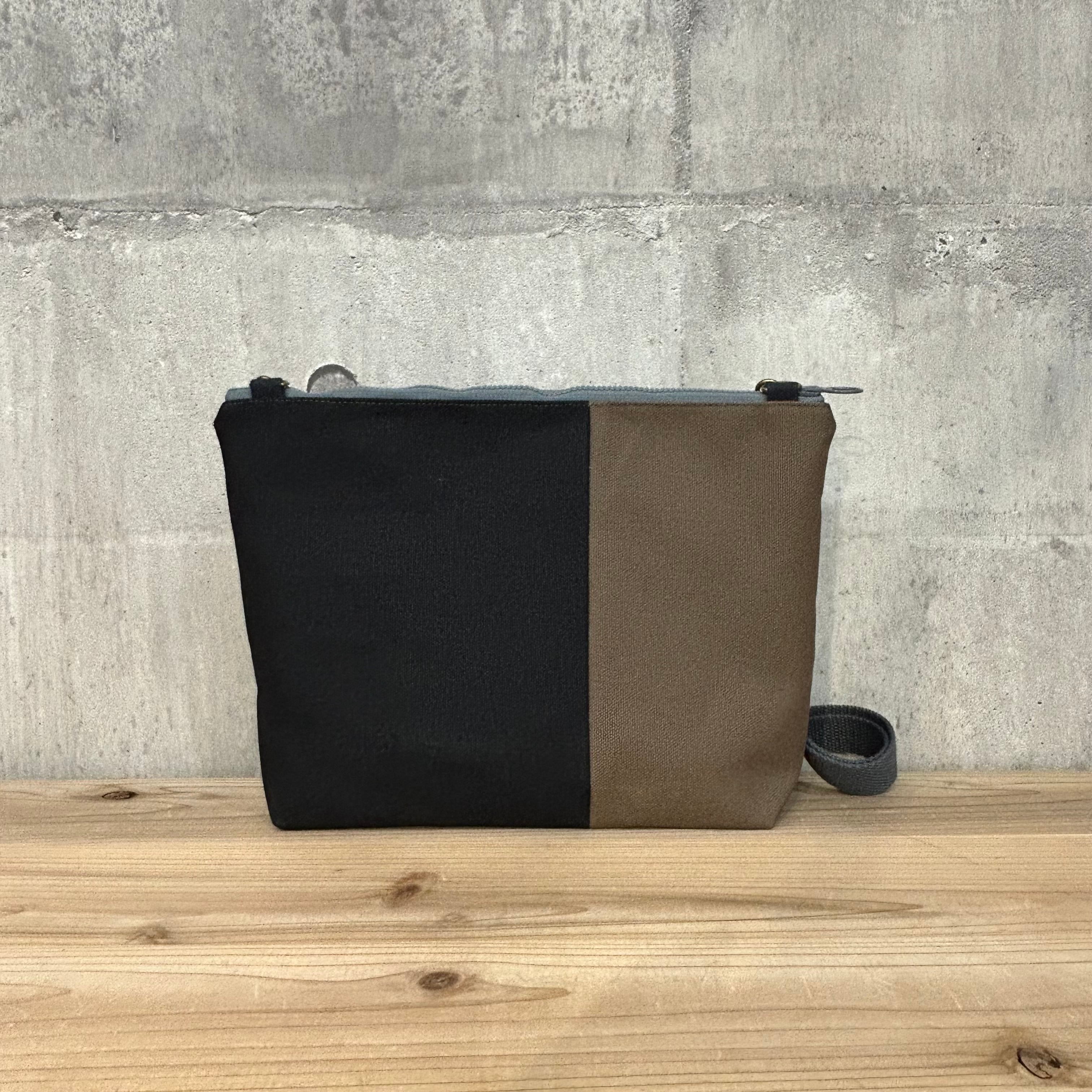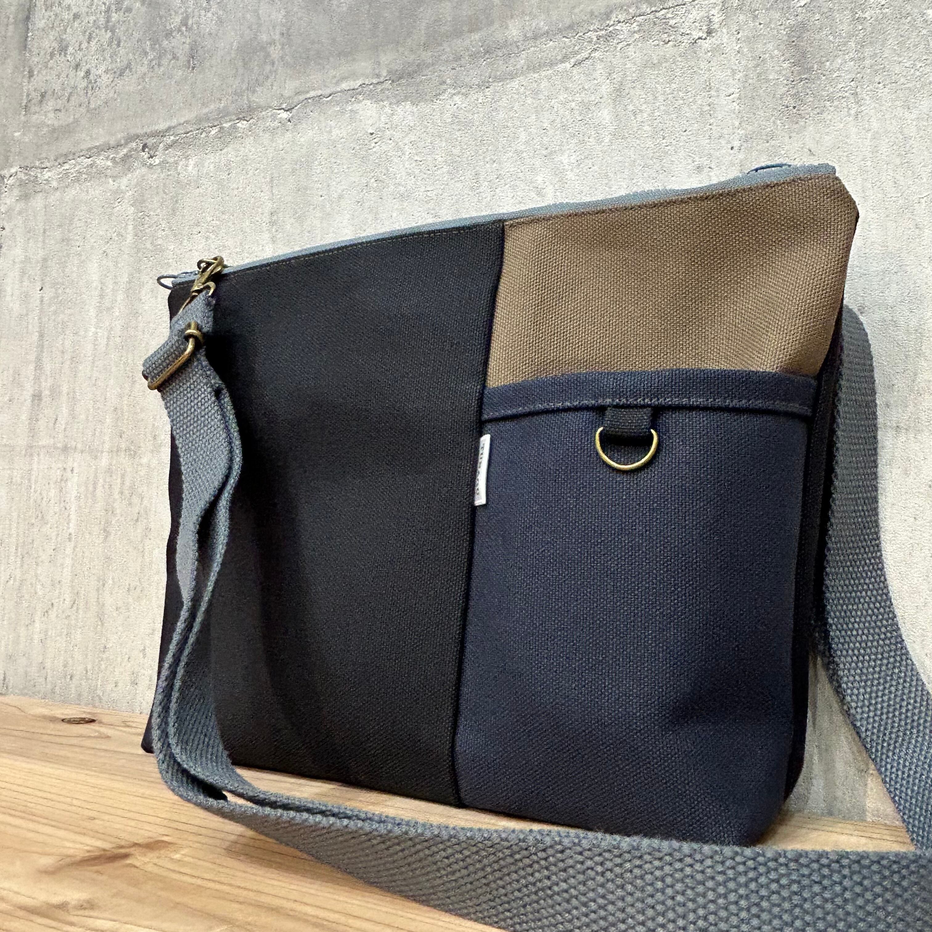 ▼Block切替ショルダーバッグ【ブラック×ダークブルー×ダークブラウン】