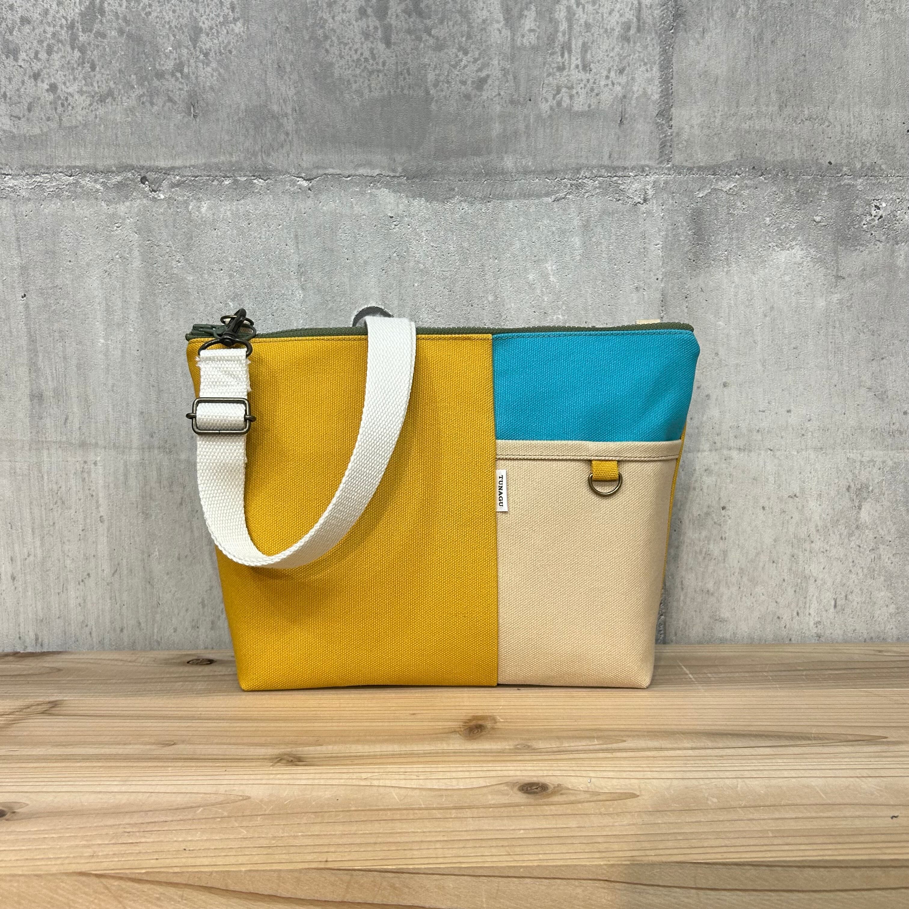 ▼Block切替ショルダーバッグ【マスタード×ターコイズ×マシコット】