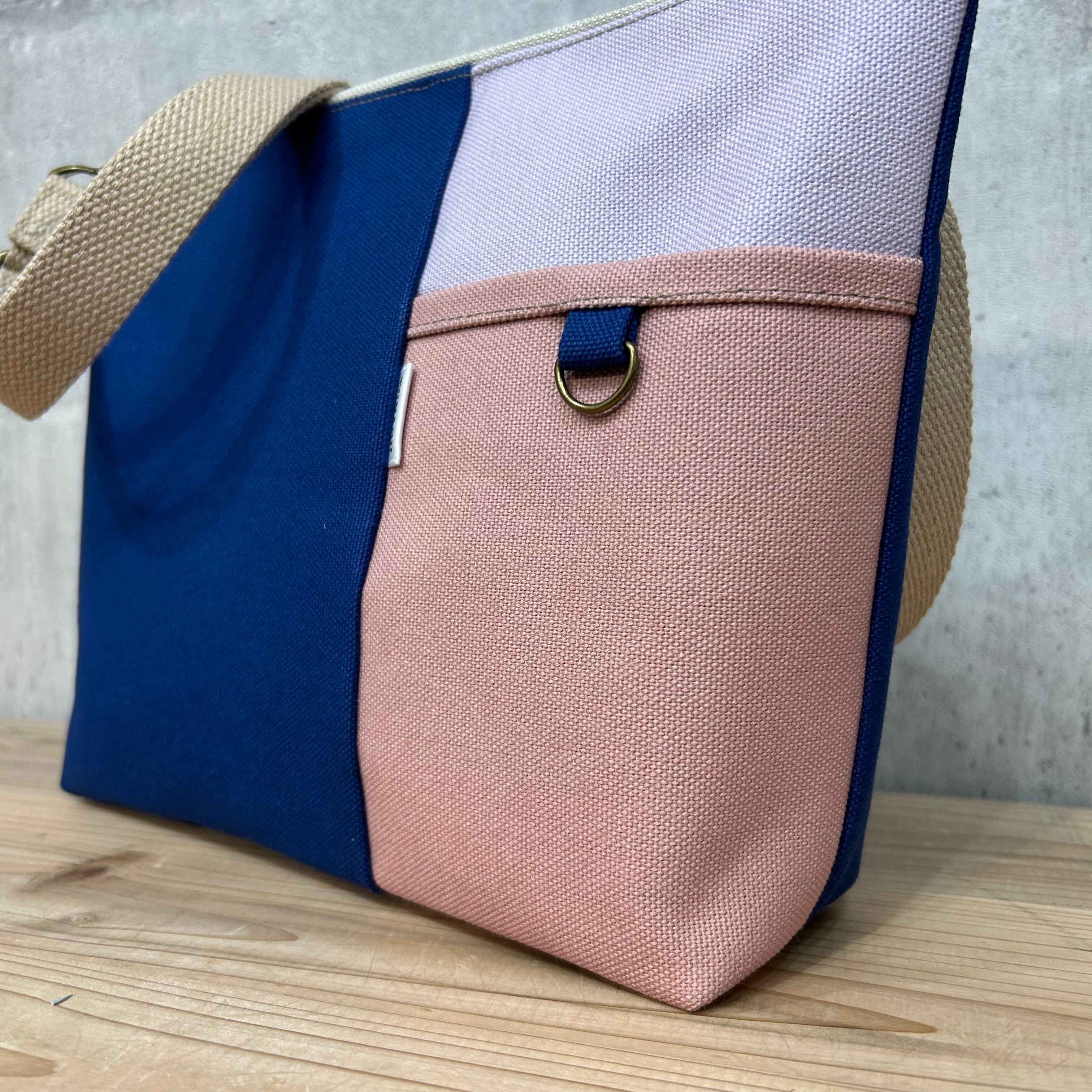 ▼Block切替ショルダーバッグ【花紺×ウィステリア×スモーキーコーラル】