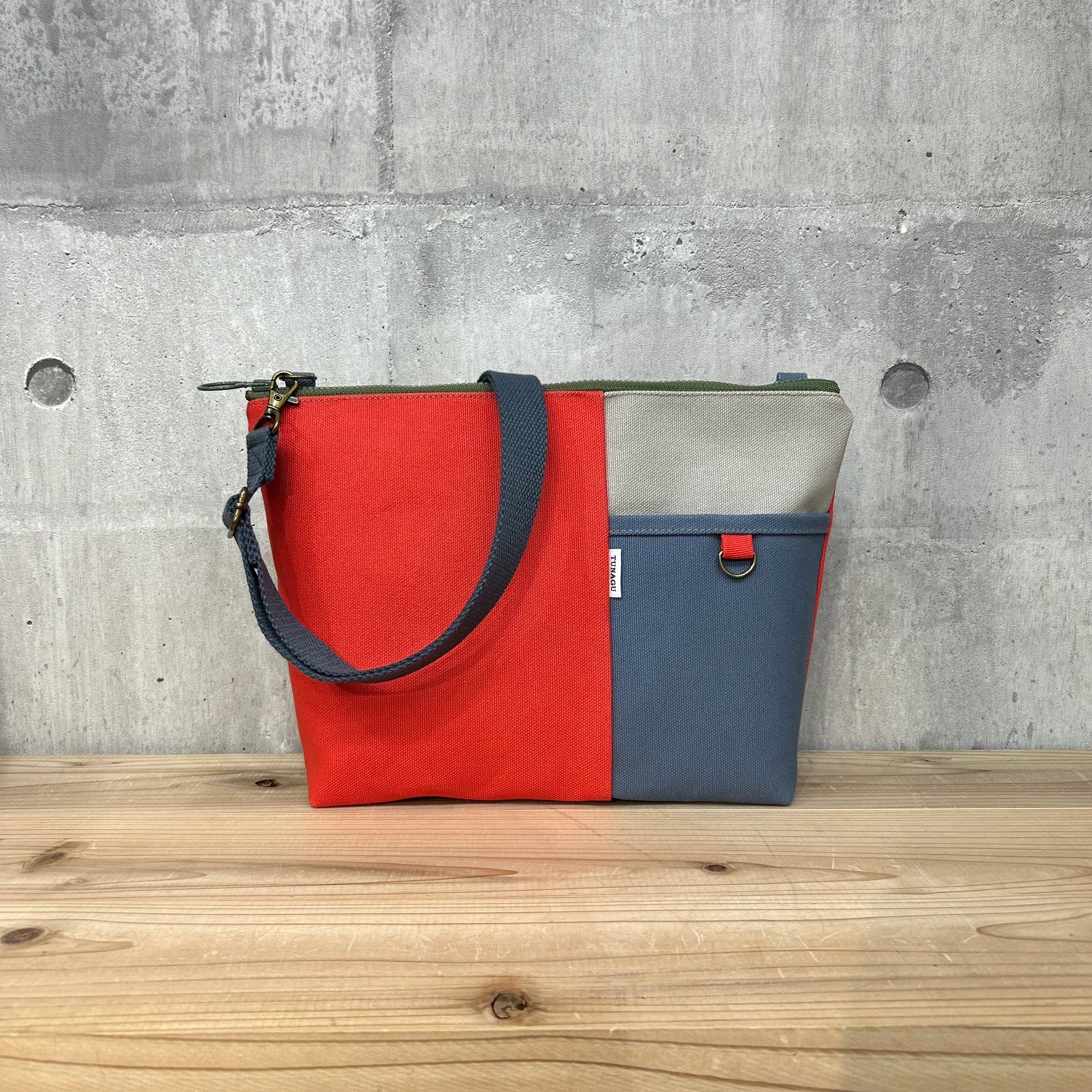 ▼Block切替ショルダーバッグ【スカーレット×アイスグレー×アッシュグレー】