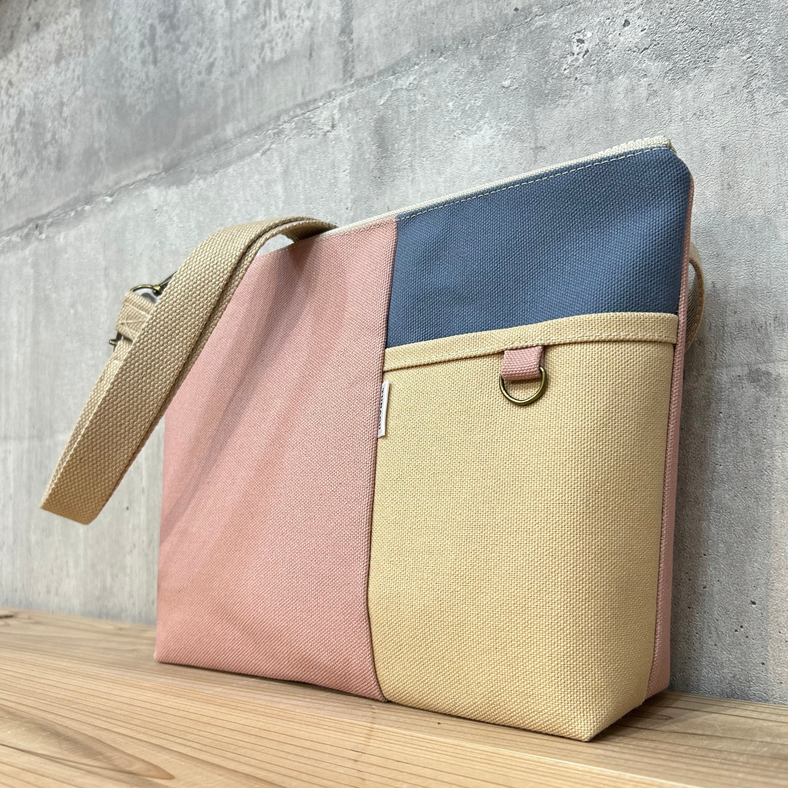 ▼Block切替ショルダーバッグ【スモーキーコーラル×アッシュグレー×マシコット】