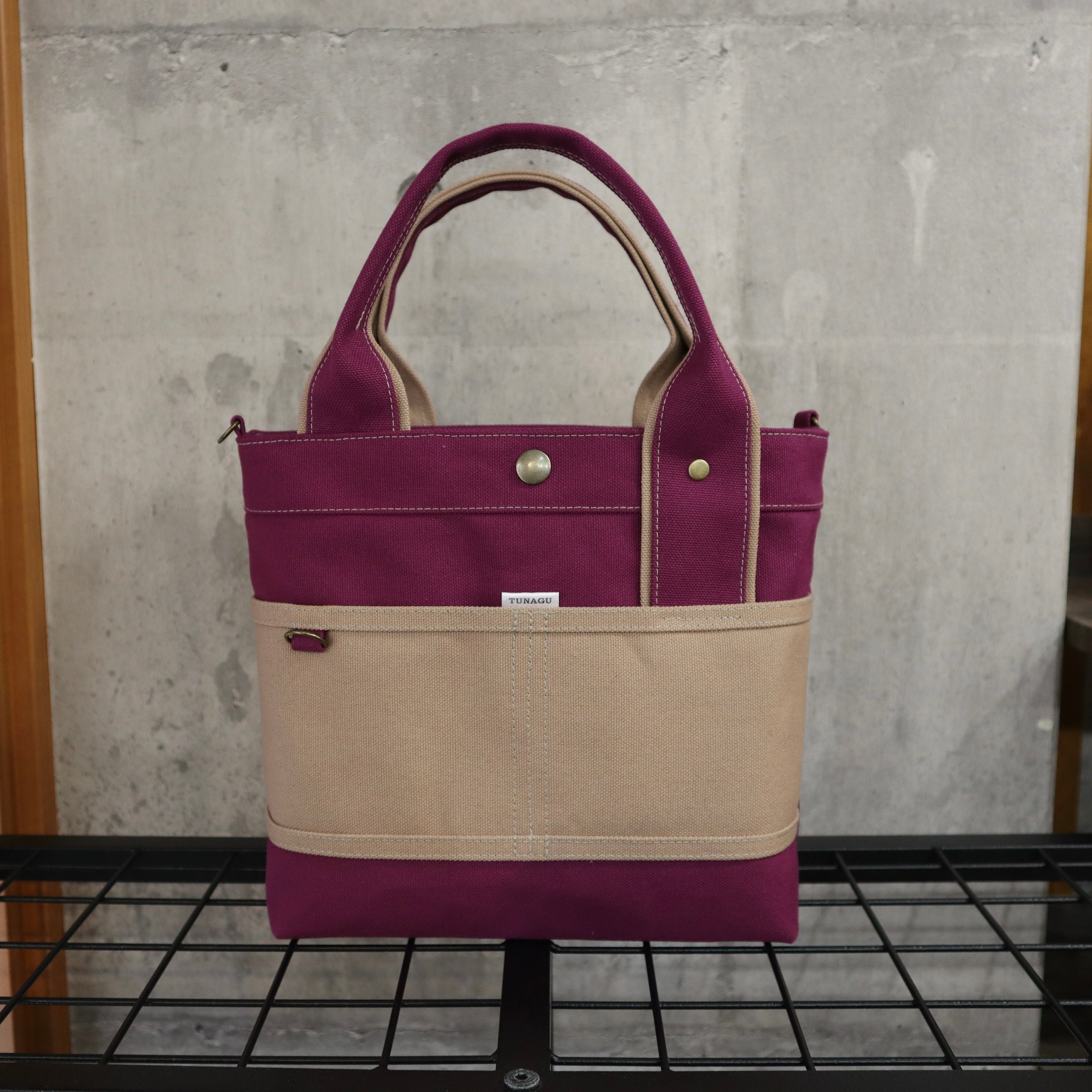 ▼Bi Color Tote "M" 【ディープパープル × ライトシナモン】